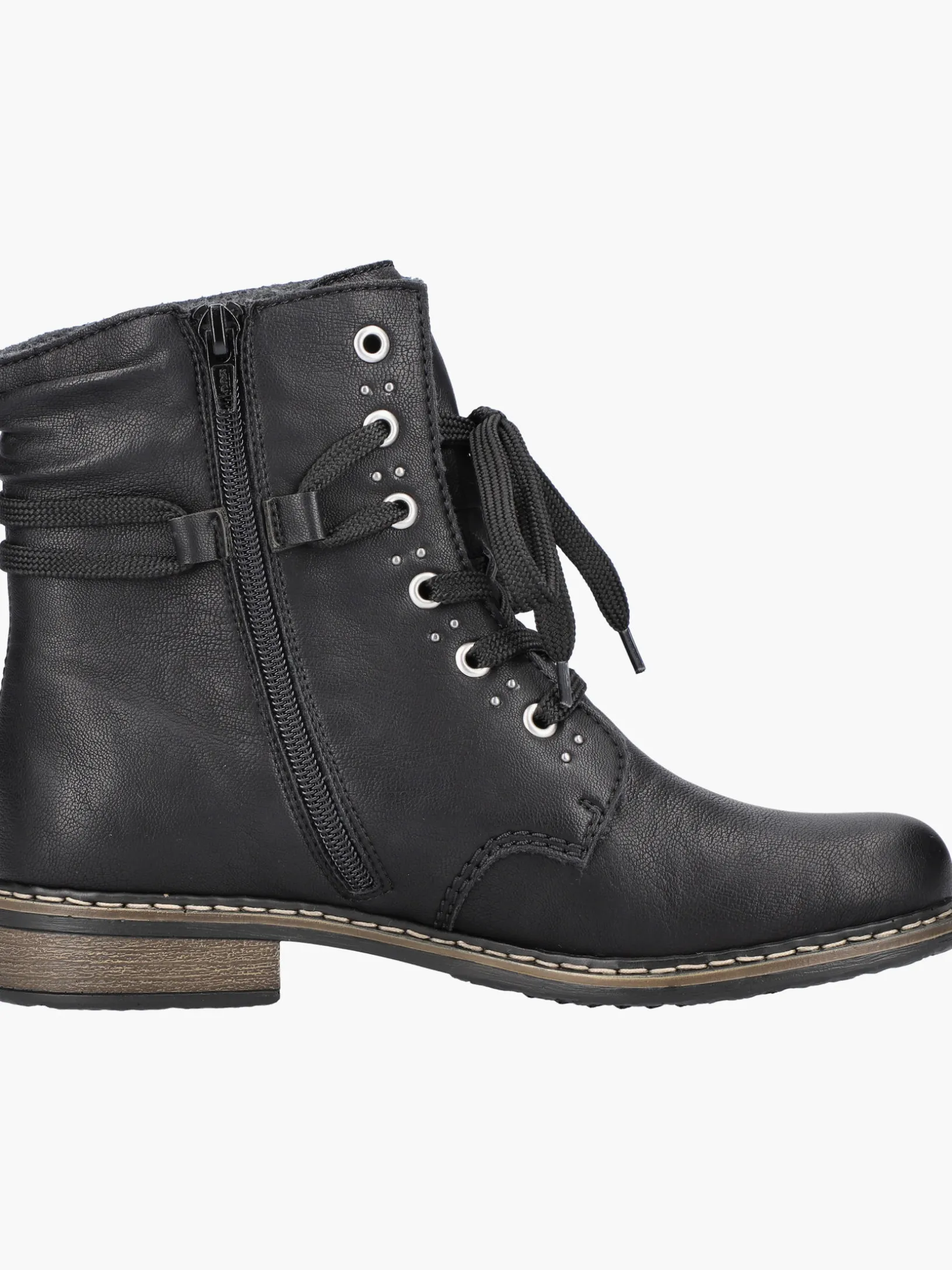 Comfort meets Style. Diese asphaltschwarzen Schnürstiefel bringen alles unter einen Hut: Komfort, Funktion und natürlich Design. Die Schnürung wird durch einen Reißverschluss ergänzt und garantiert somit guten Halt und eine perfekte Passform. Die schockabsorbierende und leichte Sohle sorgt für ein angenehmes Laufgefühl auch bei langem Tragen und die Decksohle ist extra weich. Mehr geht nicht!