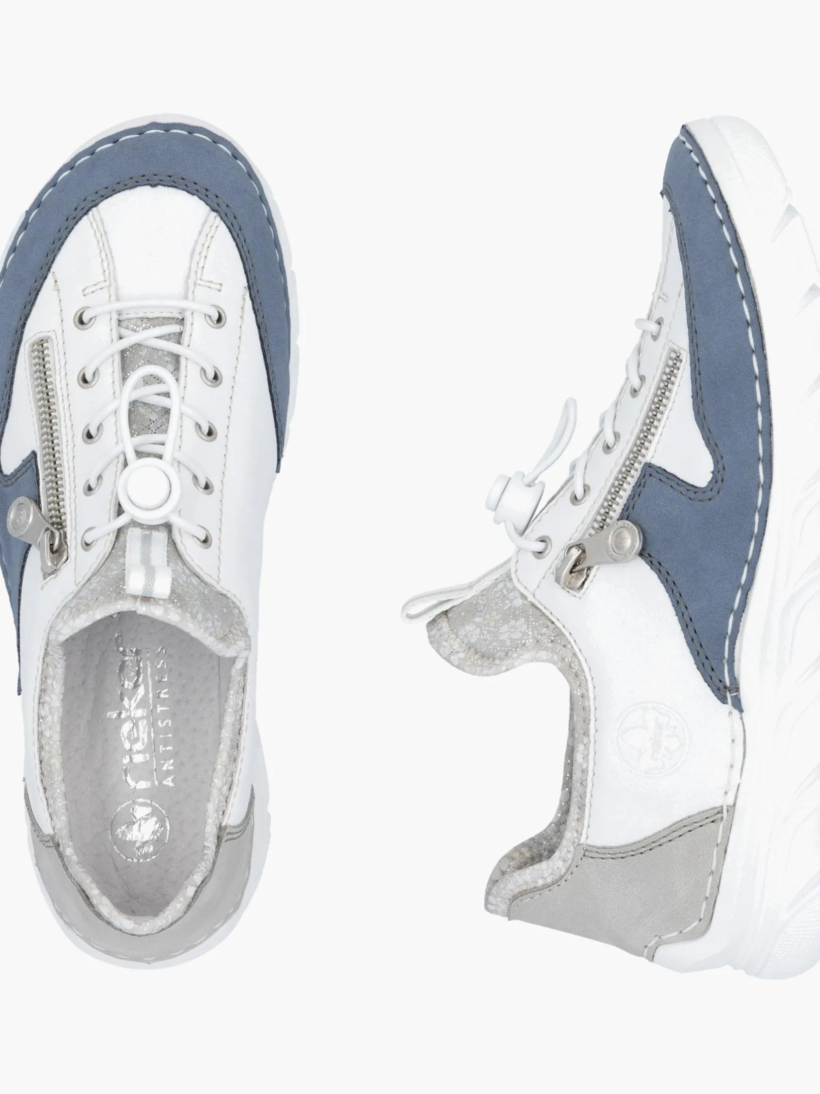 Wir lieben Weiß! Diese reinweißen Rieker Slipper für Damen aus Glattleder wurden aufwendig verarbeitet. Die seitliche Gummischnürung stellt darüber hinaus sicher, dass der Schuh jederzeit sitzt. Die Ziernähte runden das moderne Design perfekt ab. Mit der schockabsorbierenden und sehr leichten Sohle werden deine Füße bei jedem Schritt verwöhnt und die extra weiche Decksohle sorgt für mehr Tragekomfort. Gesucht, gefunden!