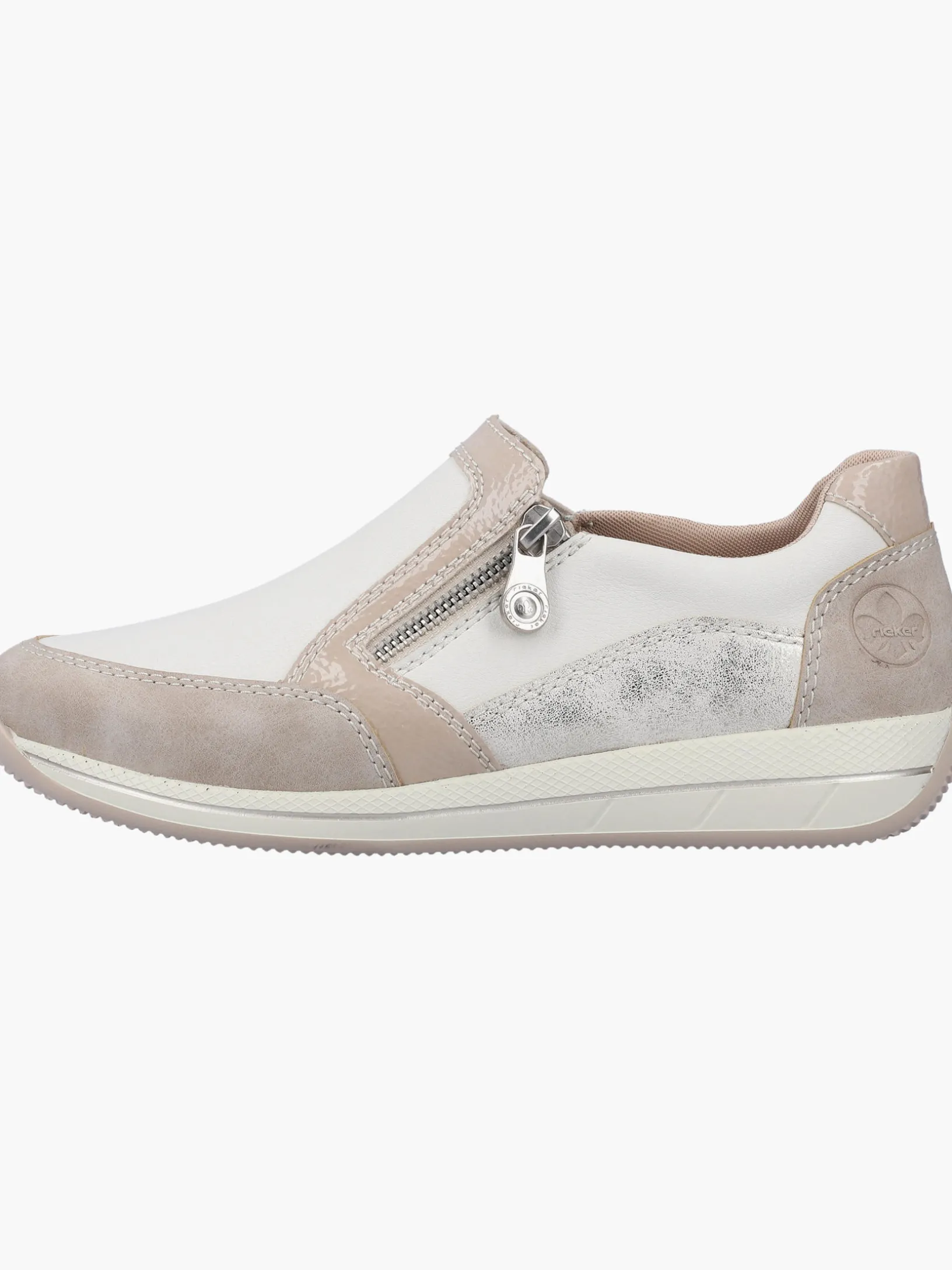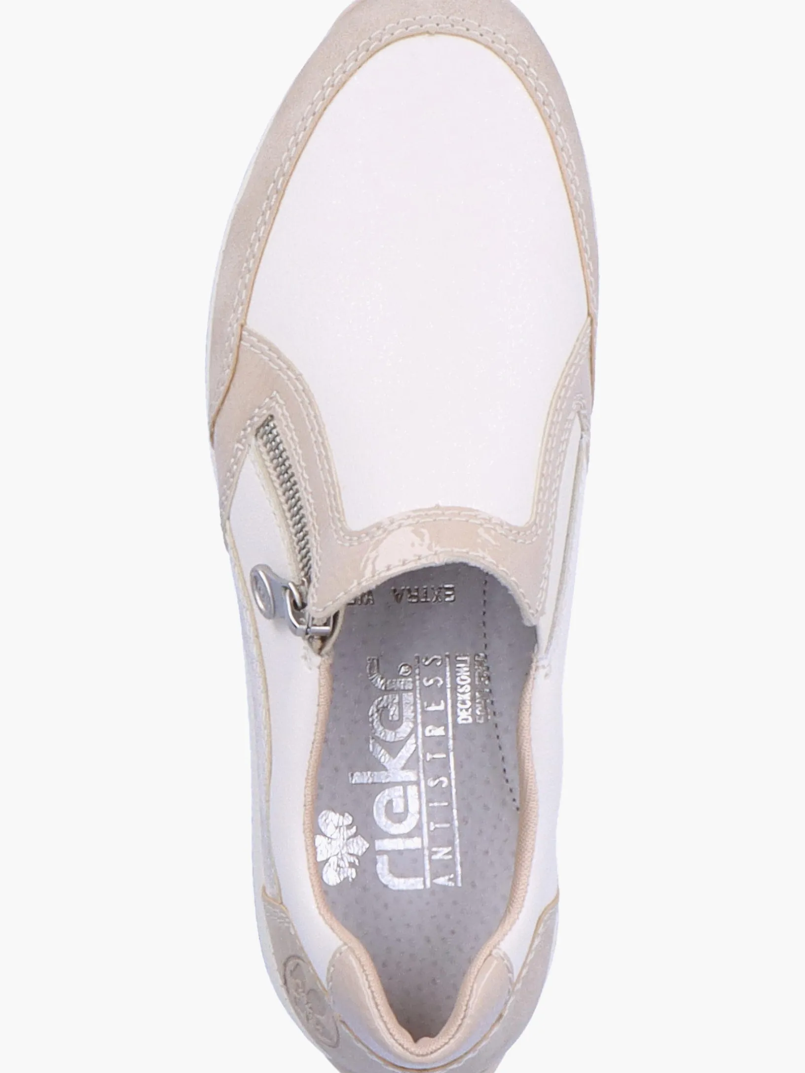 Immer einen Schritt voraus! Diese cremeweißen Rieker Slipper für Damen garantieren ein himmlisches Tragegefühl. Der seitliche Reißverschluss ermöglicht ein einfaches An- und Ausziehen. Die Sohle ist sowohl schockabsorbierend als auch leicht und bietet damit ein doppeltes Wohlgefühl bei jedem Schritt. Mit der herausnehmbaren Einlegesohle verfügen die Slipper über ein weiteres, praktisches Komfort-Feature. Das Modell sichert dem Fuß zusätzlichen Bewegungsfreiraum, denn es ist in Extraweite H geschnitten. Modisches Wohlgefühl im Stil von Rieker!