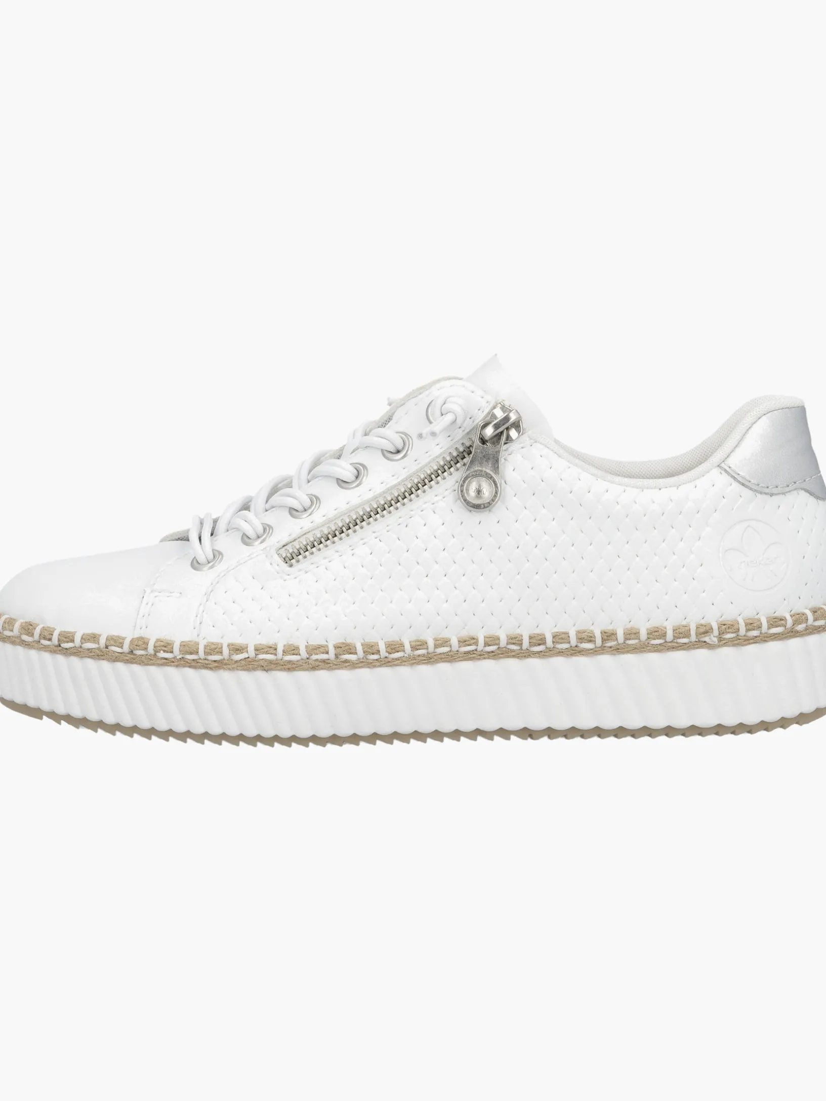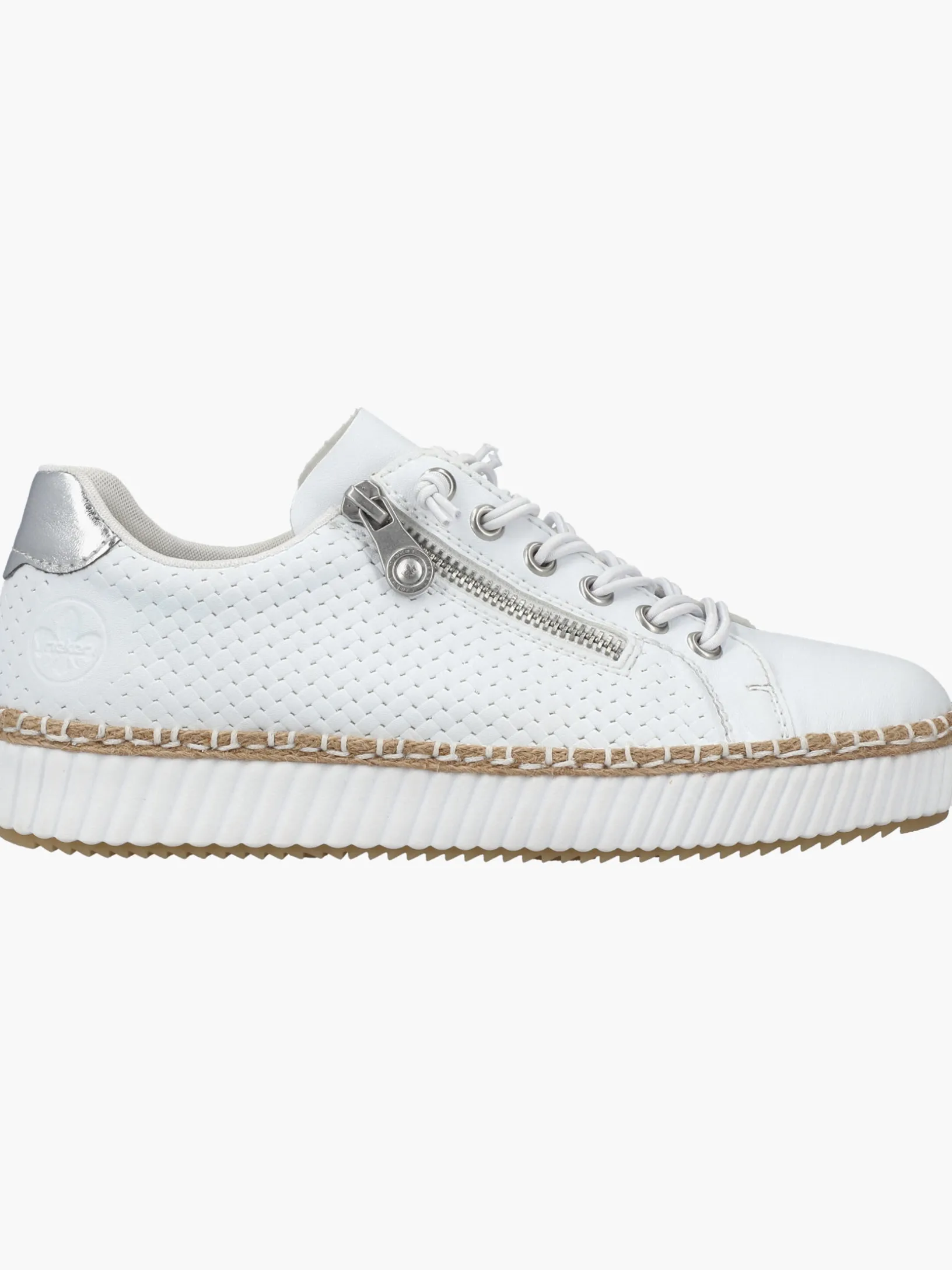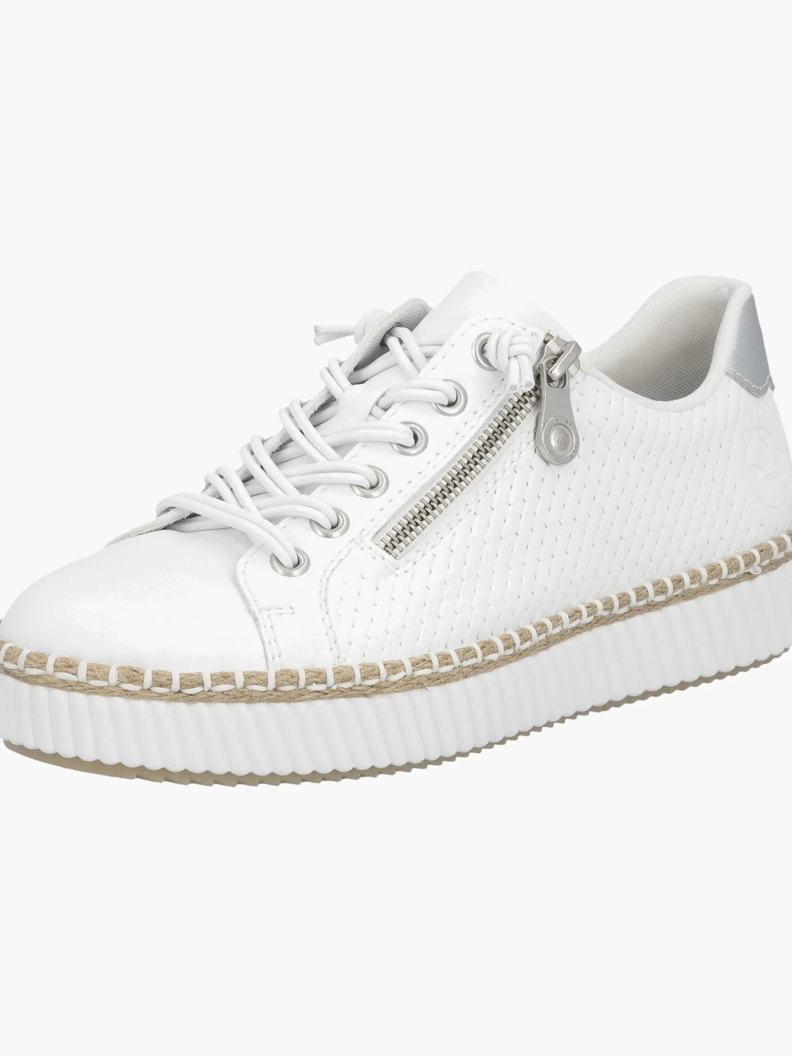 Fashion meets Function. Mit diesem alltagstauglichen schneeweißen Rieker Slipper für Damen bist du immer gut angezogen und kannst dich auf maximalen Komfort verlassen. Trotz Schnürung kann der Schuh ganz einfach mit einem Reißverschluss geschlossen werden. Die griffige Sohle gibt guten Halt auf Schritt und Tritt. Die gepolsterte und herausnehmbare Einlegesohle bietet Komfort und Funktionalität für jeden Tag. Da steht langen Spaziergängen nichts mehr im Weg!