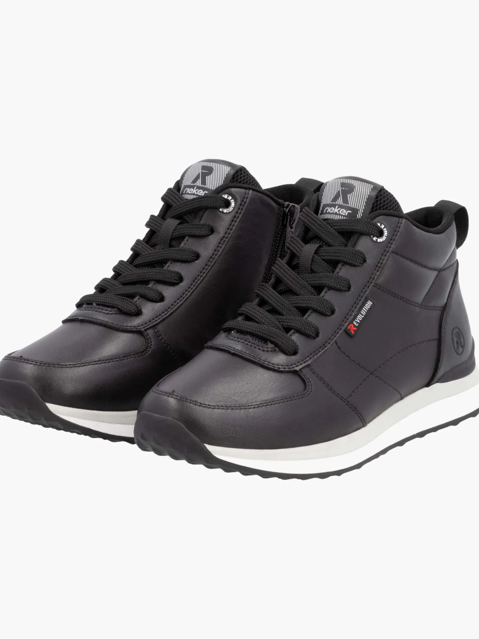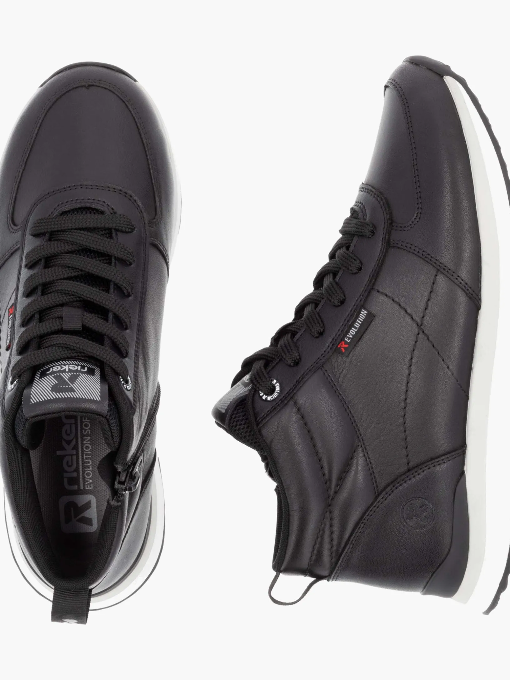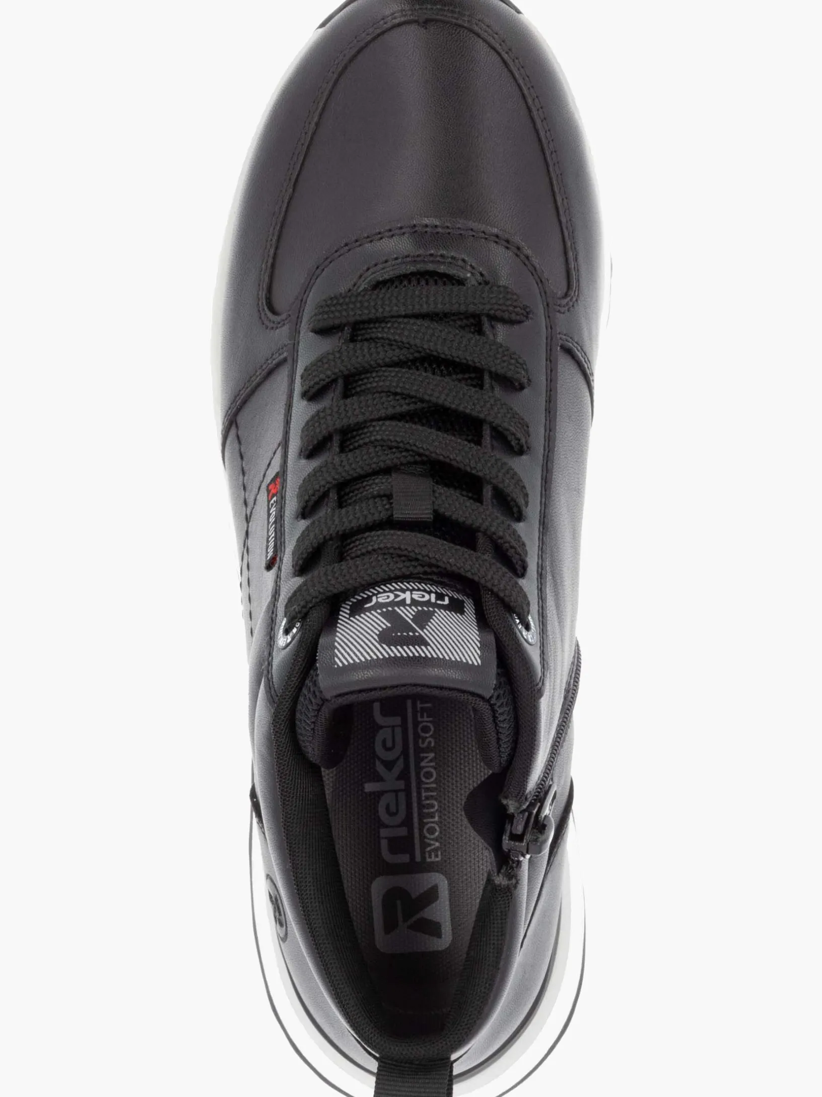 Achtung Trendalarm! Mit diesen Rieker EVOLUTION Sneakern aus Glattleder in Schwarz musst du dich nicht zwischen Style, Komfort und Funktion entscheiden. Die geniale Kombination aus Schnürung und Reißverschluss ermöglicht ein einfaches An- und Ausziehen. Die super leichte und flexible Sohle verwöhnt die Füße darüber hinaus bei jedem Schritt. Die gepolsterte und herausnehmbare Einlegesohle ist das praktische Komfort-Feature schlechthin. Das Modell ist auch für Frauen mit großen Füßen die perfekte Wahl, denn es gibt den Schuh bis zur Schuhgröße 43. Dank der atmungsaktiven Innenfütterung aus Microvelour ist idealer Tragekomfort garantiert. We love it!