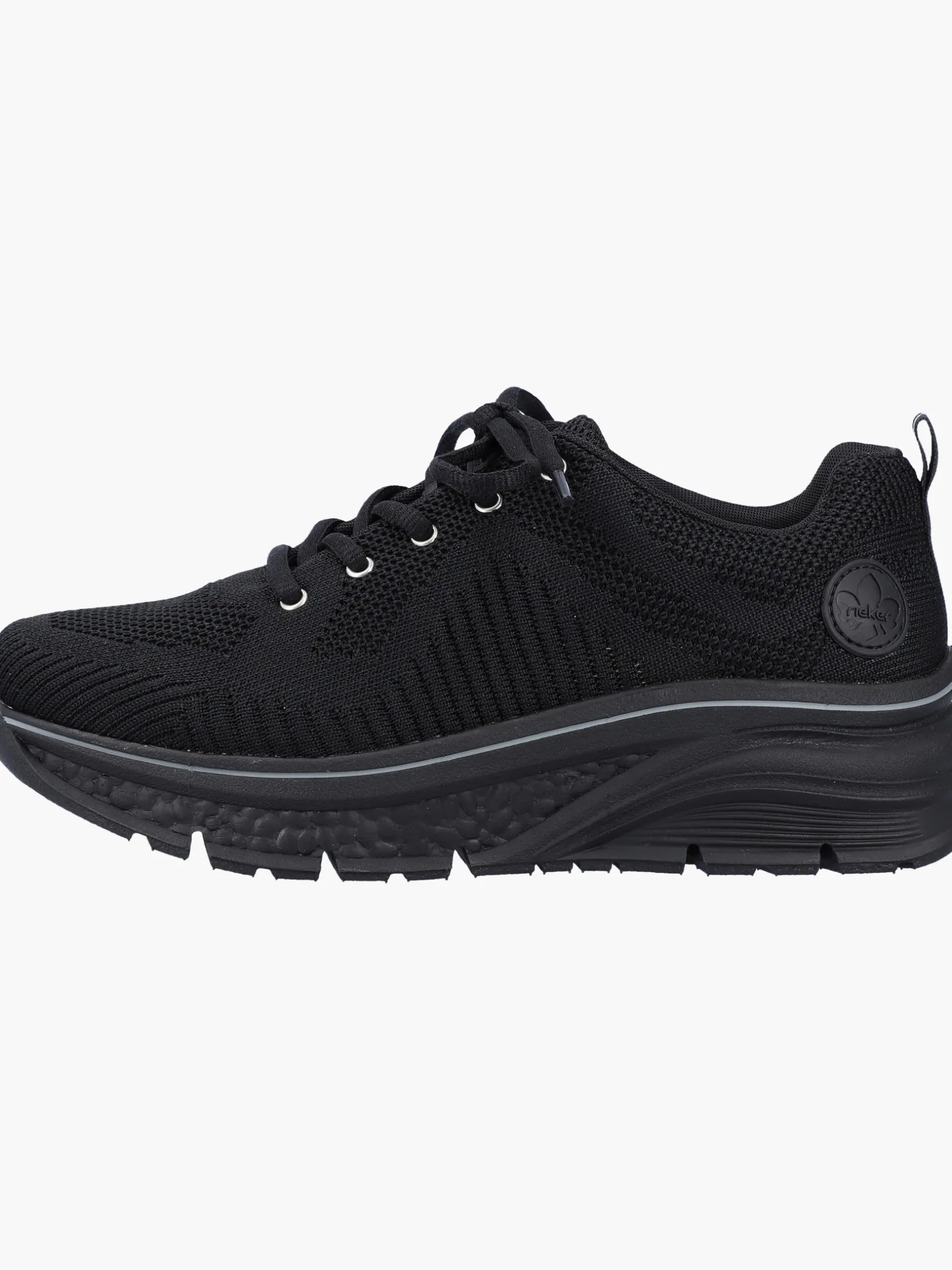 Black is always a good idea. Diese tiefschwarzen Rieker Sneaker für Damen überzeugen mit einem klassischen Design und hohem Komfort. Durch die Schnürung ist der Schuh auch optimal anpassbar. Die Sohle ist sowohl flexibel als auch ultra leicht und bietet damit ein doppeltes Wohlgefühl bei jedem Schritt. Dank der gepolsterten und herausnehmbaren Einlegesohle ist bester Komfort und raffinierte Funktionalität gegeben. Achtung, Lieblingsschuh-Potential!