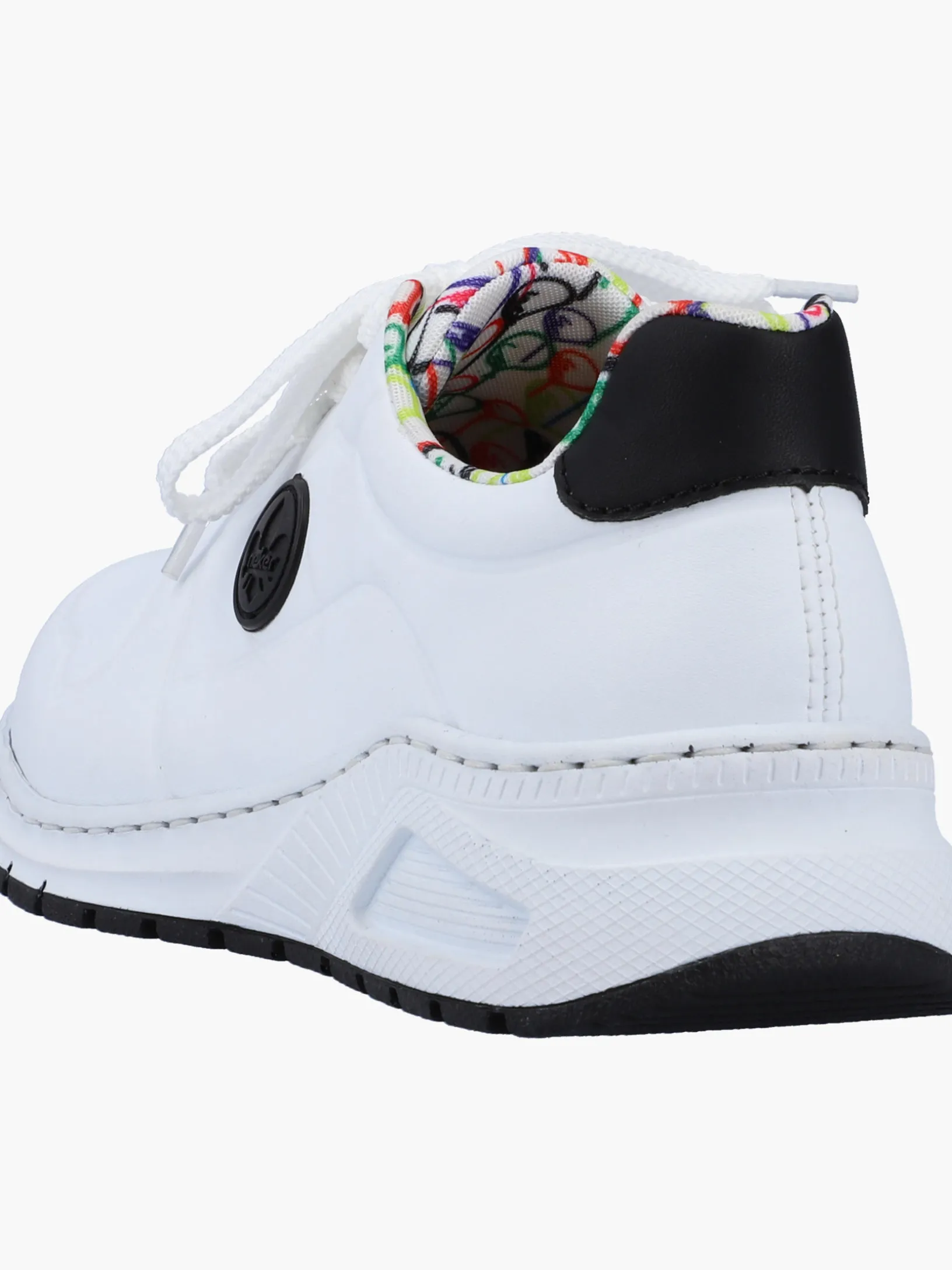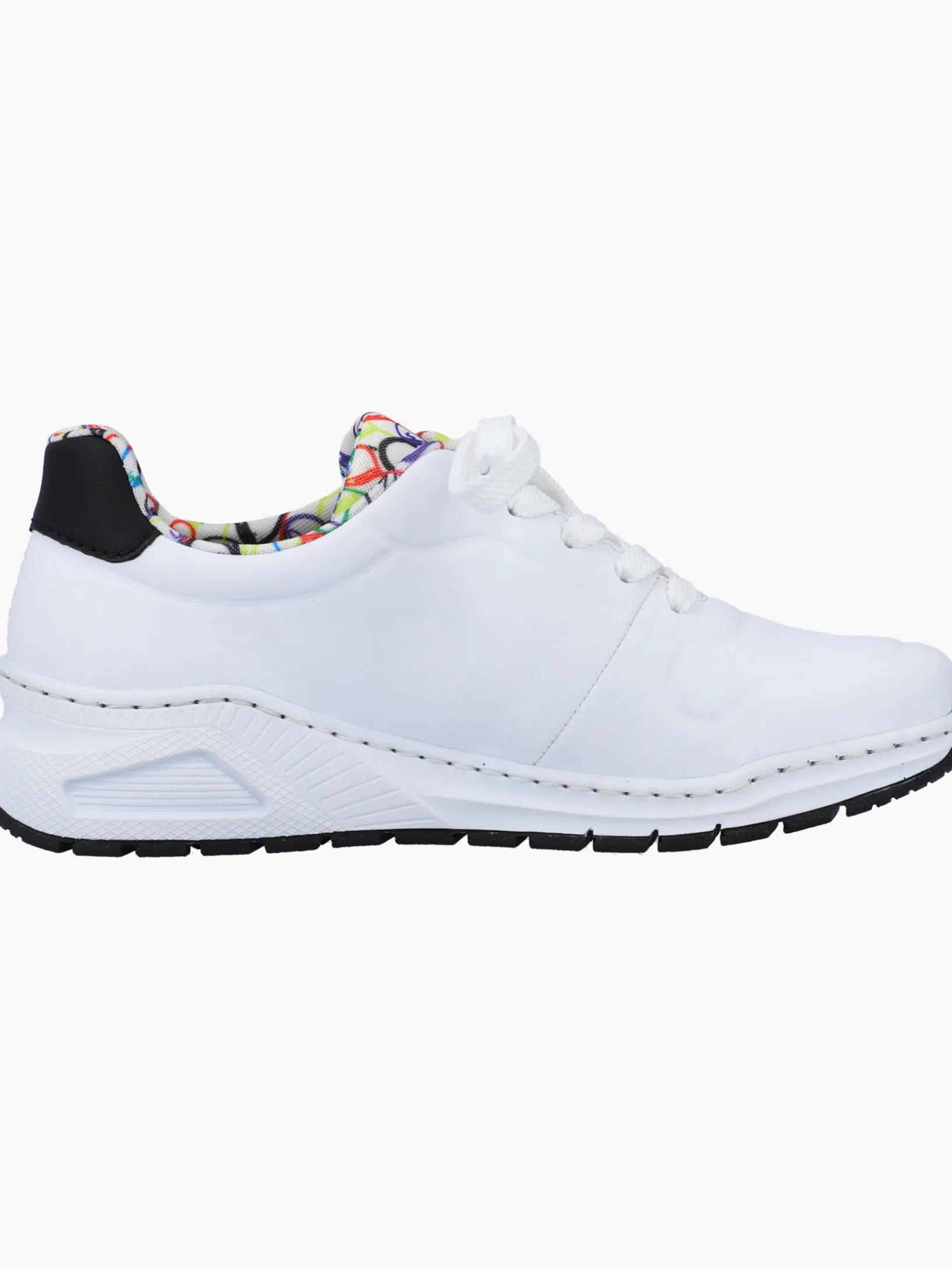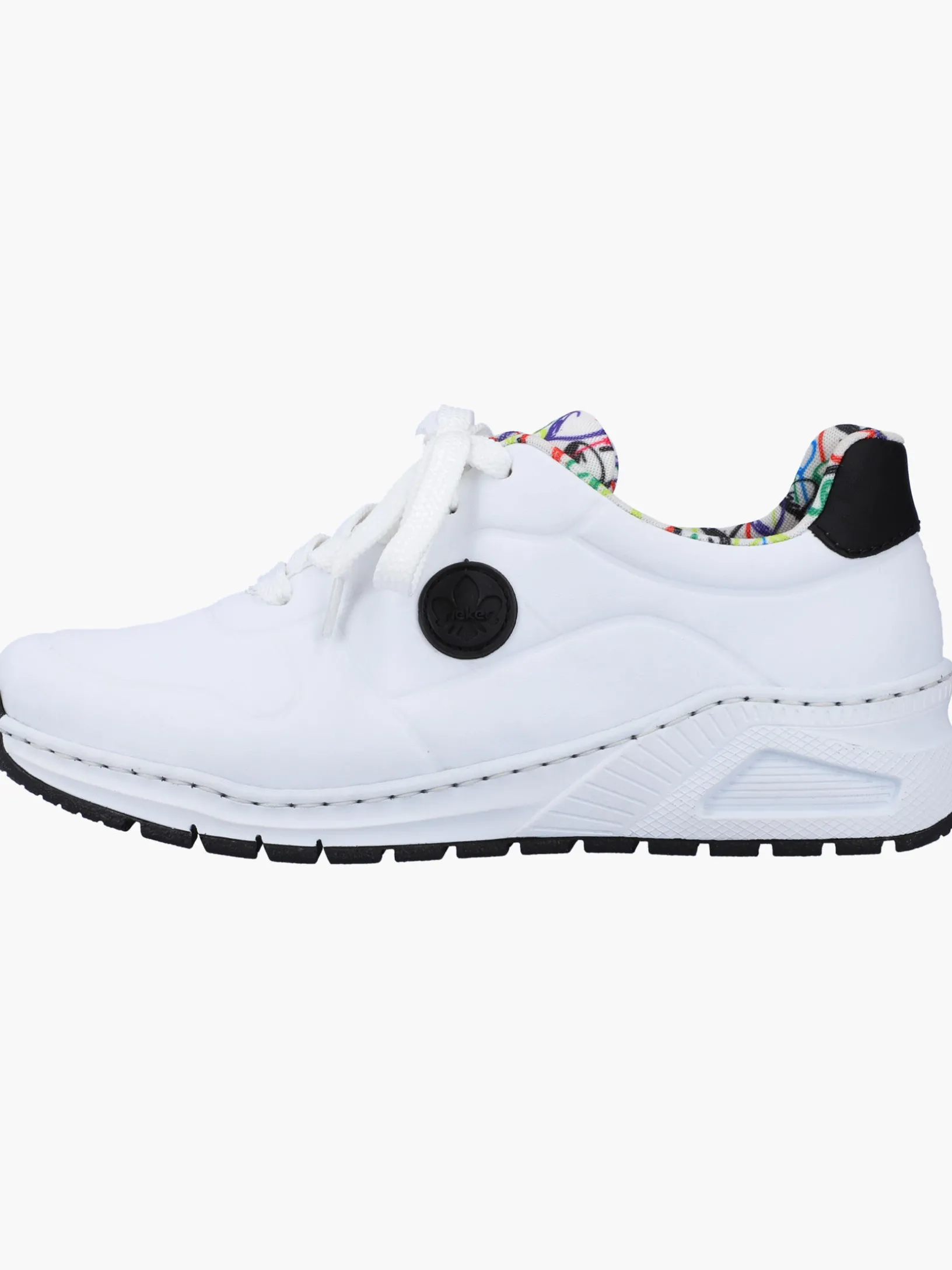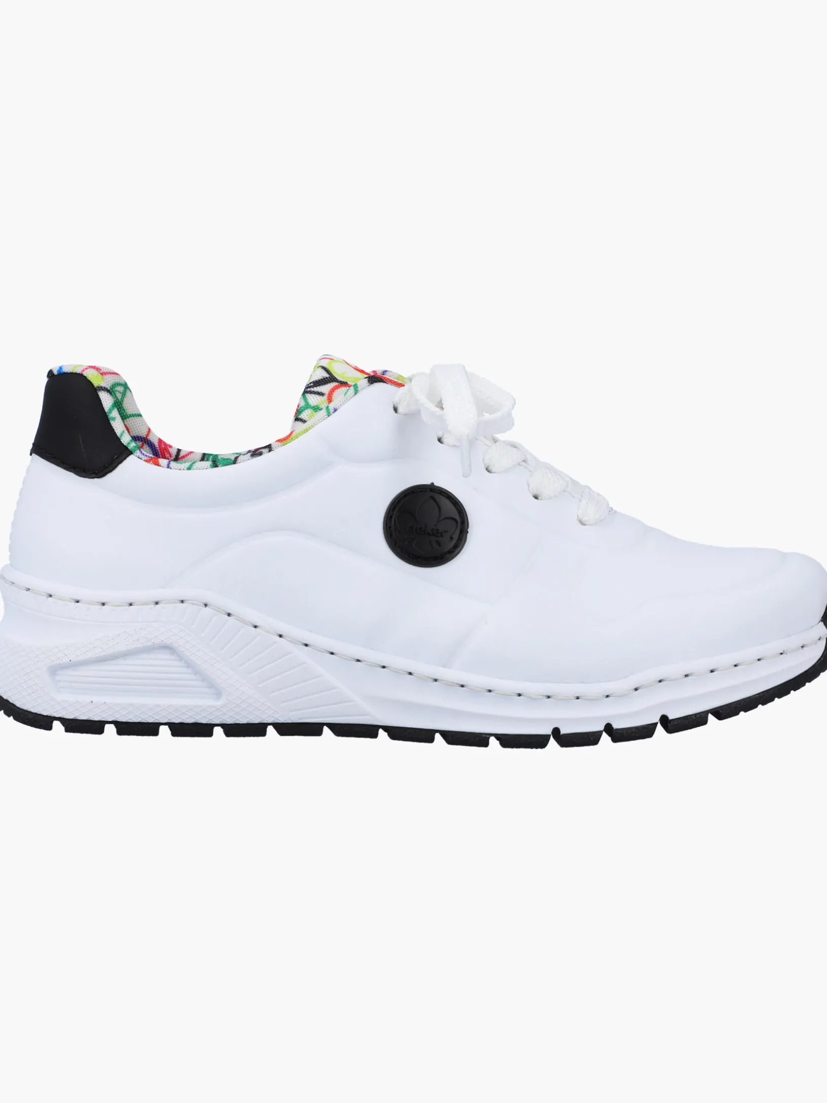 Auf dem Fashion-Radar! Diese lässigen edelweißen Rieker Sneaker für Damen sind schlicht und praktisch. Durch die Schnürung ist der Schuh bestmöglich anpassbar. Das geprägte Logo an der Seite sorgt für das gewisse Etwas. Die schockabsorbierende und leichte Sohle sorgt für ein angenehmes Tragegefühl. Die gepolsterte und herausnehmbare Einlegesohle sorgt für maximalen Komfort. Die Extraweite H bietet genügend Freiraum, damit sich die Füße auch bei längerem Tragen wohlfühlen. Achtung, Lieblingsschuh-Potential!