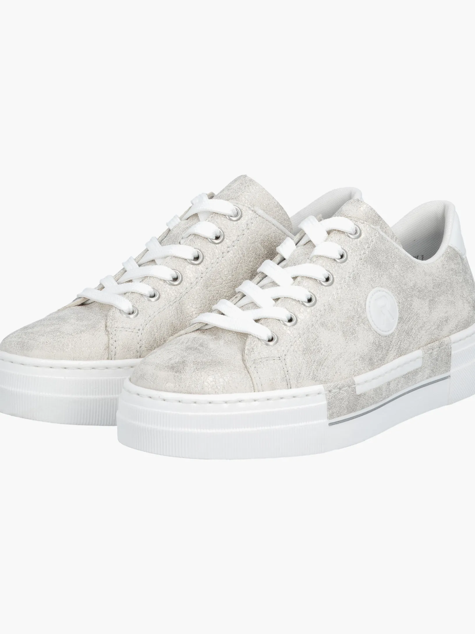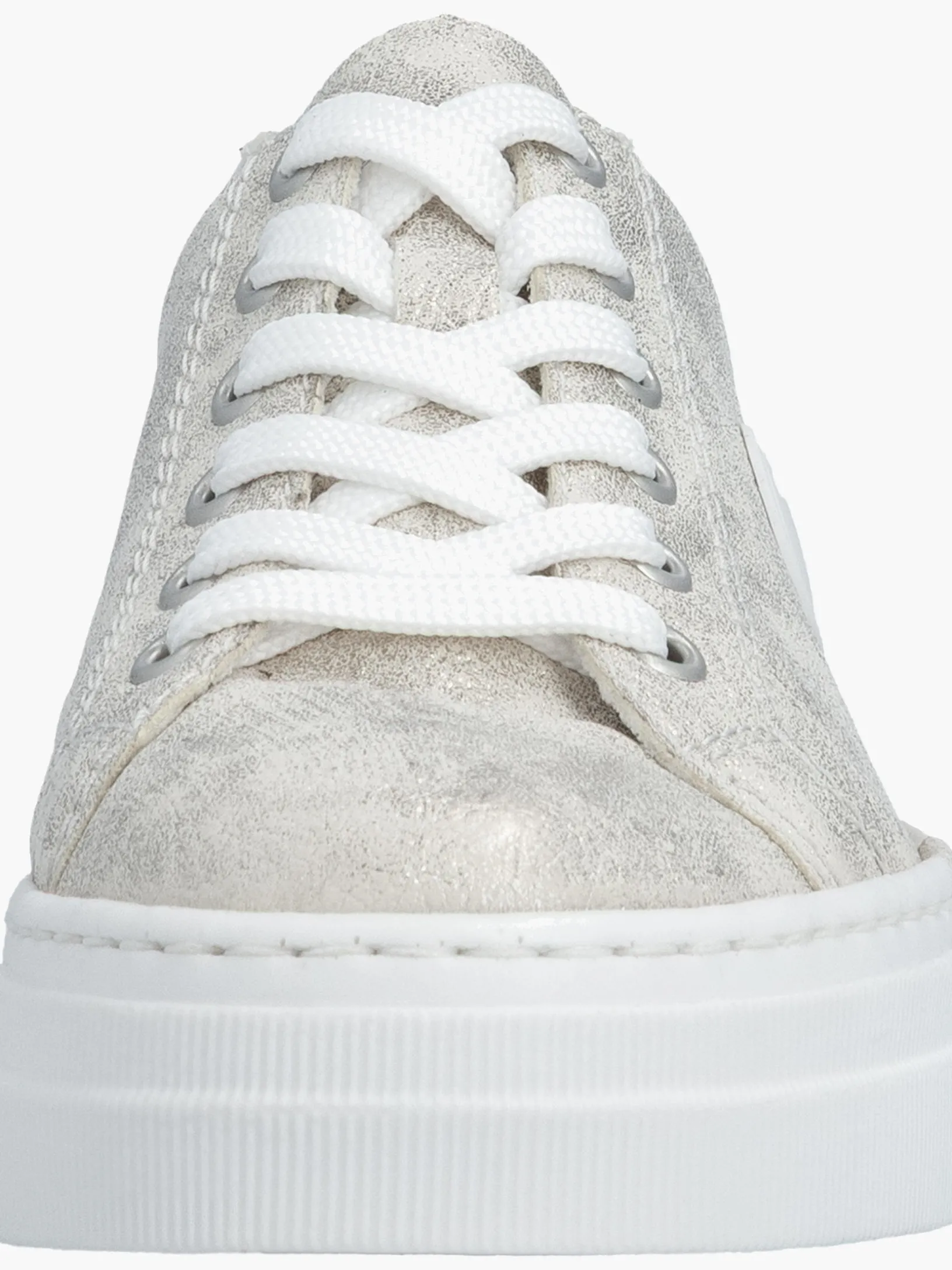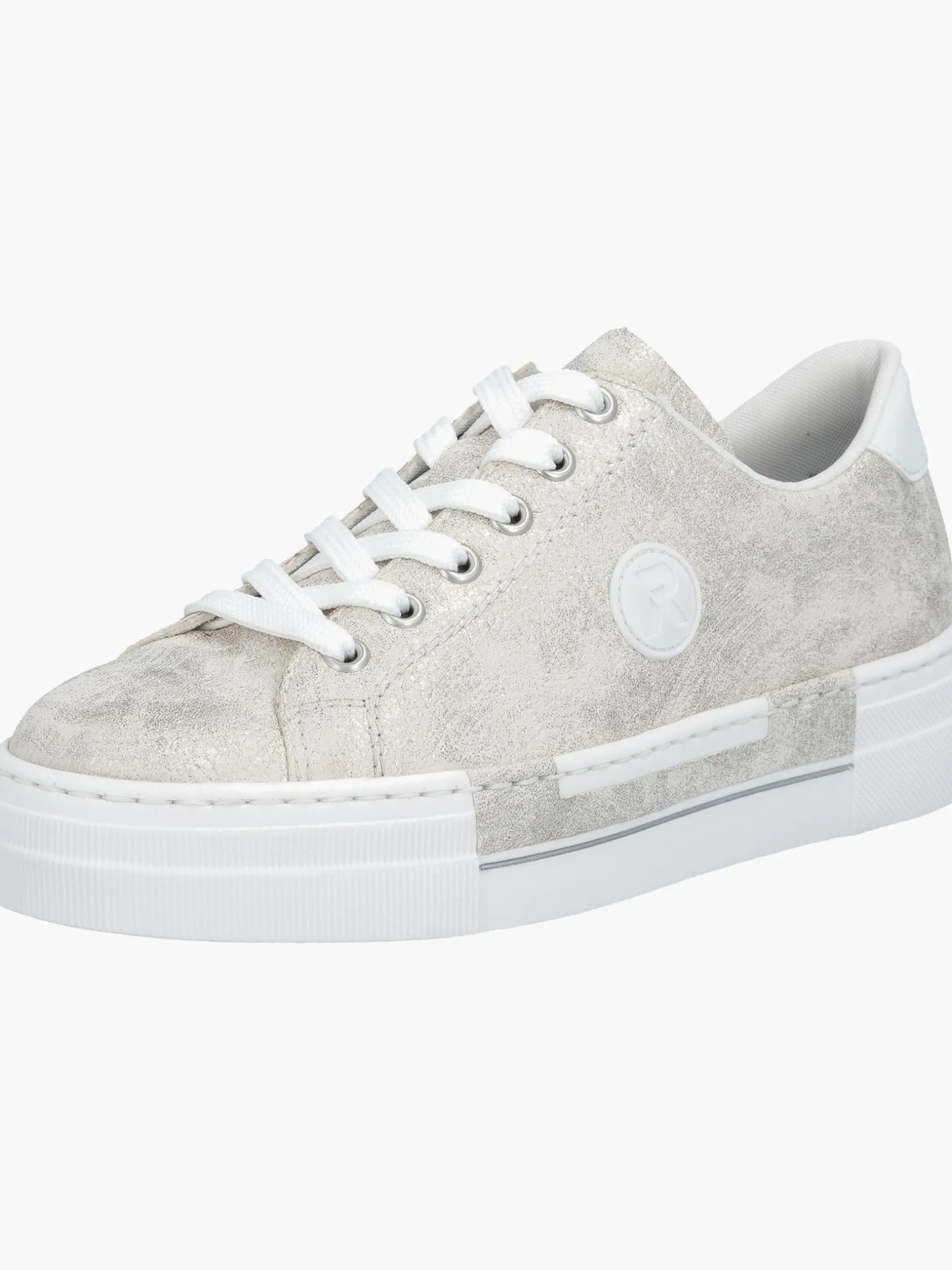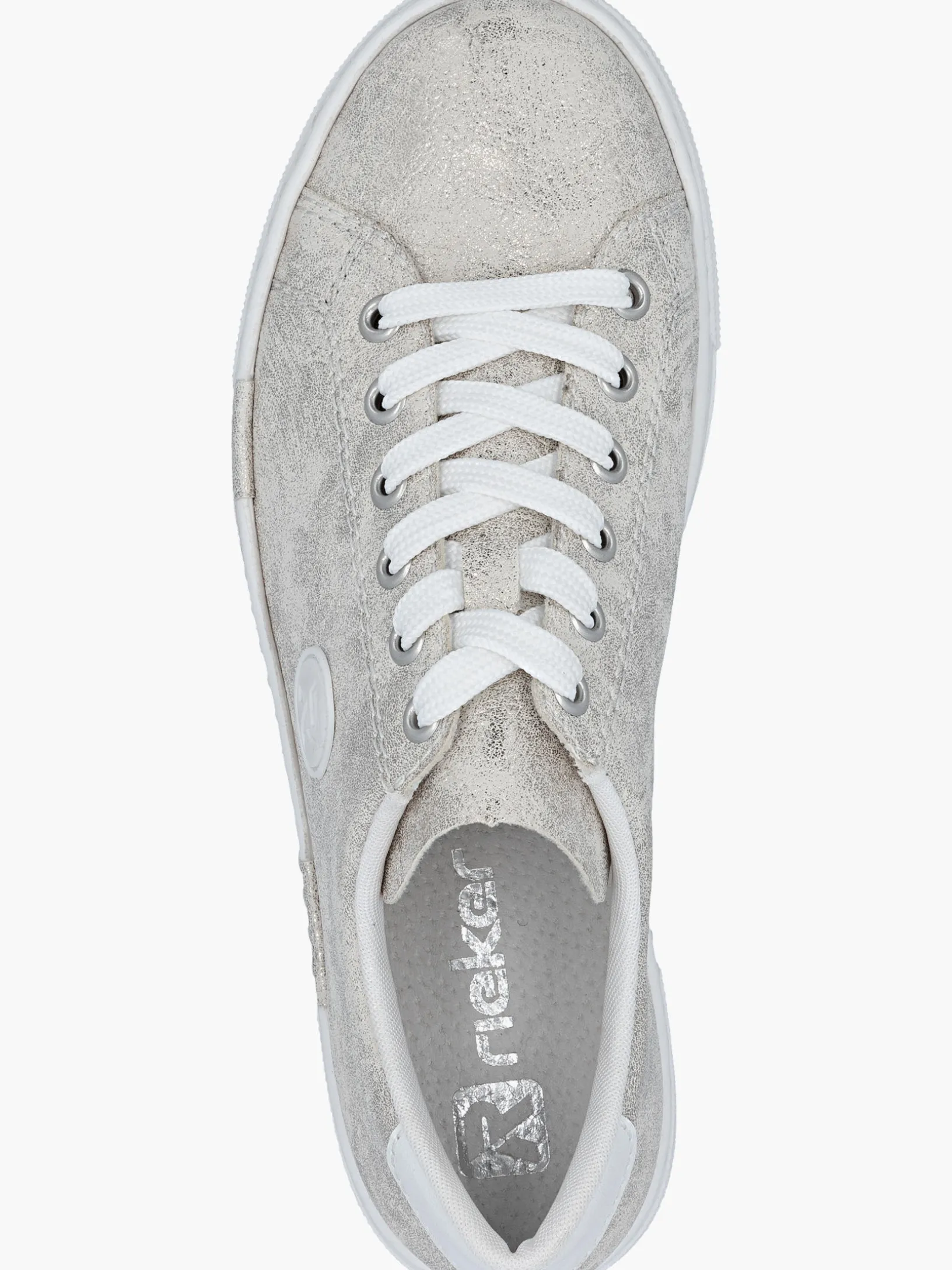 Einmal Sneaker, immer Sneaker. Diese silbernen Rieker Sneaker für Damen sehen nicht nur stylisch aus, sondern sorgen dank ihrer Qualität auch für den gewissen Komfort im Alltag. Zudem sorgt die weiße Schnürung für eine optimale Fußanpassung. Das geprägte Logo an der Seite ist ein schöner Eyecatcher. Die schockabsorbierende und sehr leichte Plateausohle bietet anhaltendes Wohlgefühl ‒ auch an langen Tagen. Darüber hinaus ist die Decksohle extra weich. Gesucht, gefunden!