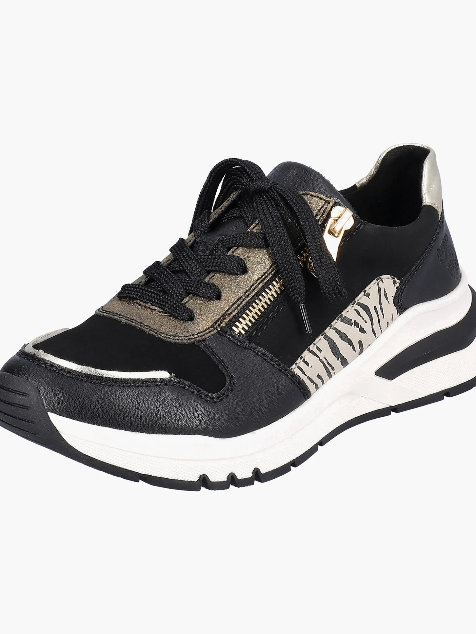 Easy walking, easy living! Diese urbanschwarzen Sneaker sind der perfekte Begleiter für jeden Anlass. Die clevere Kombination aus Schnürung und Reißverschluss gibt optimalen Halt und ermöglicht ein einfaches An- und Ausziehen. Mit der robusten Profilsohle ist trittsicheres Gehen eine Selbstverständlichkeit. Die extra weiche und herausnehmbare Einlegesohle sorgt für maximalen Komfort. Der Schuh ist die perfekte Wahl für große Füße: Er ist in Extraweite geschnitten und in Übergrößen erhältlich. Alles in einem – top!