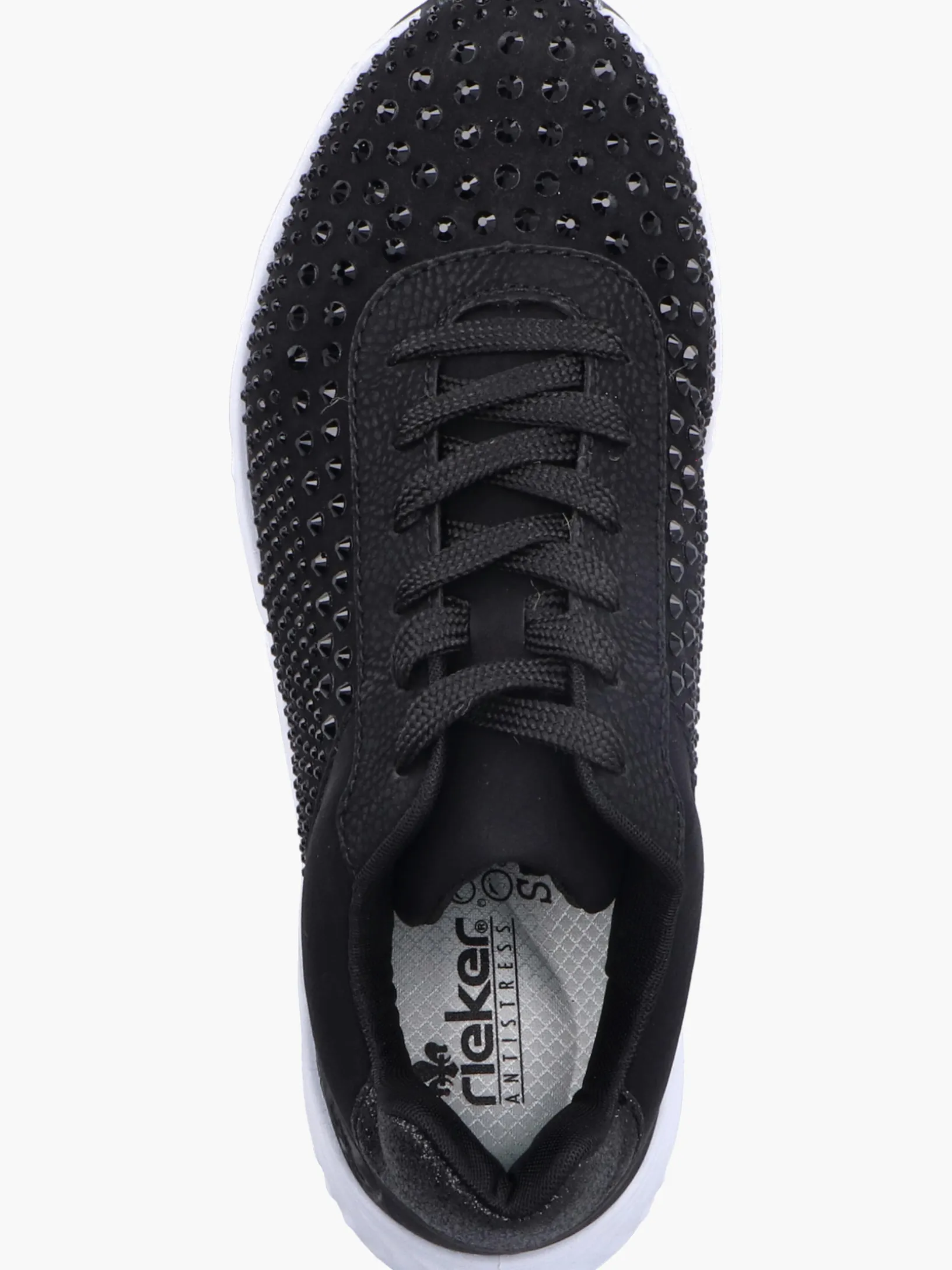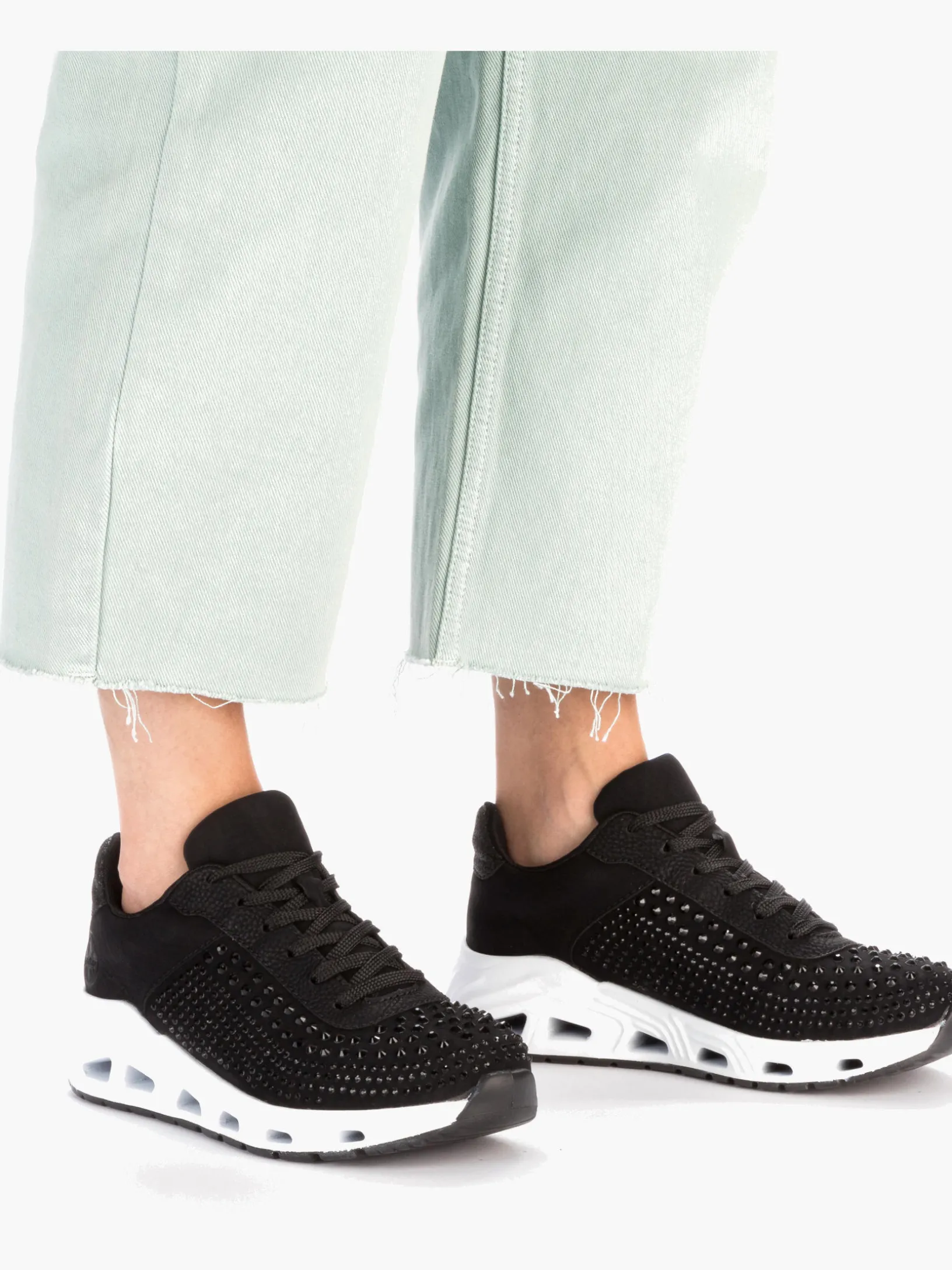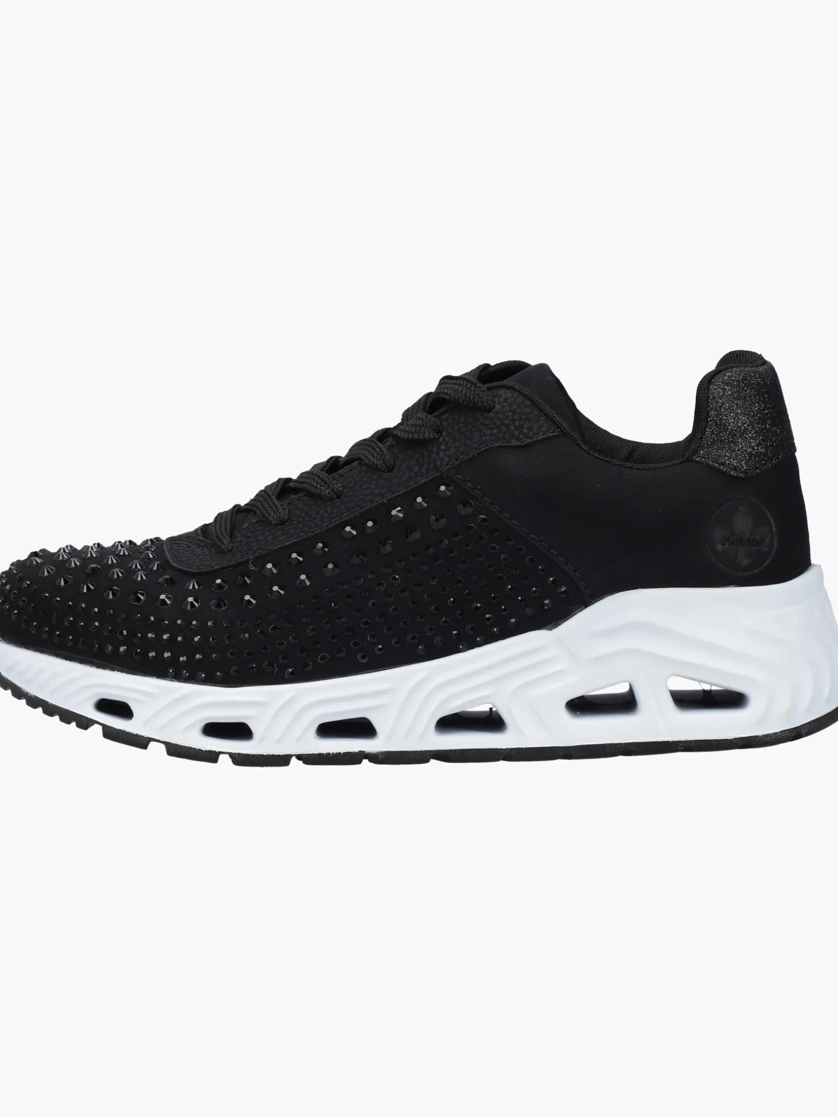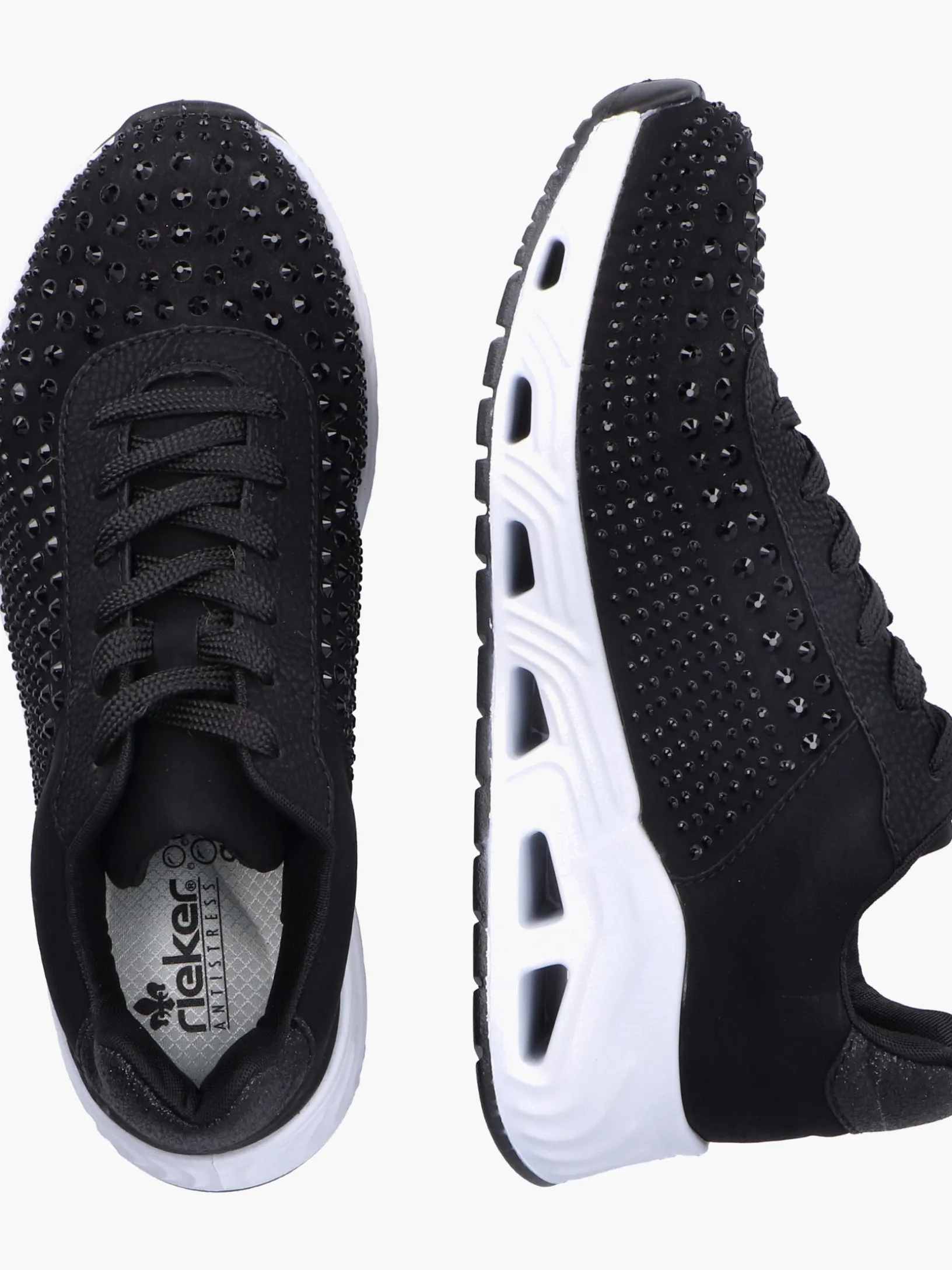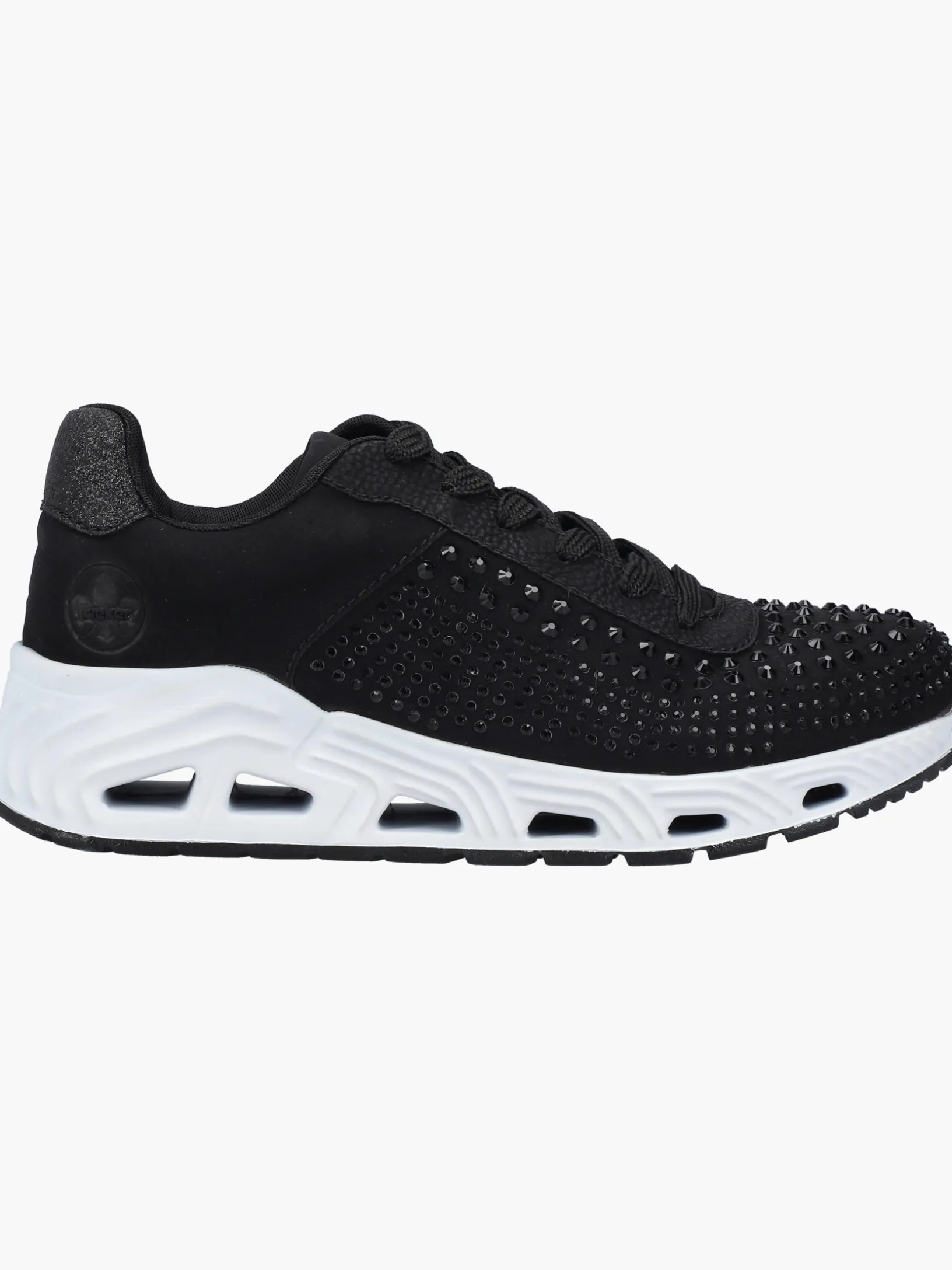 Für immer der Eine: Diese veganen, tiefschwarzen Rieker Sneaker für Damen kann man sowohl im Alltag als auch in der Freizeit zu vielen Looks kombinieren! Durch die Schnürung ist der Schuh ideal anpassbar. Die schwarze Strasssteine an der Seite rundet den Look des Schuhs harmonisch ab. Die flexible und ultra leichte Sohle bietet anhaltendes Wohlgefühl ‒ auch an langen Tagen. Die Sneaker punkten darüber hinaus mit einer gepolsterten und herausnehmbaren Einlegesohle. Das Modell ist in Komfortweite G geschnitten und sichert dem Fuß genügend Freiraum. Deine Best-Buddies für die neue Saison!