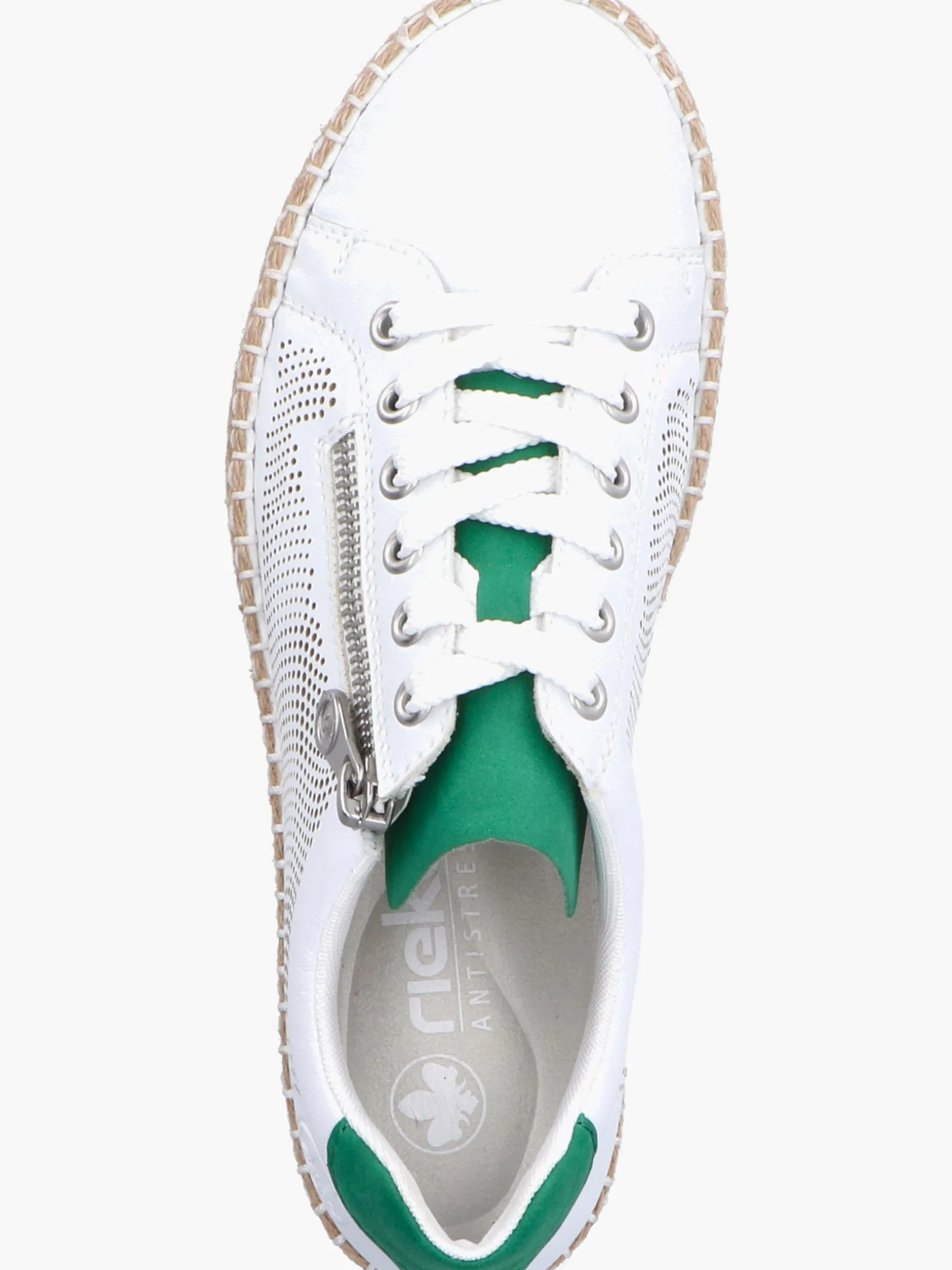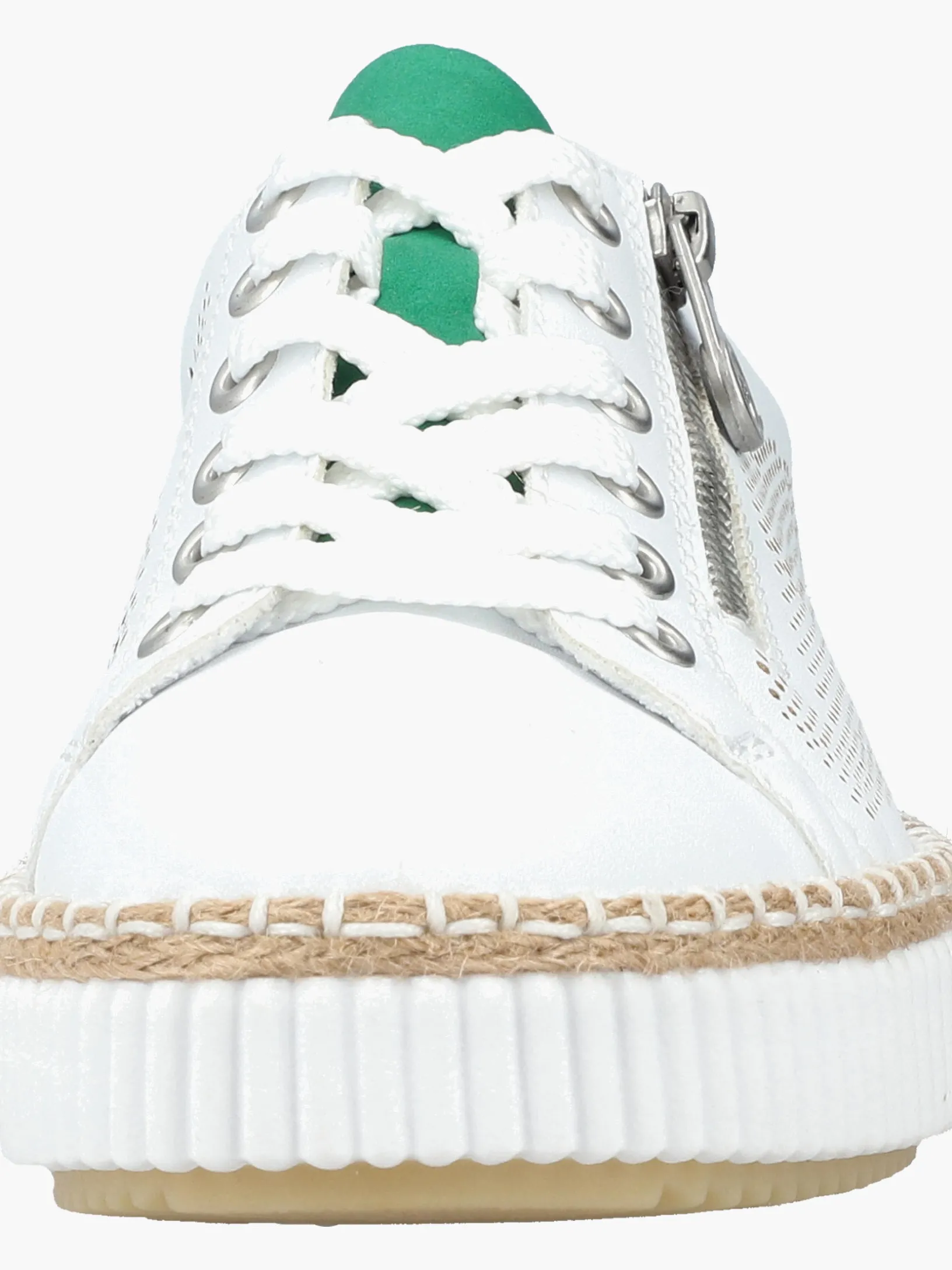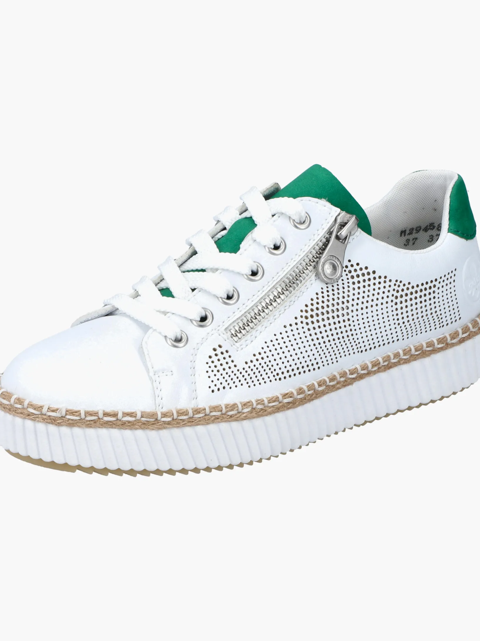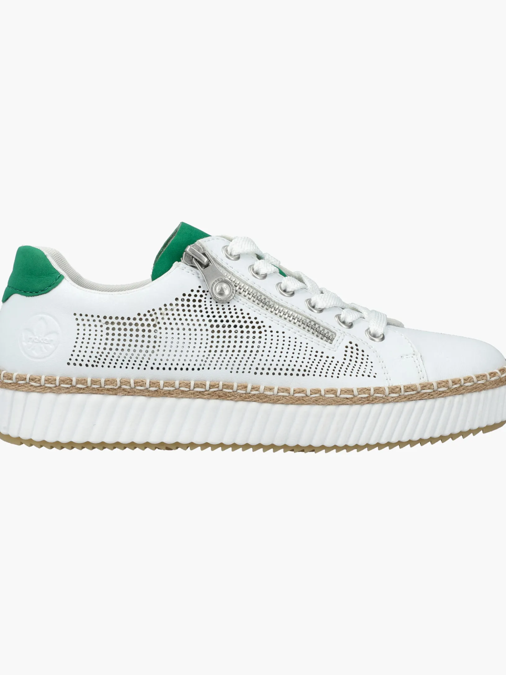 100% vegan! Die eisweißen Rieker Sneaker für Damen sind nicht nur ein echter Hingucker, sondern auch unglaublich bequem für den Alltag. Trotz Schnürung kann der Schuh ganz einfach mit einem Reißverschluss geschlossen werden. Die griffige Sohle sorgt für guten Halt. Die gepolsterte und herausnehmbare Einlegesohle sorgt für maximalen Komfort. Wohlgefühl für die Füße – mit Rieker!