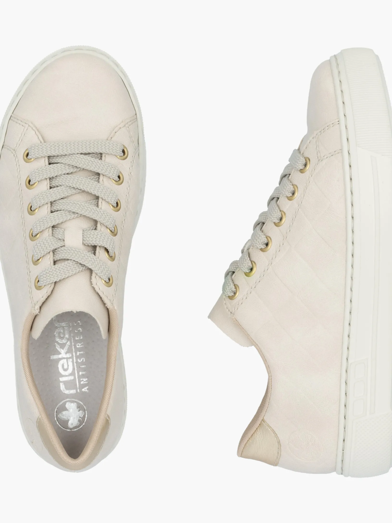 Easy walking, easy living! Diesen hellbeigen Rieker Sneaker für Damen möchte man gar nicht mehr ausziehen. Zusätzlich sorgt die Schnürung für eine gute Fußanpassung. Die ultra leichte und flexible Sohle verwöhnt die Füße zusätzlich bei jedem Schritt. Außerdem sorgt die extra weiche Decksohle für eine Extraportion Tragekomfort. Mehr geht nicht!
