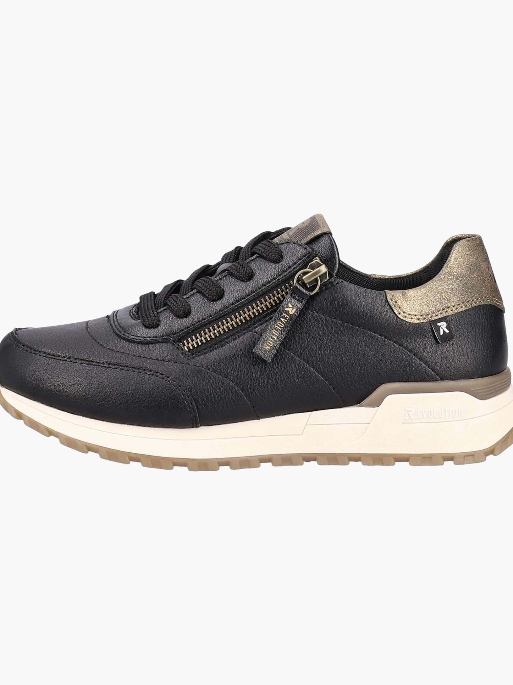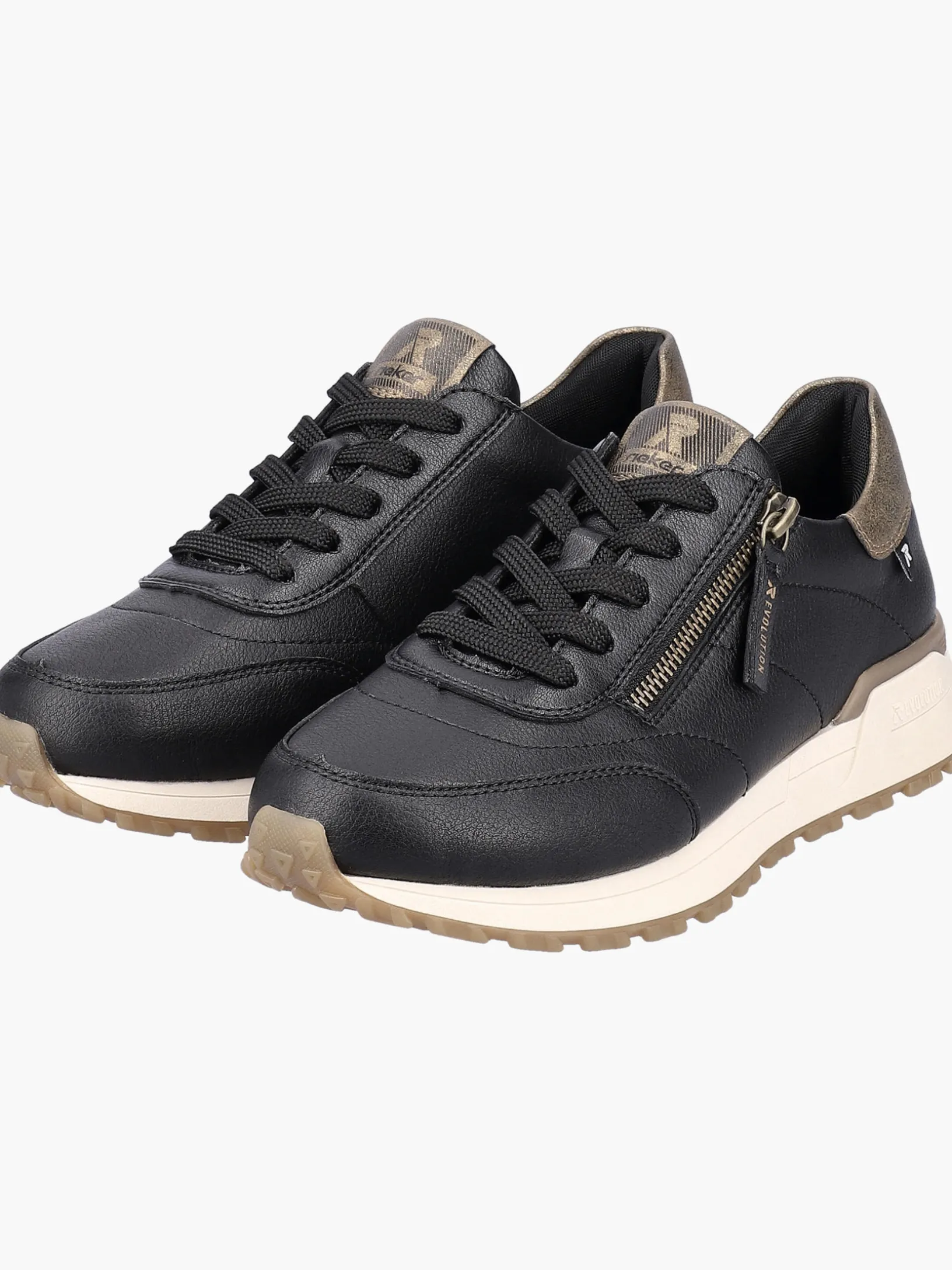 Next level comfort and style! Mit diesen Rieker EVOLUTION Sneakern aus Glattleder in Schwarz musst du dich nicht zwischen Style, Komfort und Funktion entscheiden. Die clevere Kombination aus Schnürung und Reißverschluss ermöglicht ein einfaches An- und Ausziehen. Die leichte Profilsohle gibt Halt auf unterschiedlichen Wegen. Funktional, komfortabel und einfach praktisch – so lässt sich die gepolsterte und herausnehmbare Einlegesohle treffend beschreiben. Die Sneaker sind ebenfalls bis zur Schuhgröße 43 erhältlich! Die Sneaker sind mit einem atmungsaktiven Innenfutter aus Microvelour ausgestattet. Very cool!