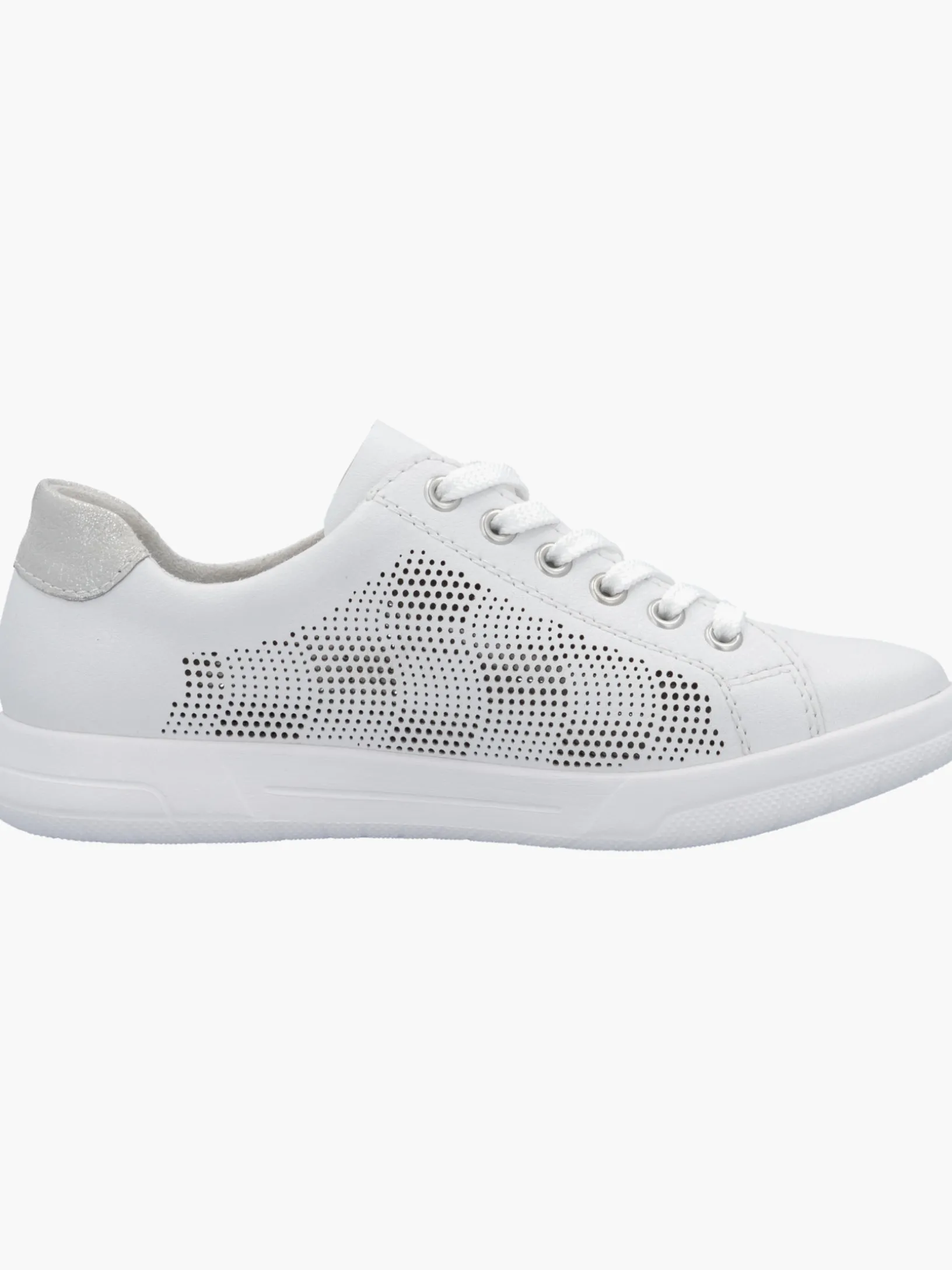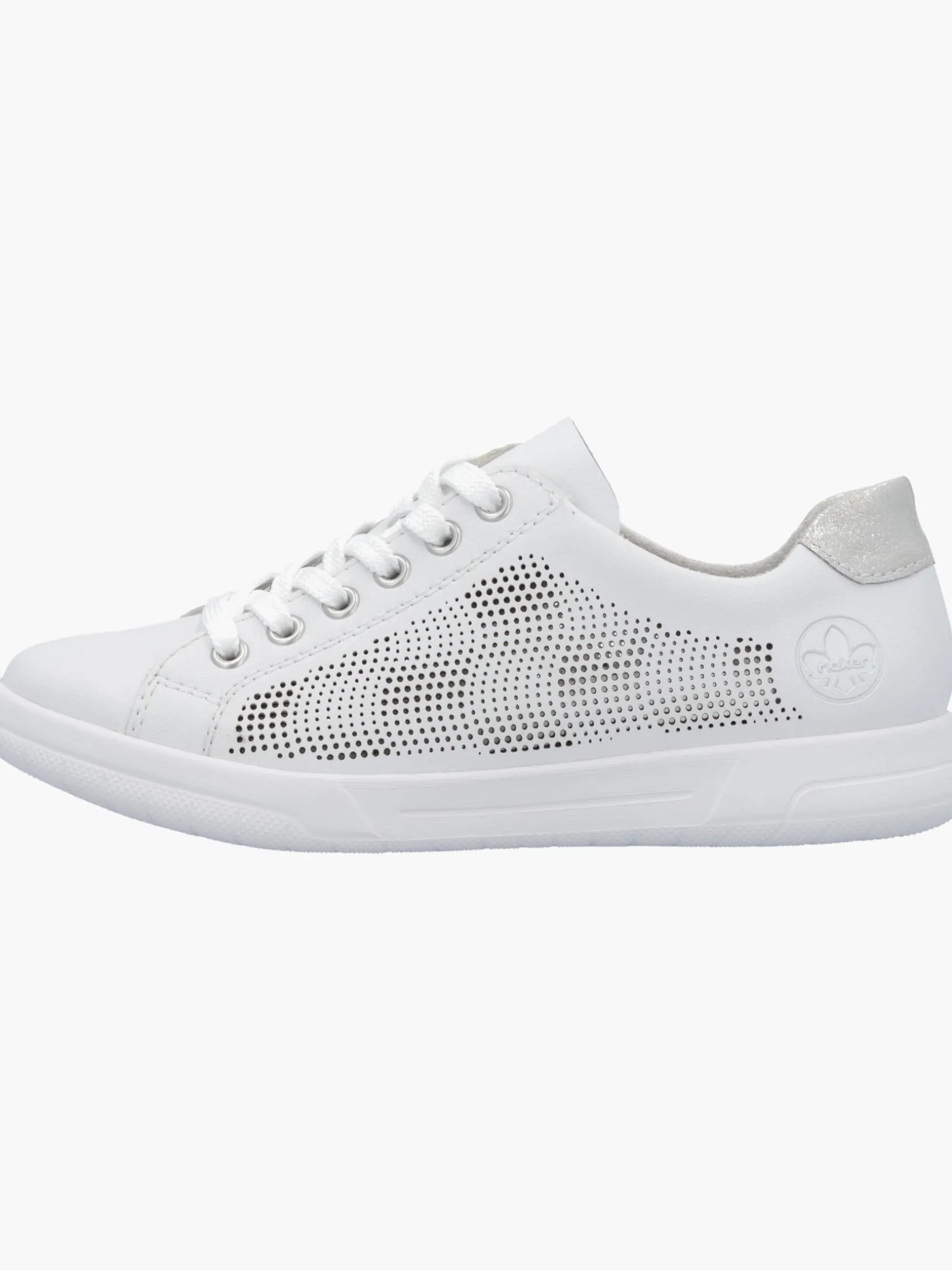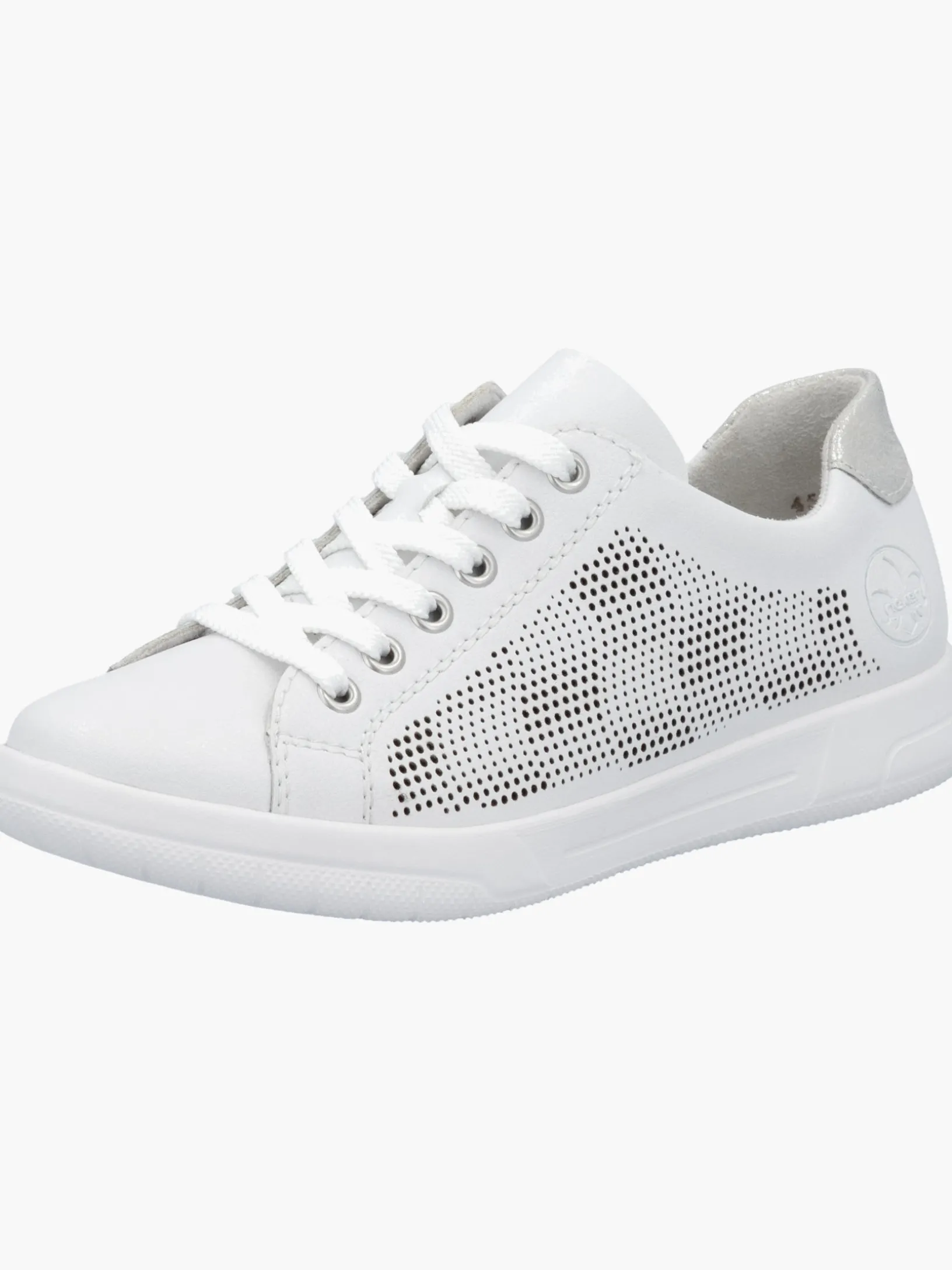 Achtung Trendalarm! Diese reinweißen Rieker Sneaker für Damen aus Glattleder überzeugen mit echtem Komfort für die Füße. Zusätzlich werden guter Halt und eine optimale Passform durch die Schnürung garantiert. Das dekorative Steinchen sorgt für das gewisse Etwas. Die flexible und ultra leichte Sohle bietet anhaltendes Wohlgefühl ‒ auch an langen Tagen. Mit der gepolsterten und herausnehmbaren Einlegesohle verfügen die Sneaker über ein weiteres, praktisches Komfort-Feature. Wohlge(h)fühl inklusive!