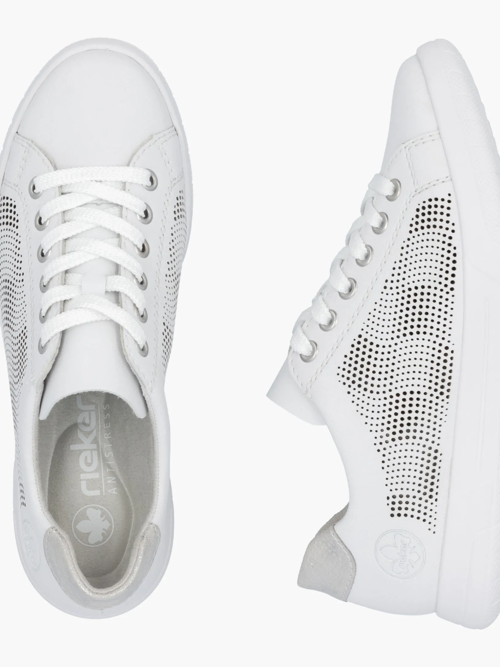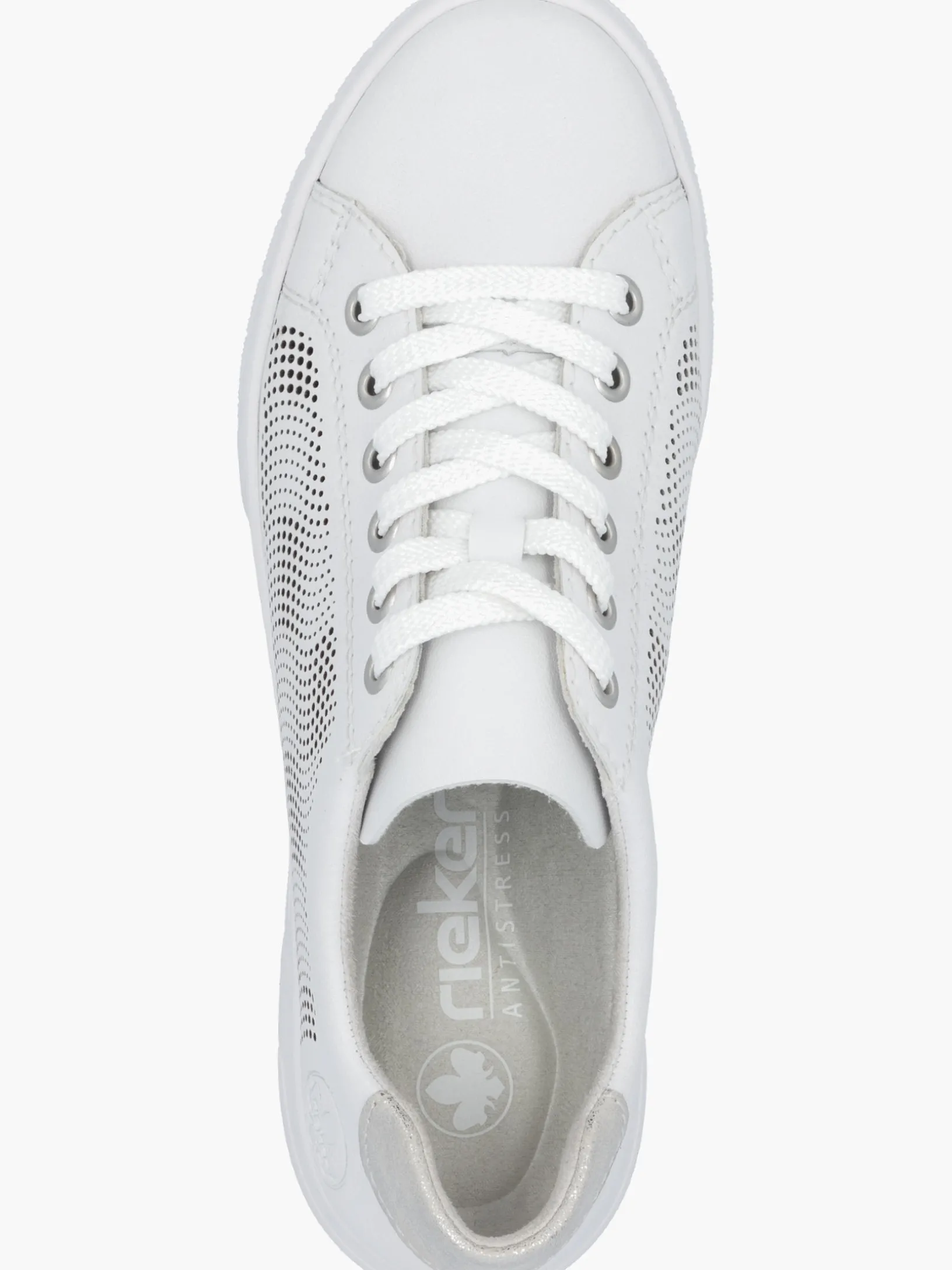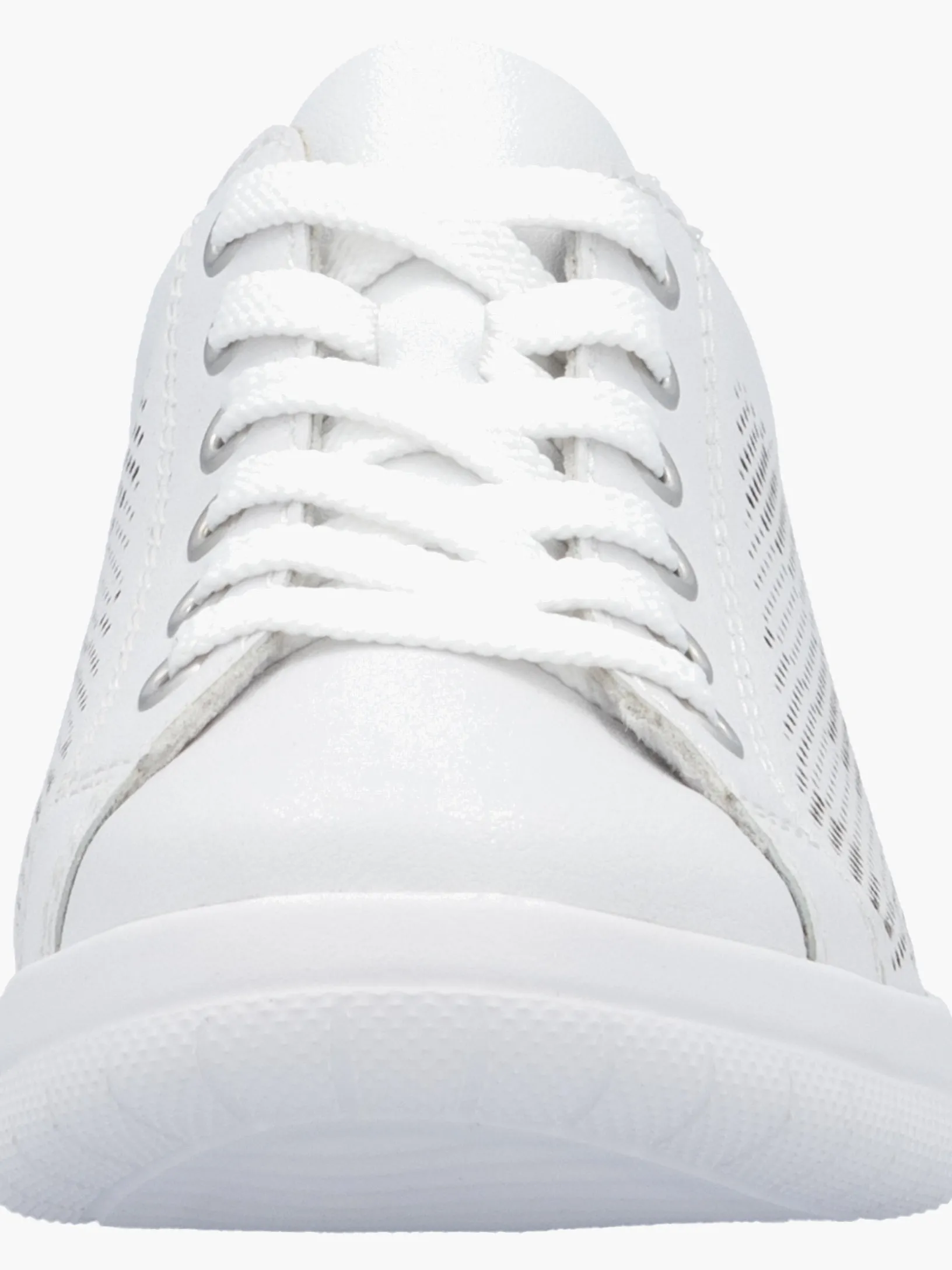 Achtung Trendalarm! Diese reinweißen Rieker Sneaker für Damen aus Glattleder überzeugen mit echtem Komfort für die Füße. Zusätzlich werden guter Halt und eine optimale Passform durch die Schnürung garantiert. Das dekorative Steinchen sorgt für das gewisse Etwas. Die flexible und ultra leichte Sohle bietet anhaltendes Wohlgefühl ‒ auch an langen Tagen. Mit der gepolsterten und herausnehmbaren Einlegesohle verfügen die Sneaker über ein weiteres, praktisches Komfort-Feature. Wohlge(h)fühl inklusive!