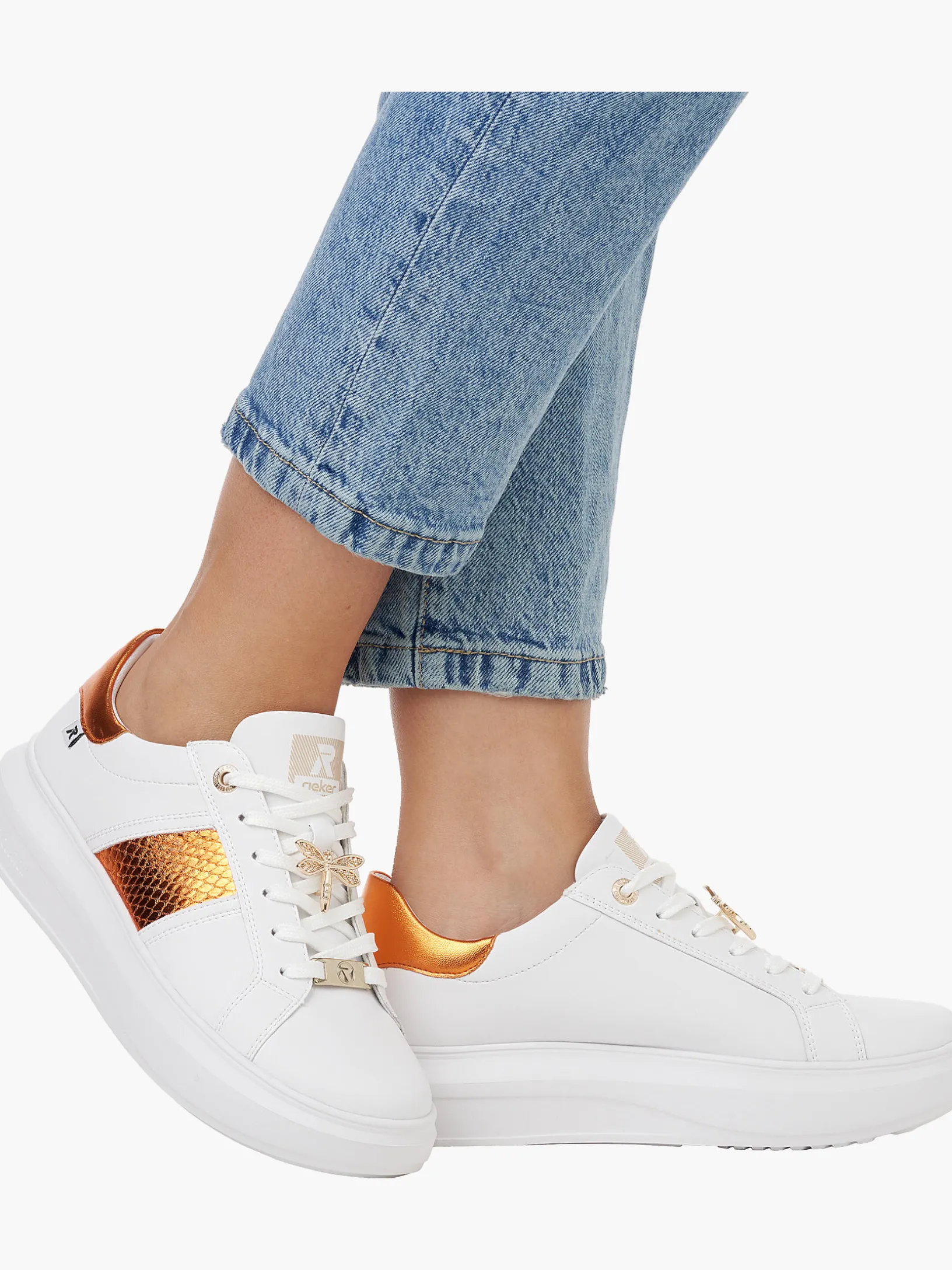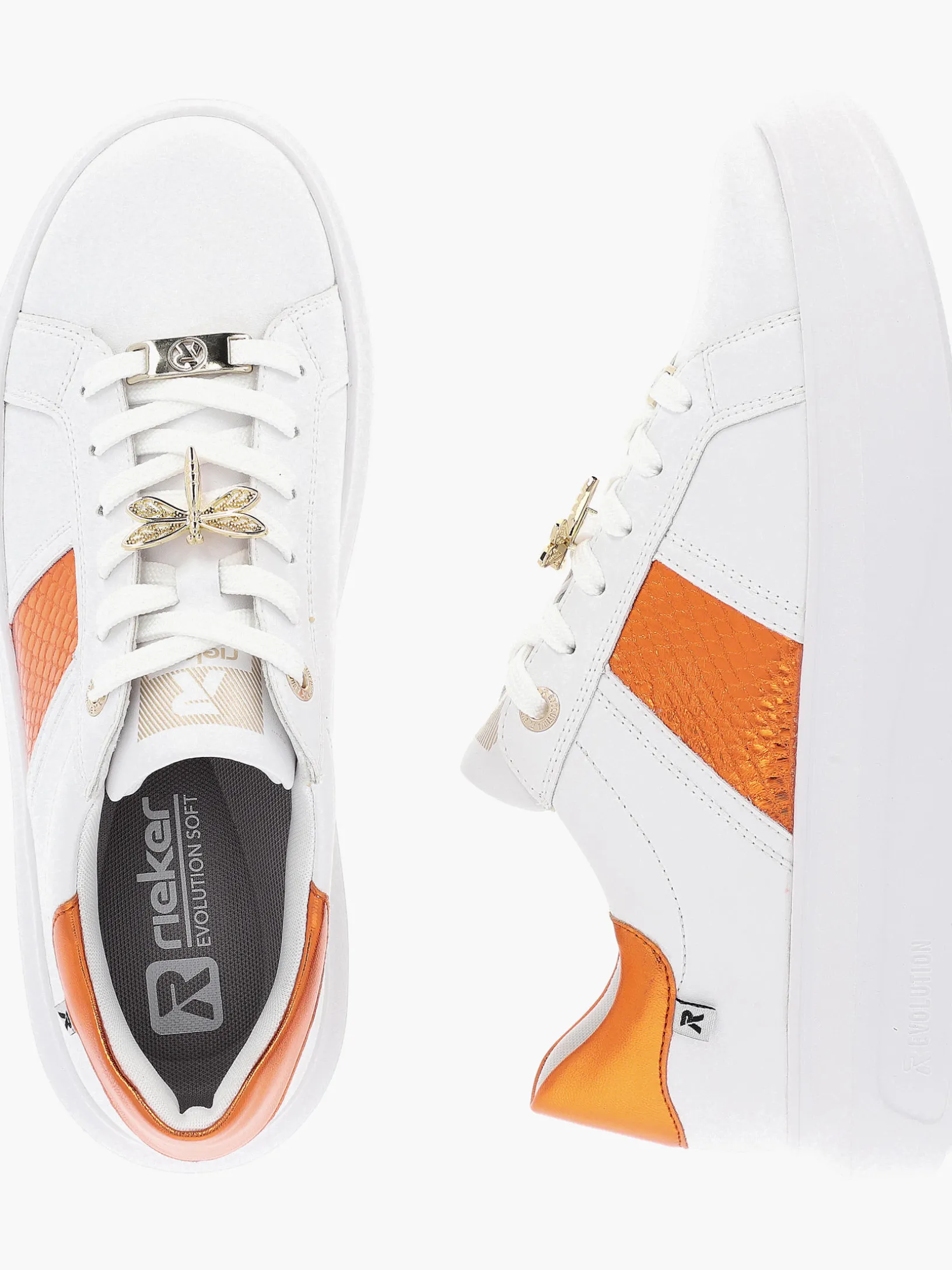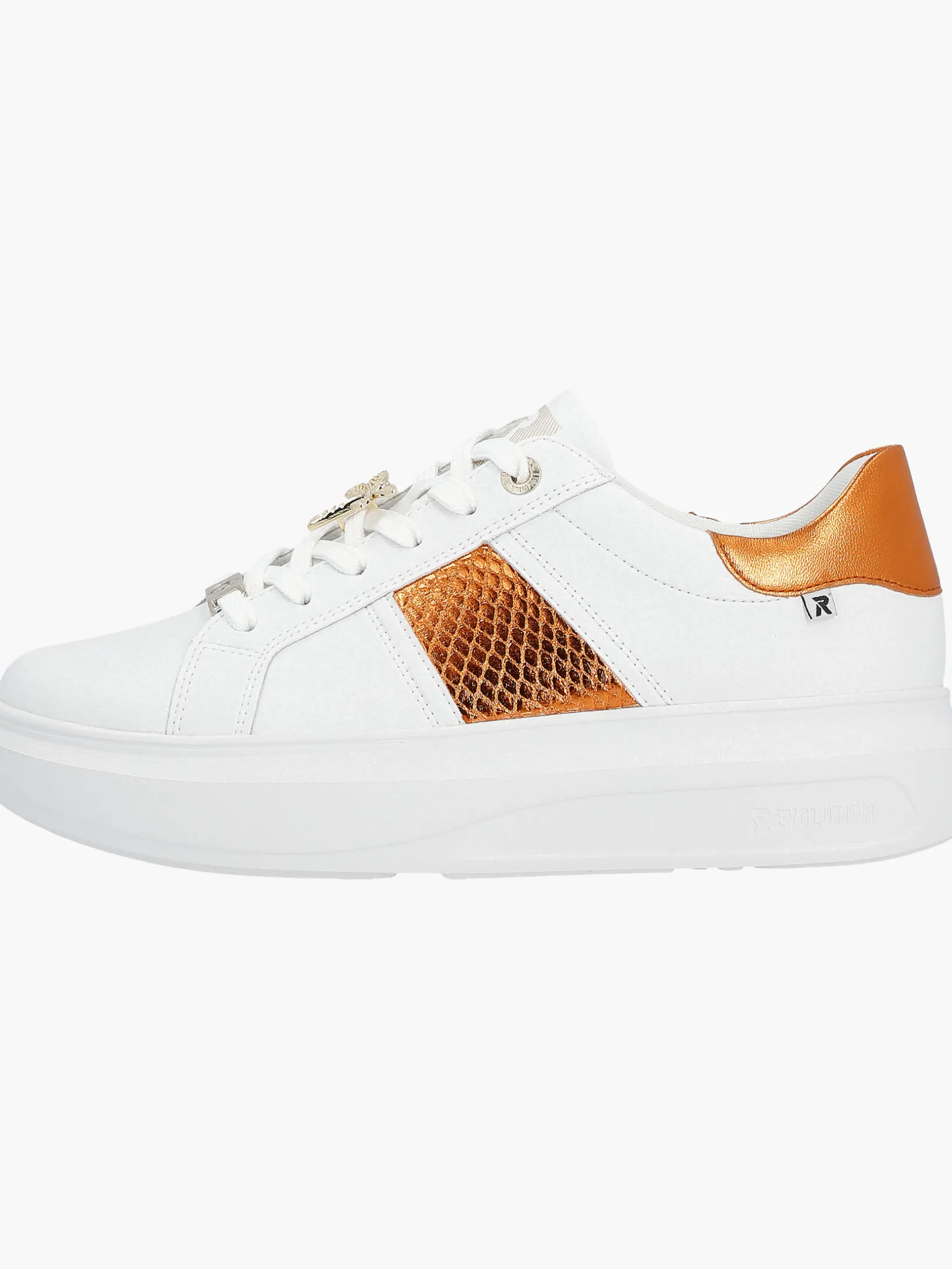 Ready, set, walk! Dieser coole weiße Rieker Sneaker für Damen aus Glattleder ist DAS Highlight. Zusätzlich werden guter Halt und eine ideale Passform durch die Schnürung garantiert. Mit der flexiblen und ultra leichten Sohle werden deine Füße bei jedem Schritt verwöhnt. Funktional, komfortabel und einfach praktisch – so lässt sich die gepolsterte und herausnehmbare Einlegesohle treffend beschreiben. Das Innenfutter aus Microvelour sorgt für ein absolutes Wohlgefühl unter den Füßen. R-EVOLUTION of shoes!