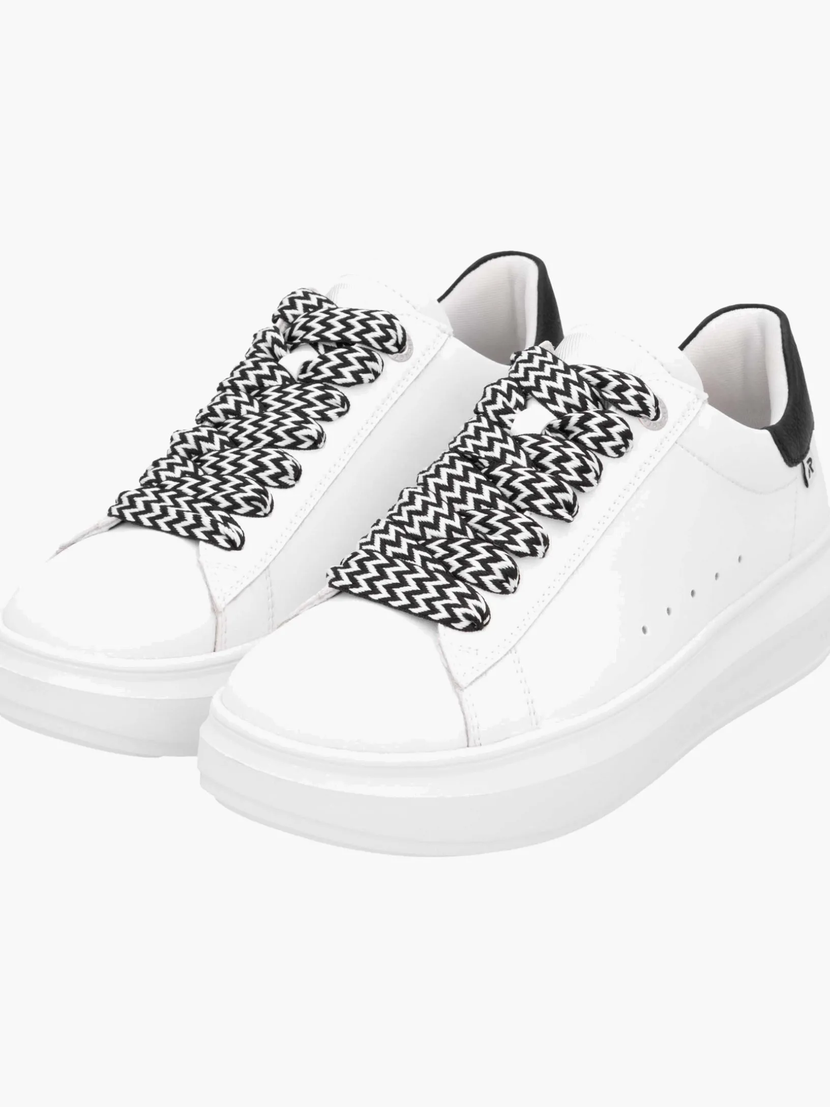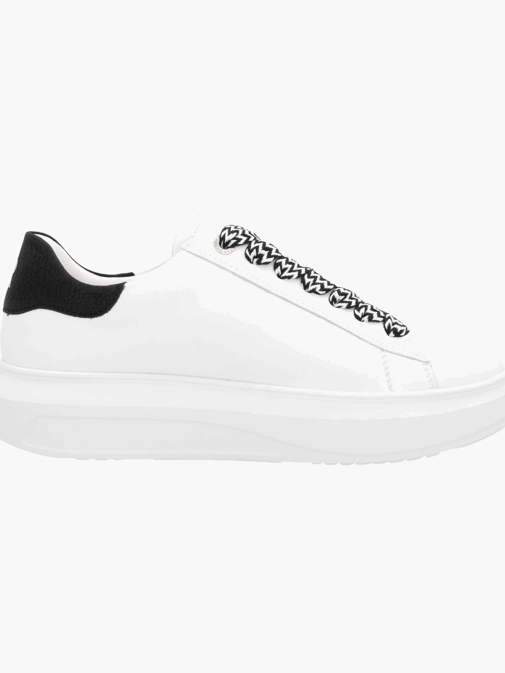 Next level comfort and style! Diese weißen Rieker Sneaker für Damen aus Glattleder zeigen sich einfach classy und cool. Zudem sorgt die breite Schnürung für eine optimale Fußanpassung. Zusätzlich gibt es weiße Schnürsenkel zum Austauschen dazu. Die flexible und ultra leichte Sohle verwöhnt die Füße zusätzlich bei jedem Schritt. Ein weiteres Plus ist die gepolsterte und herausnehmbare Einlegesohle. Die Innenfütterung aus Microvelour ist leicht und atmungsaktiv. Redefine your (life)style!