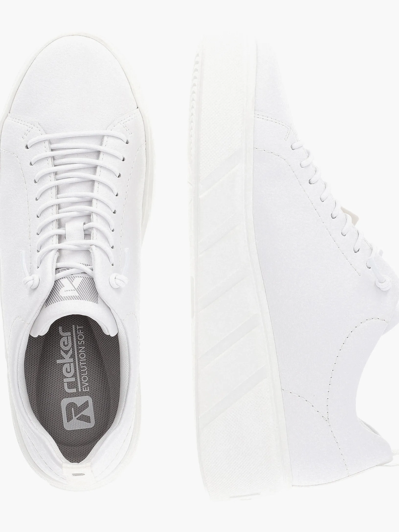 Mutiger, stylischer, sportiver – R-EVOLUTION! Diese lässigen weißen Rieker Sneaker für Damen aus Glattleder haben Lieblingsschuh-Potential! Durch die Schnürung ist der Schuh optimal anpassbar. Die sehr leichte und schockabsorbierende Sohle bietet anhaltendes Wohlgefühl ‒ auch an langen Tagen. Mit der gepolsterten und herausnehmbaren Einlegesohle wird das Design funktional ergänzt. Dank der atmungsaktiven Innenfütterung aus Microvelour ist idealer Tragekomfort garantiert. Next level comfort and style!