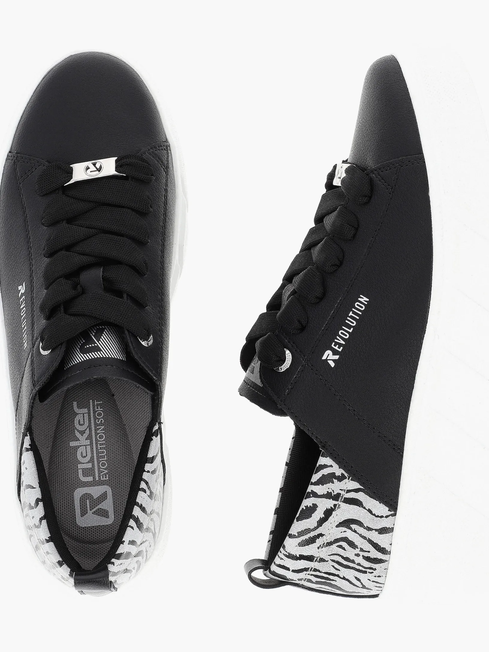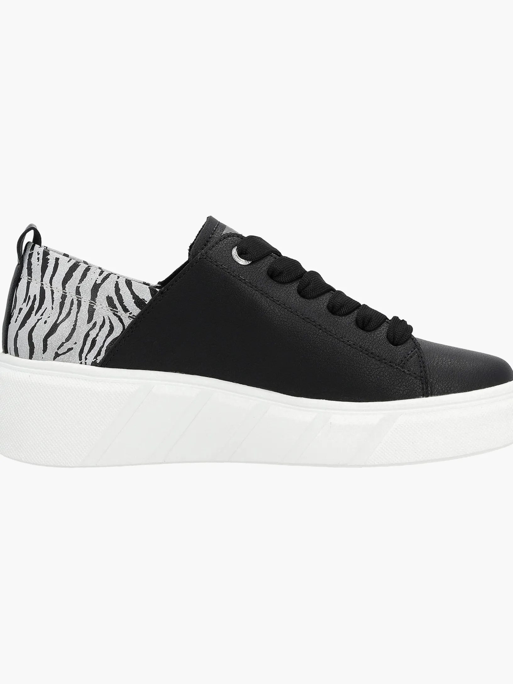 Die perfekte Symbiose aus Style, Komfort und Funktion! Diese lässigen schwarzen Rieker Sneaker für Damen aus Glattleder sind ein Fashion-Segen für die Füße. Durch die breite Schnürung ist der Schuh auch ideal anpassbar. Die schockabsorbierende und sehr leichte Sohle verwöhnt die Füße darüber hinaus bei jedem Schritt. Mit der gepolsterten und herausnehmbaren Einlegesohle ist der Schuh funktional ausgestattet. Das Modell ist mit leichtem Microvelour gefüttert, das atmungsaktiv ist. Sportiver Lifestyle neu definiert!