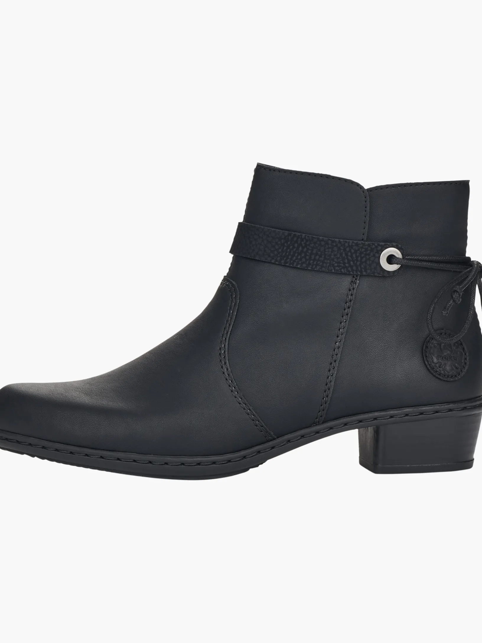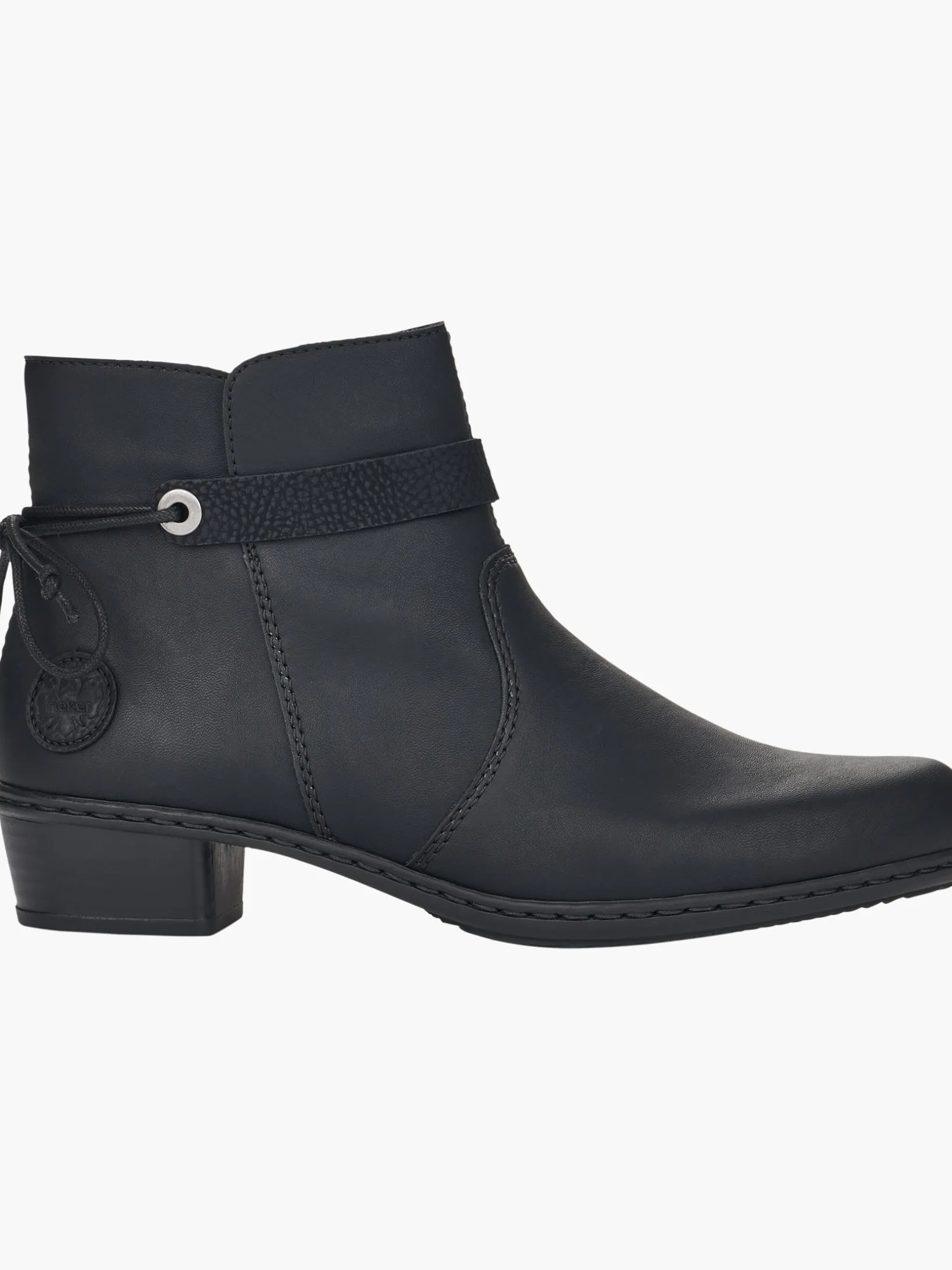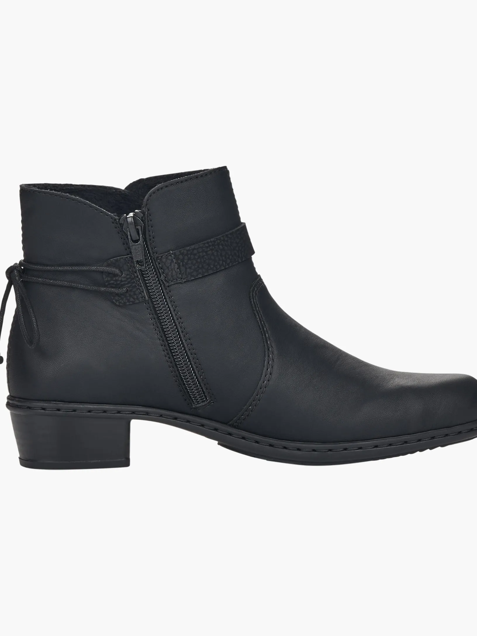 Très chic! Diese tiefschwarzen Stiefeletten von Rieker vereinen cooles Design mit bestem Komfort und hoher Funktionalität. Für bequemes An- und Ausziehen sorgt der seitliche Reißverschluss. Das dekorative schwarze Band an der Seite frischt das Design gekonnt auf. Mit der schockabsorbierenden und leichten Sohle mit Blockabsatz werden deine Füße bei jedem Schritt verwöhnt. Alles in einem – top!