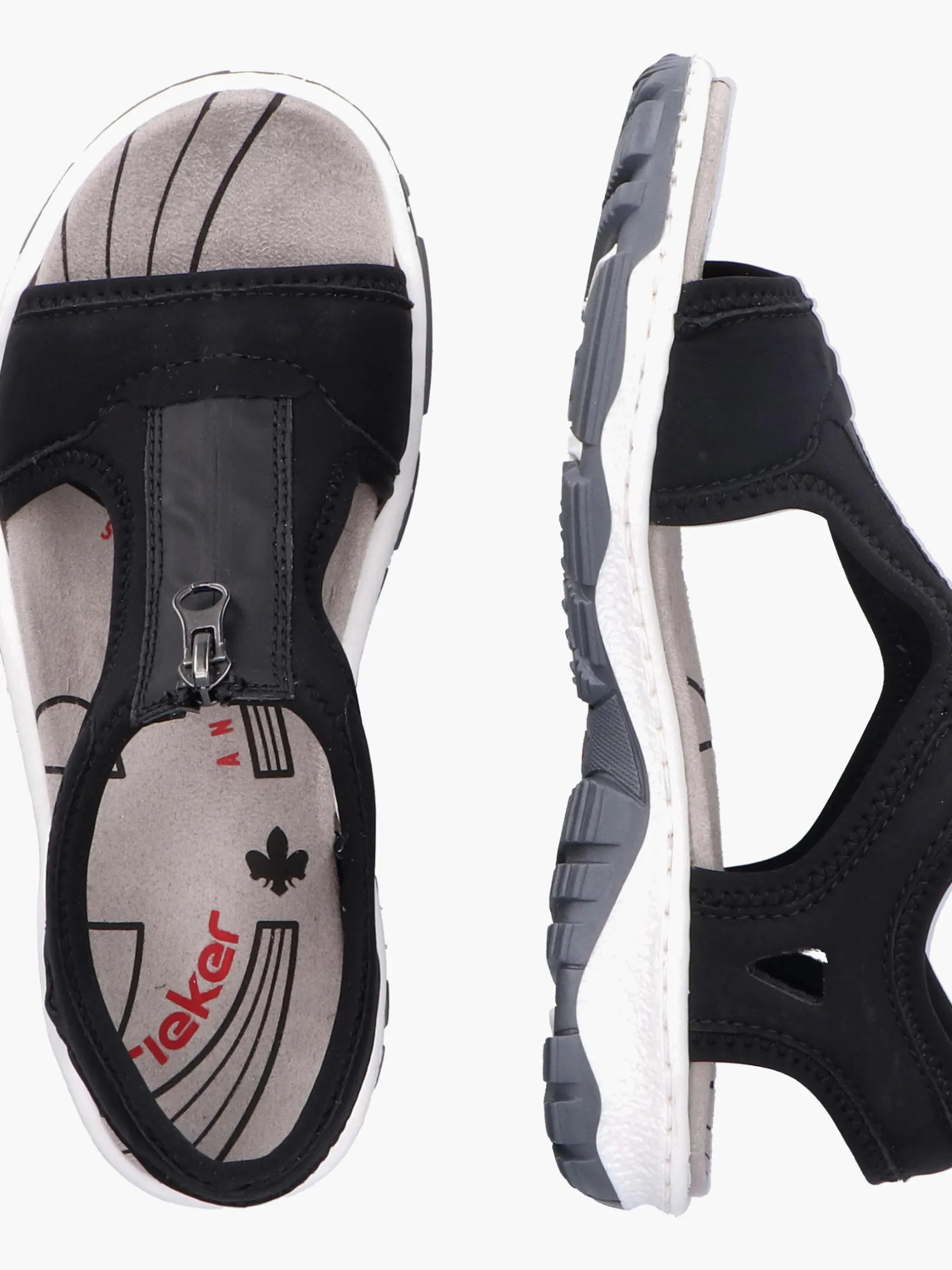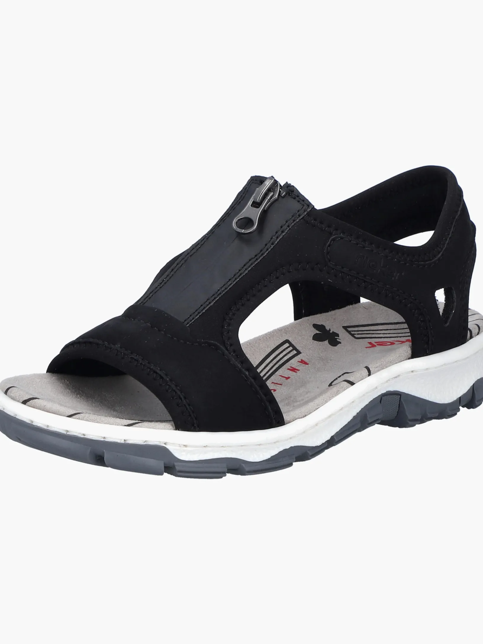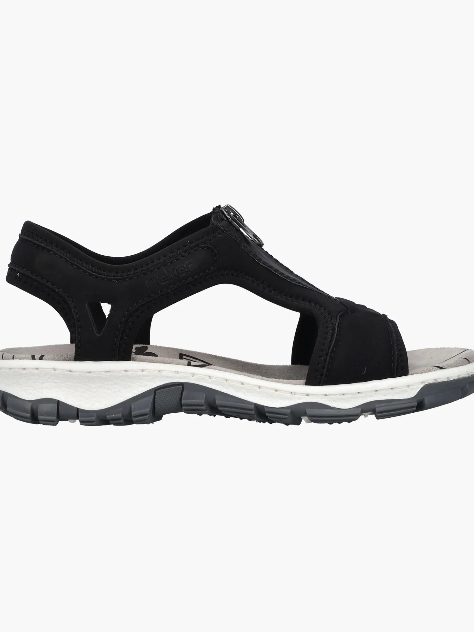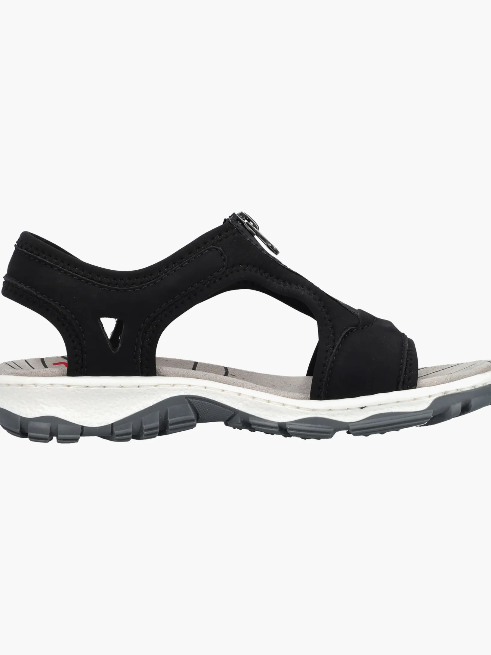 Fashion meets Function. Diese tiefschwarzen Rieker Trekkingsandalen für Damen überzeugen mit einem klassischen Design und hohem Komfort. Der Reißverschluss ermöglicht ein einfaches An- und Ausziehen. Für zusätzlichen Halt sorgen breite Riemen und ein breiter Fersenriemen. Durch die griffige Sohle ist jeder Schritt eine sichere Angelegenheit. Extra-Halt ist durch die schmale Passform E 1/2 geboten. Worauf warten?