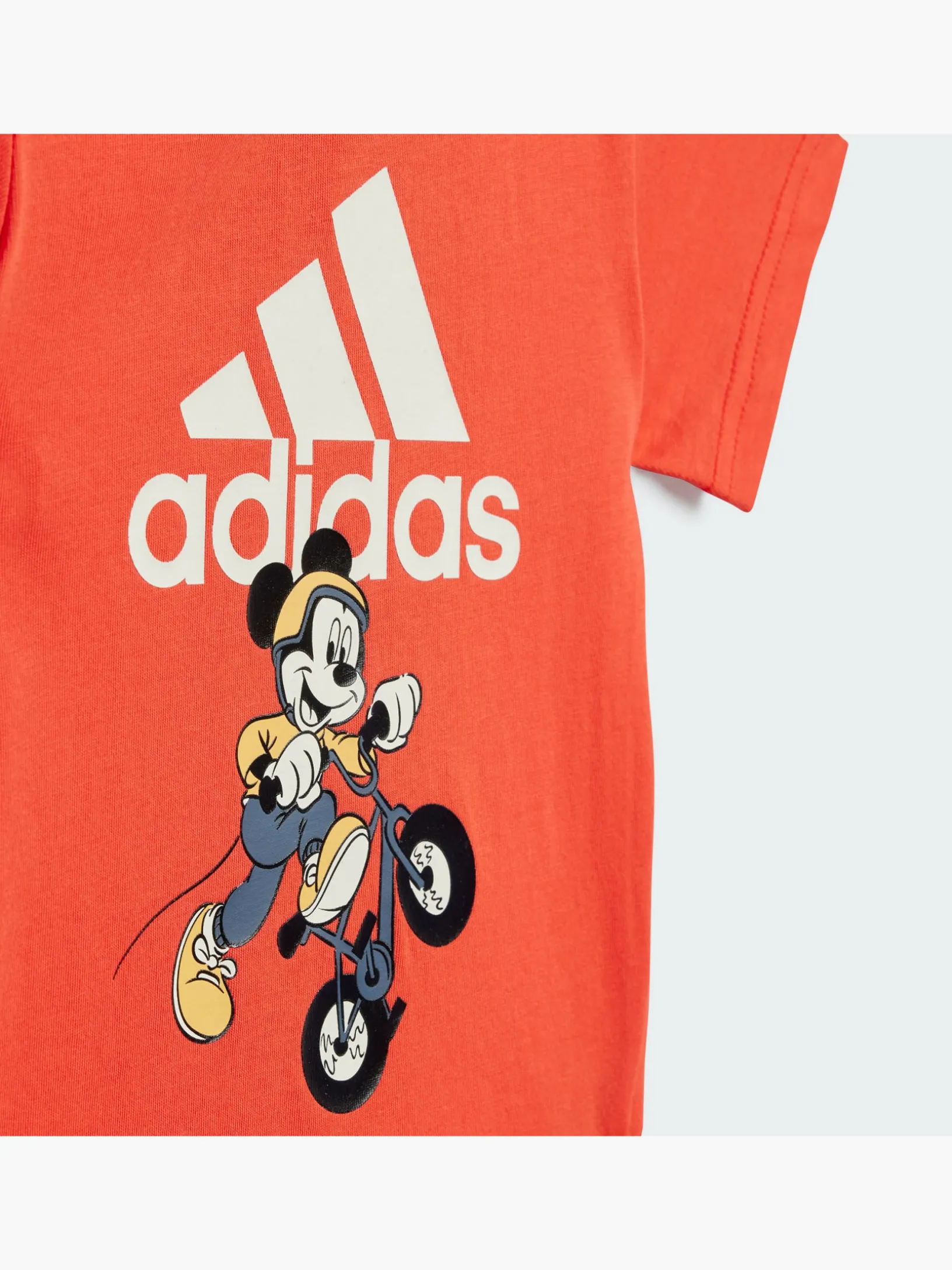 Mit diesem verspielten adidas x Disney Set aus T-Shirt und Shorts ist dein kleiner Schatz für jedes sportliche Abenteuer bereit. Anlässlich eines der weltgrößten Sportereignisse zeigt eine farbenfrohe Grafik, wie Micky Maus beim BMX an den Start geht. Egal, ob dein kleiner Liebling mit dem Laufrad auf Entdeckungstour geht oder auf dem Spielplatz herumtobt – dieses Set für Babys und Kleinkinder ist der perfekte Begleiter. Außerdem sorgt das weiche, leichte Jersey den ganzen Tag über für Komfort pur. Die Baumwolle für dieses Produkt stammt aus der Better Cotton Initiative. Better Cotton wird durch das Chain-of-Custody-Modell der Massenbilanz bezogen. Dadurch ist bei Better Cotton keine physische Rückverfolgung bis zum Endprodukt möglich. Hier erfährst du mehr: https://bettercotton.org/who-we-are/our-logo/