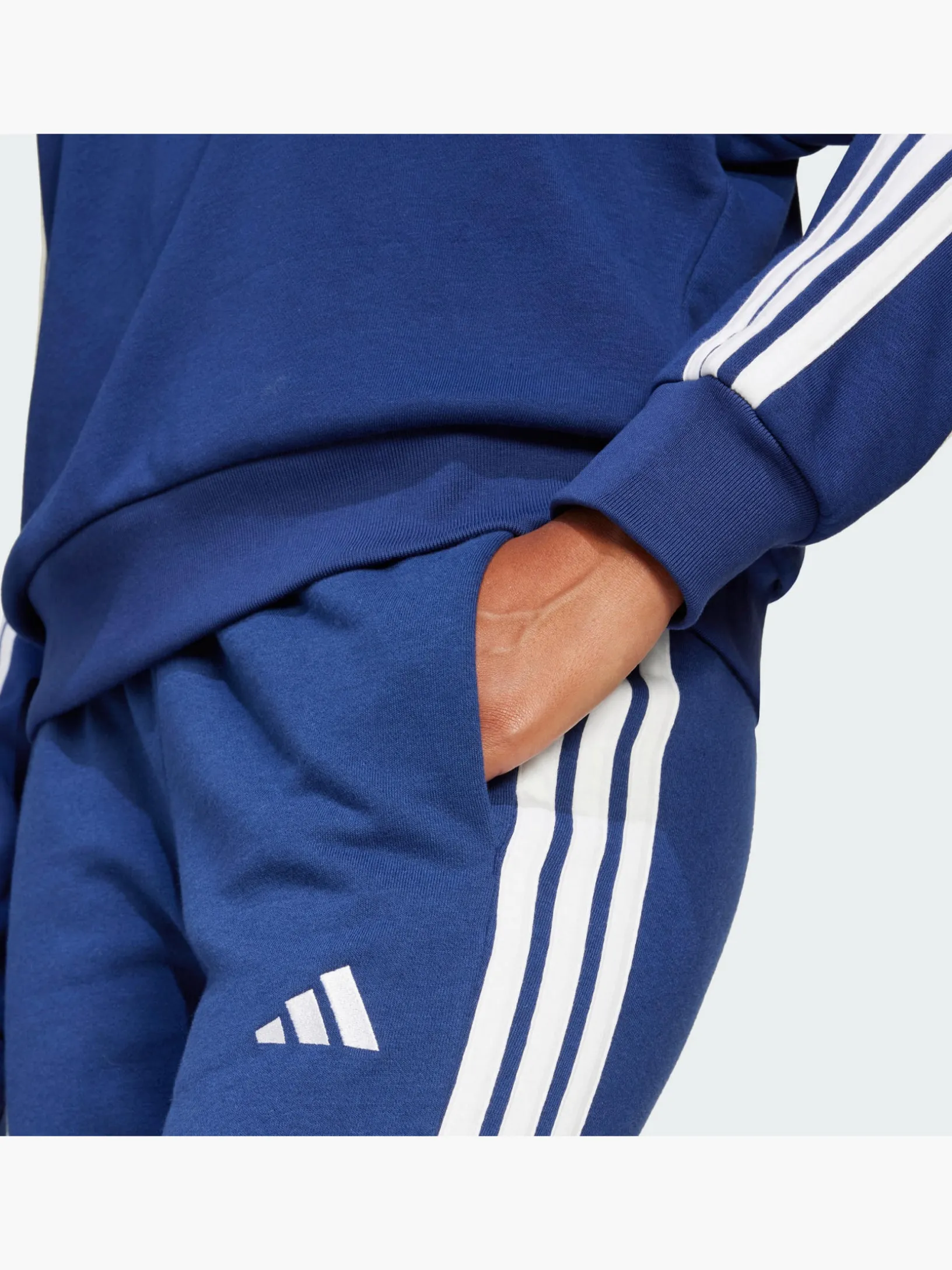 Diese adidas Hose ist perfekt zum Relaxen. Das weiche French-Terry-Material sorgt für ein Plus an Komfort, egal ob du zu Hause chillst oder deine To-do-Liste abarbeitest. Die Rippbündchen verpassen ihr außerdem einen sportlichen Look. Kombiniert mit einem gemütlichen Hoodie wird ein lässiger Wochenend-Look draus.Durch den Einsatz von Recyclingmaterialien können wir bereits vorhandene Gewebe und Fasern wiederverwenden und so dazu beitragen, Müll zu reduzieren. Auch erneuerbare Materialien sind ein Weg, uns weniger abhängig von nicht erneuerbaren Ressourcen zu machen. Unsere Produkte, die mit einem Mix aus recycelten und erneuerbaren Materialien hergestellt sind, bestehen zu mindestens 70 % aus diesen Materialien.