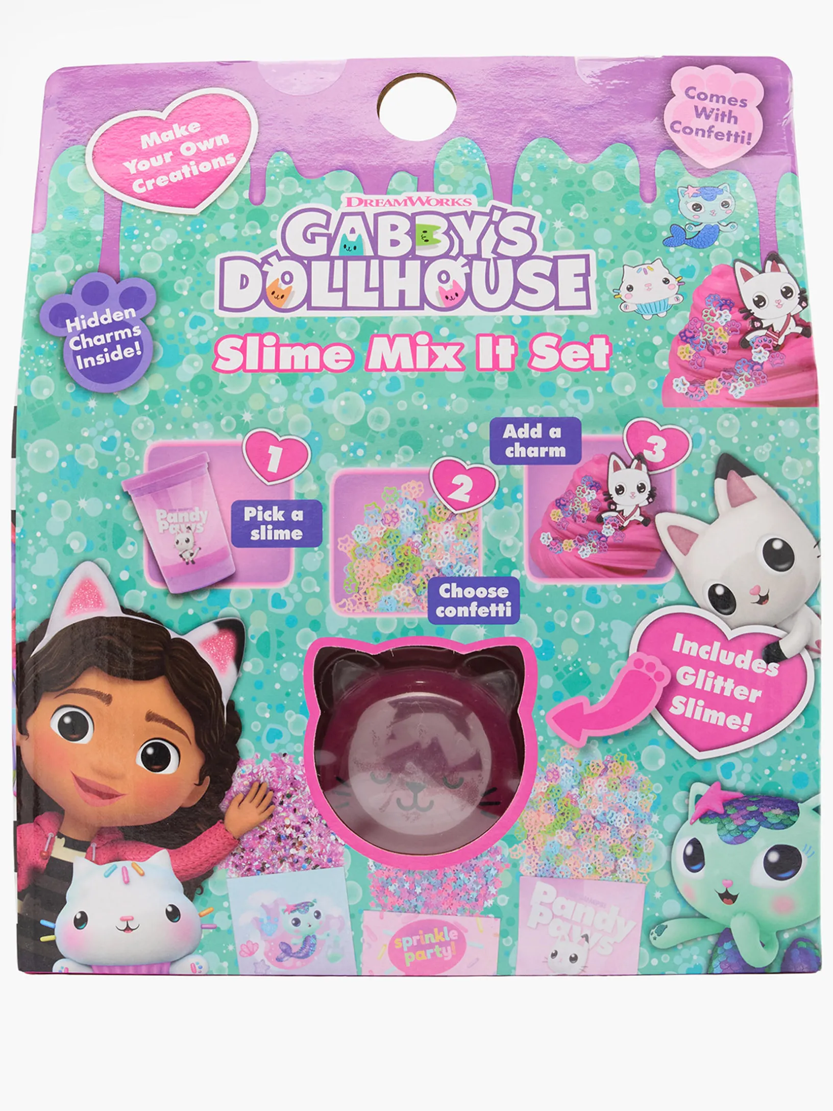 Mit dem Gabbys Dollhouse Slime Mix It Set kannst du deine eigene einzigartige Schleimkreation herstellen! Mische verschiedene Farben und Texturen, um deinen Schleim so zu gestalten, wie du ihn magst. Das Set enthält alles, was du brauchst, einschließlich Glitzer, Perlen und duftende Öle. Entfessle deine Kreativität und genieße endlosen Spaß mit diesem tollen Set!