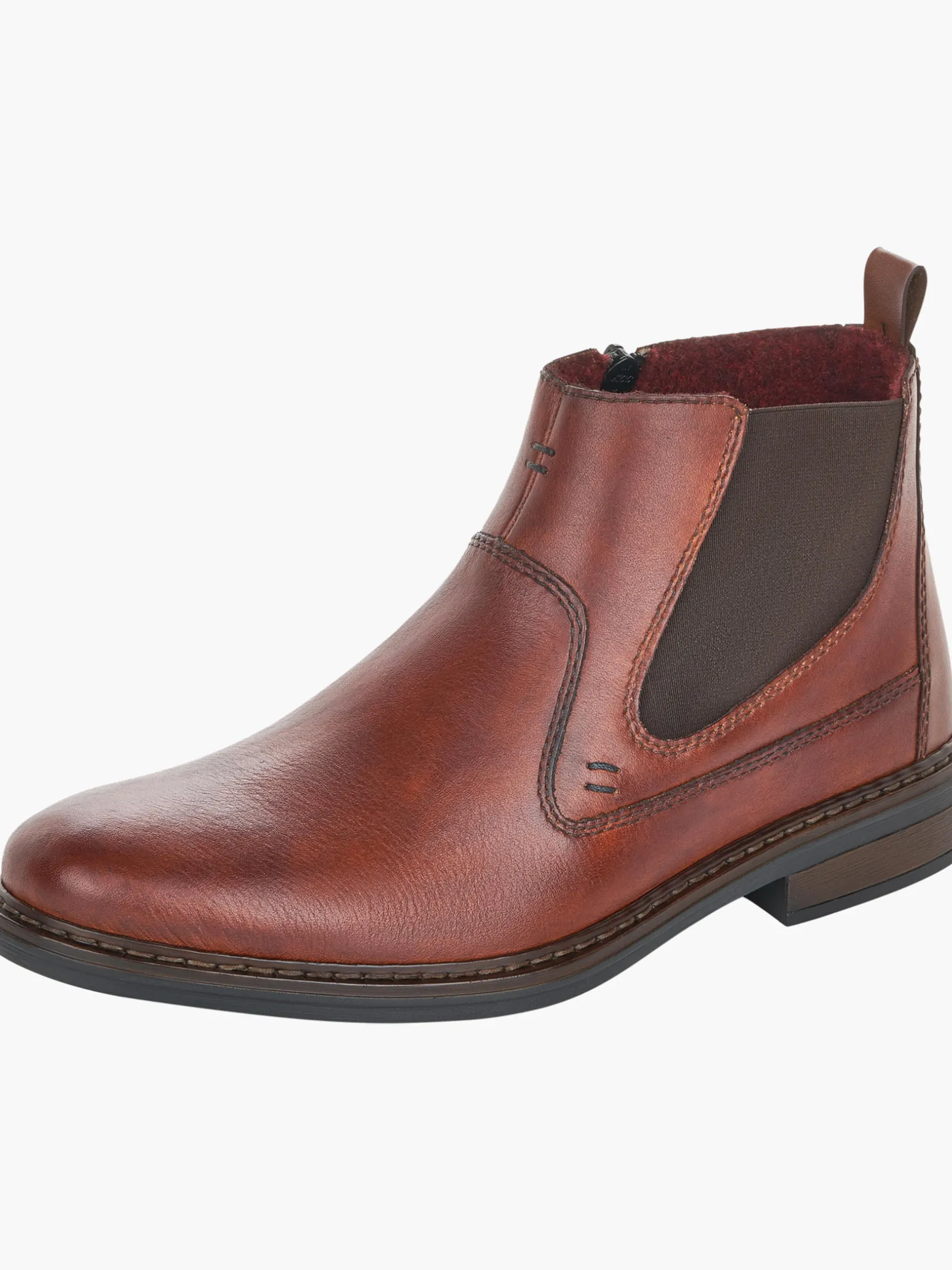 Alles in einem Schuh! Diese kaffeebraunen Chelsea Boots aus Glattleder von Rieker geben dem Fuß Freiraum und halten ihn dennoch sicher. Der Reißverschluss zusammen mit dem für Chelsea Boots typischen Elastikeinsatz ermöglicht ein einfaches An- und Ausziehen. Mit der schockabsorbierenden und leichten Sohle werden deine Füße bei jedem Schritt verwöhnt und die extra weiche Decksohle ist ein weiteres Plus. Das Modell ist in Extraweite H geschnitten. Einfach top!