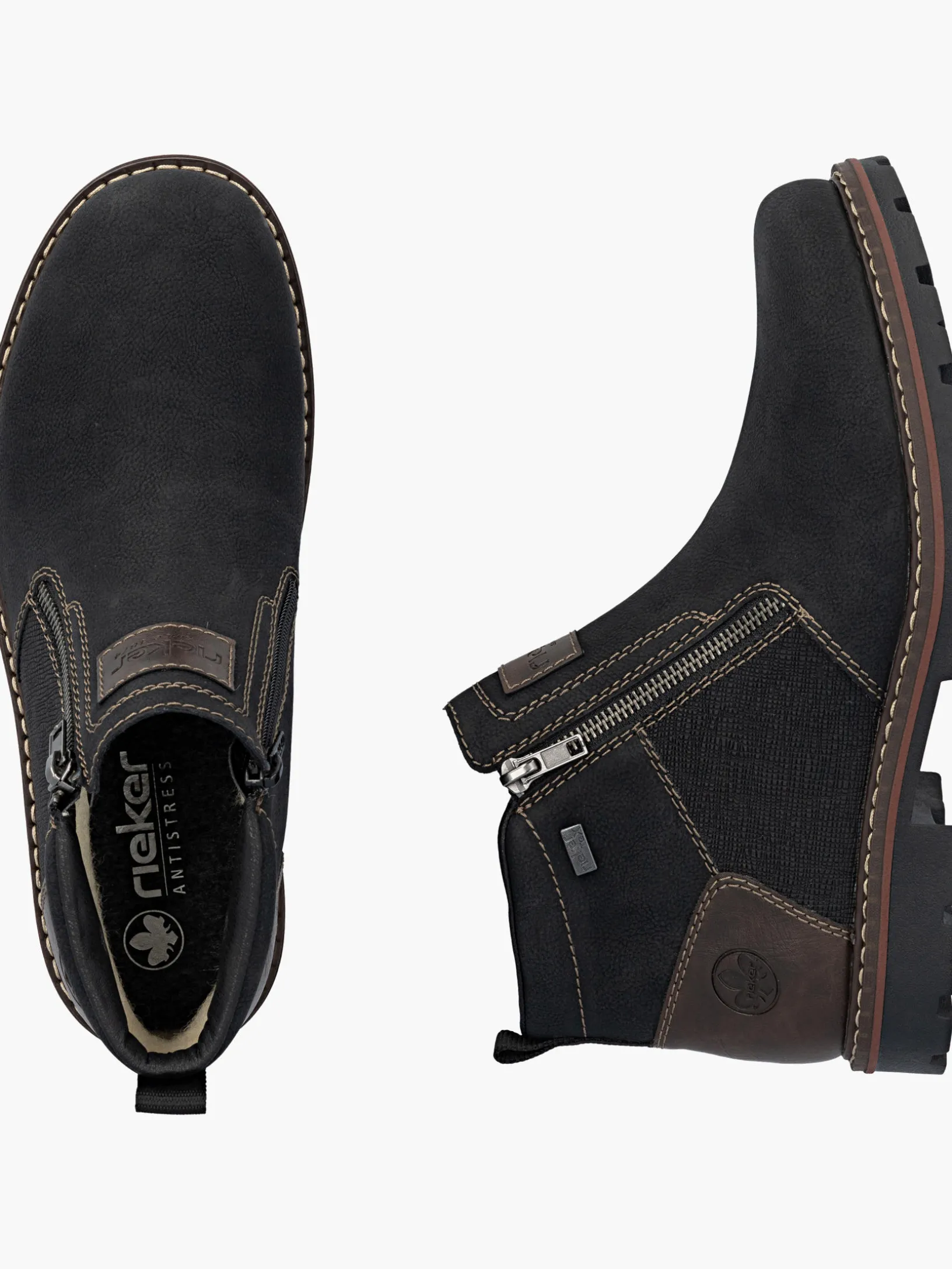 Achtung Trendalarm! Diese graphitschwarzen Kurzstiefel von Rieker garantieren ein himmlisches Tragegefühl. Durch den seitlichen Reißverschluss kann der Schuh ganz schnell angezogen werden. Ein wahrer Hingucker ist der braune geprägte Logo. Die robuste Profilsohle gibt Halt auf unterschiedlichen Wegen. Die Komfortweite G 1/2 bietet den Zehen genügend Bewegungsfreiheit. Die RiekerTEX-Technologie und das kuschelige und sehr warme Schurwoll-Futter garantieren tollen Tragekomfort bei Wind und Wetter. Unbeschwert durch die kalte Jahreszeit!