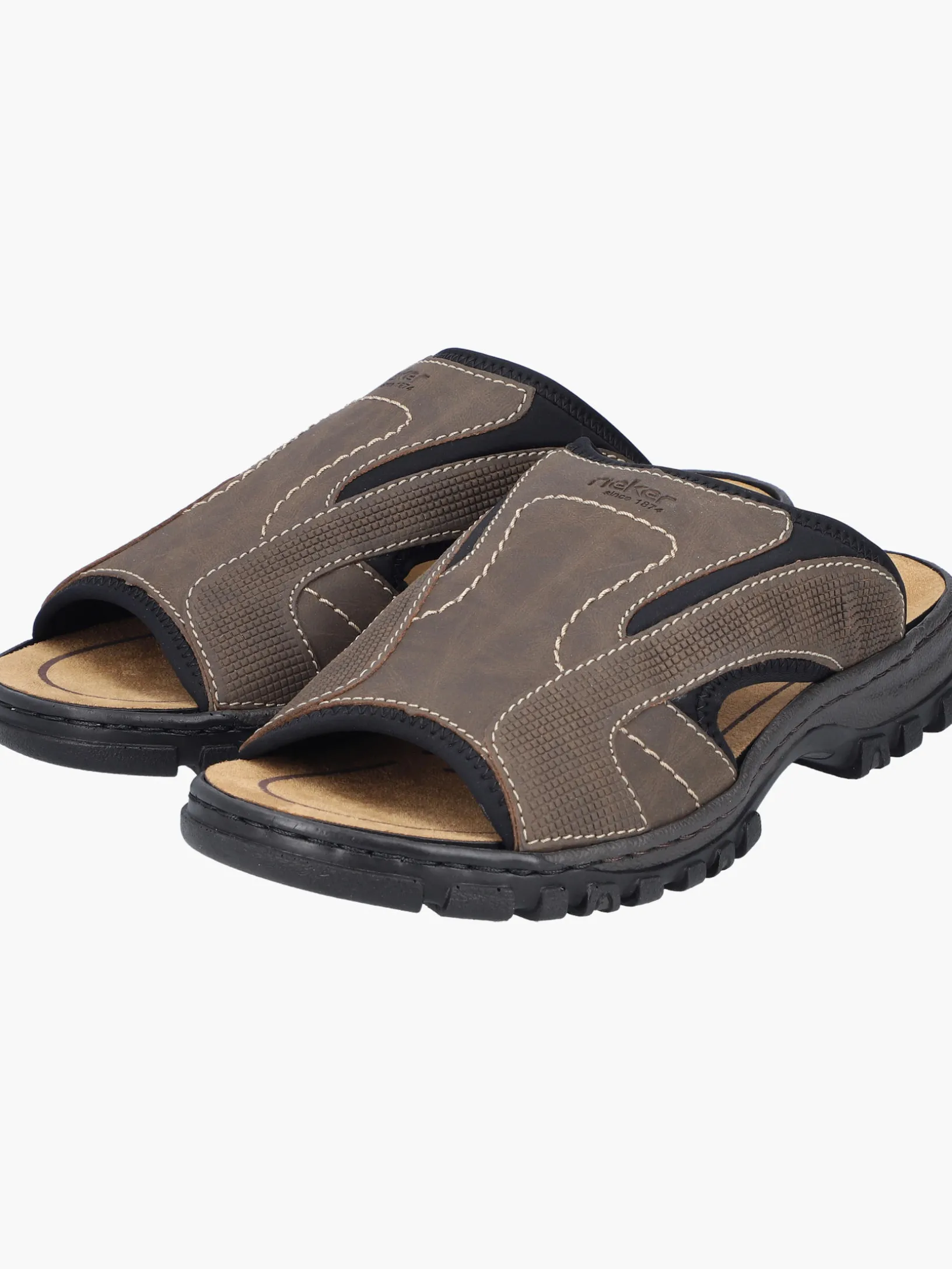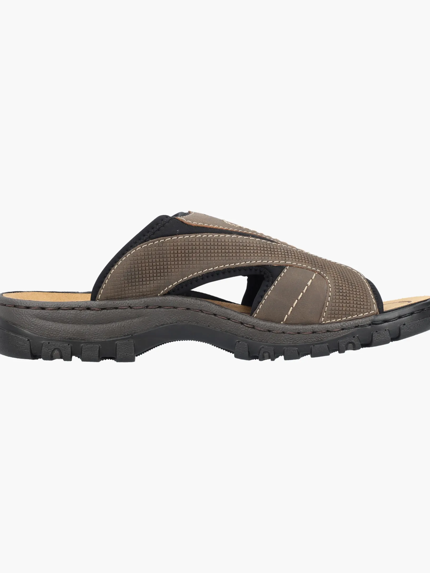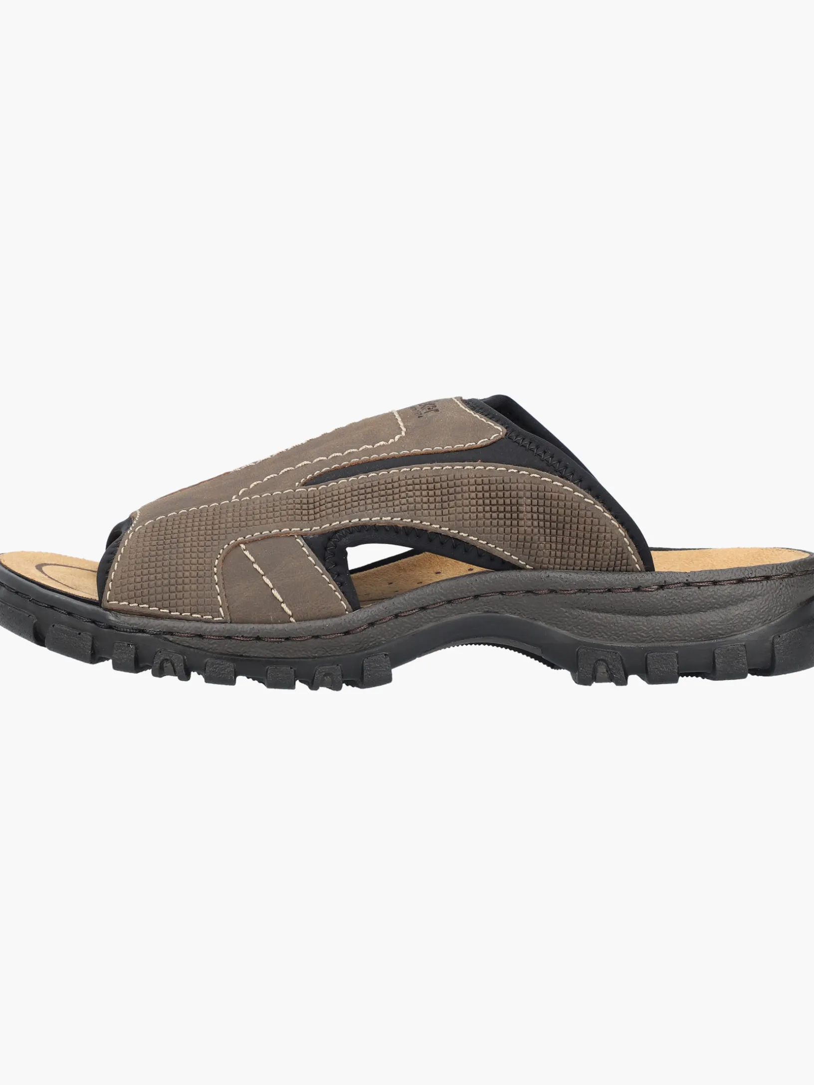Alles in einem Schuh! Diese Rieker Pantoletten für Herren in Braungrau bringen dich garantiert in Urlaubsstimmung. Der Einstieg wird durch einen Elastikeinsatz erleichtert. Die Ziernähte verleihen dem Schuh das gewisse Etwas. Der offene Schuh und die leichte und schockabsorbierende Sohle sorgen für anhaltendes Wohlgefühl. Die Komfortweite G bietet den Zehen genügend Bewegungsfreiheit. Trageluxus pur!