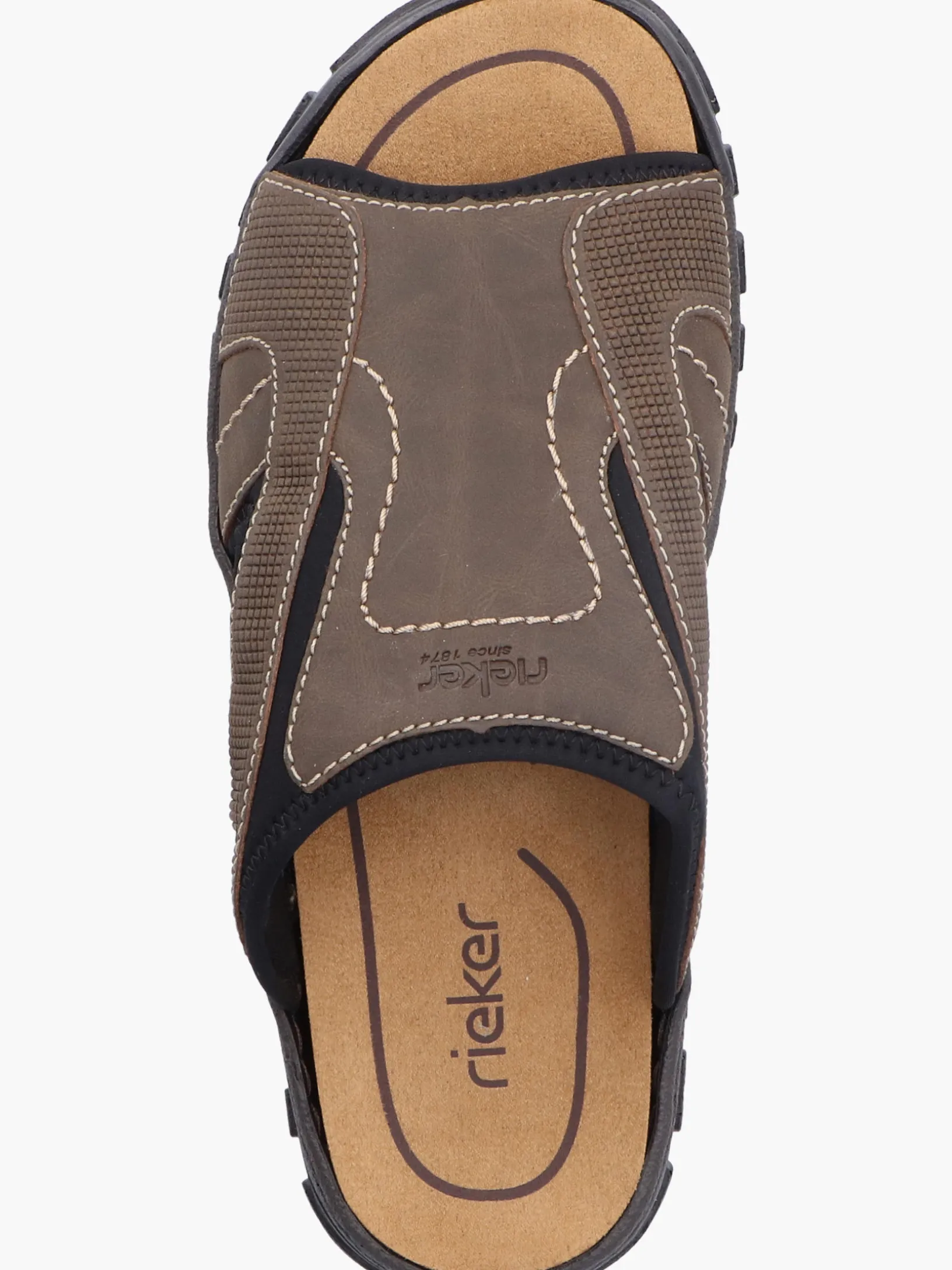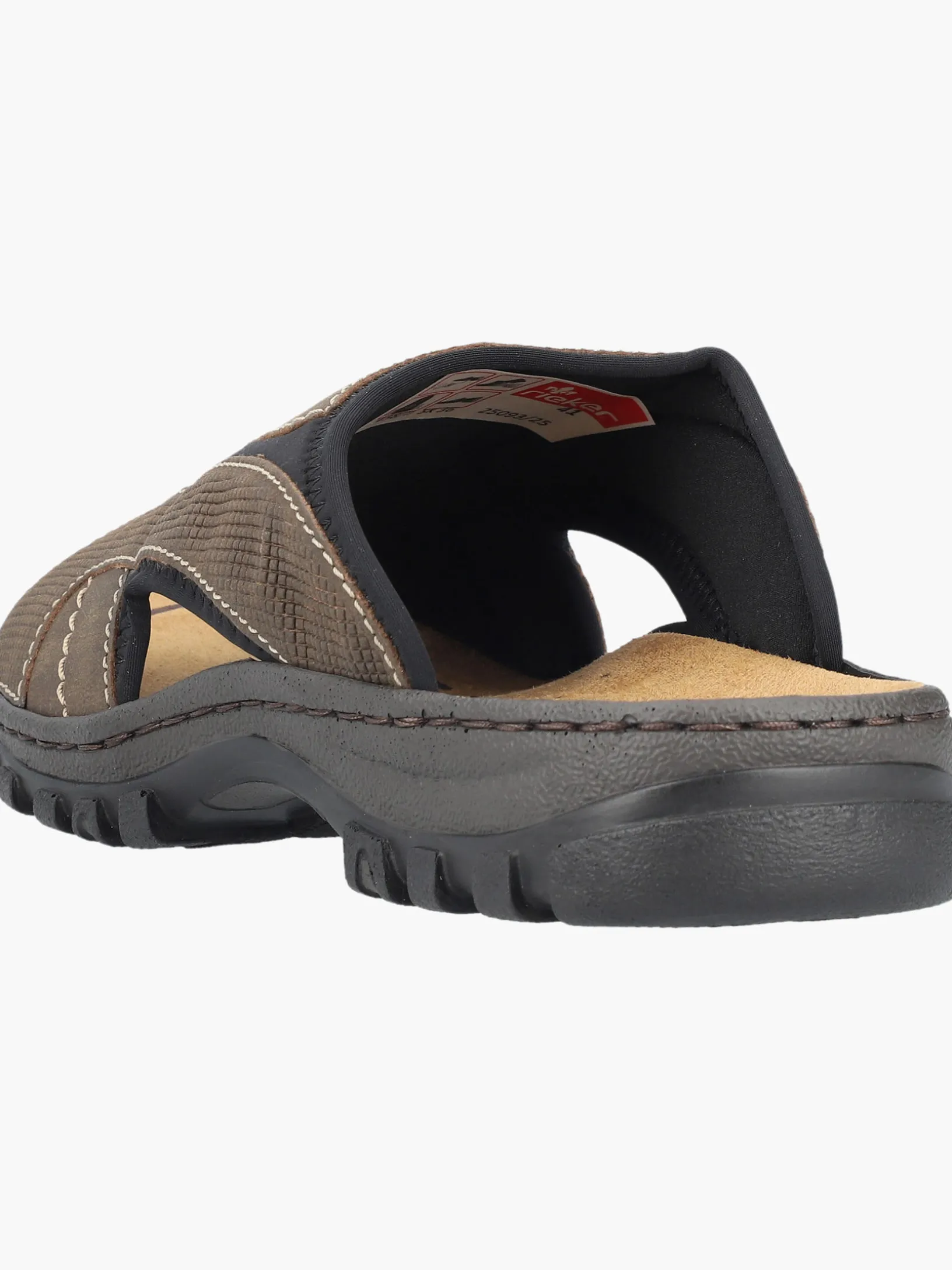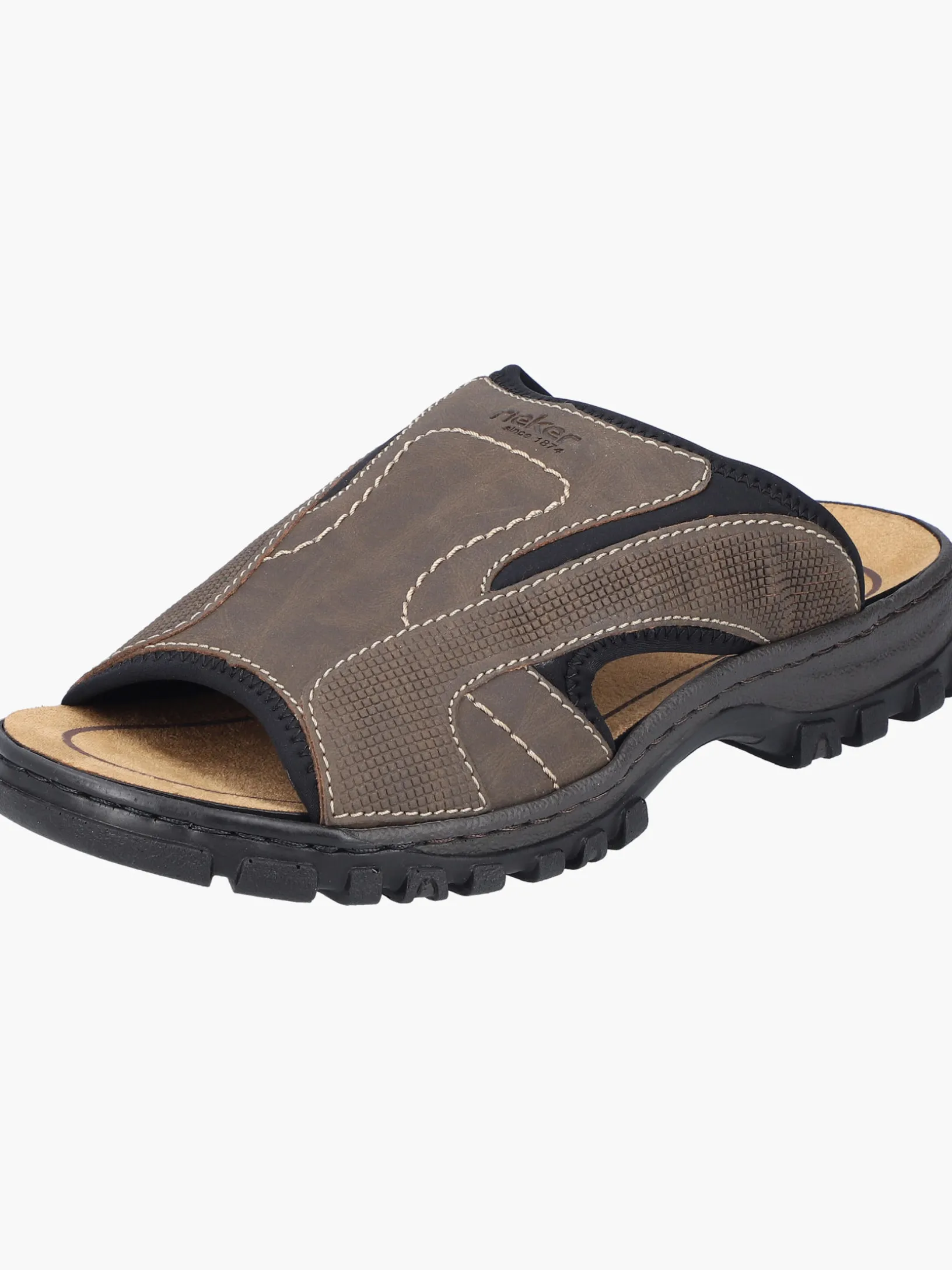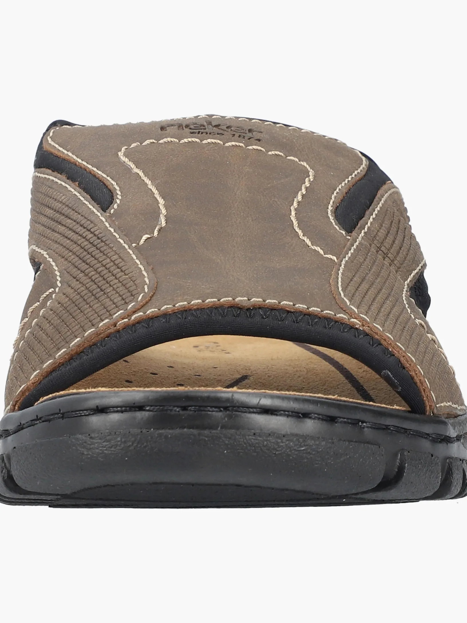 Alles in einem Schuh! Diese Rieker Pantoletten für Herren in Braungrau bringen dich garantiert in Urlaubsstimmung. Der Einstieg wird durch einen Elastikeinsatz erleichtert. Die Ziernähte verleihen dem Schuh das gewisse Etwas. Der offene Schuh und die leichte und schockabsorbierende Sohle sorgen für anhaltendes Wohlgefühl. Die Komfortweite G bietet den Zehen genügend Bewegungsfreiheit. Trageluxus pur!
