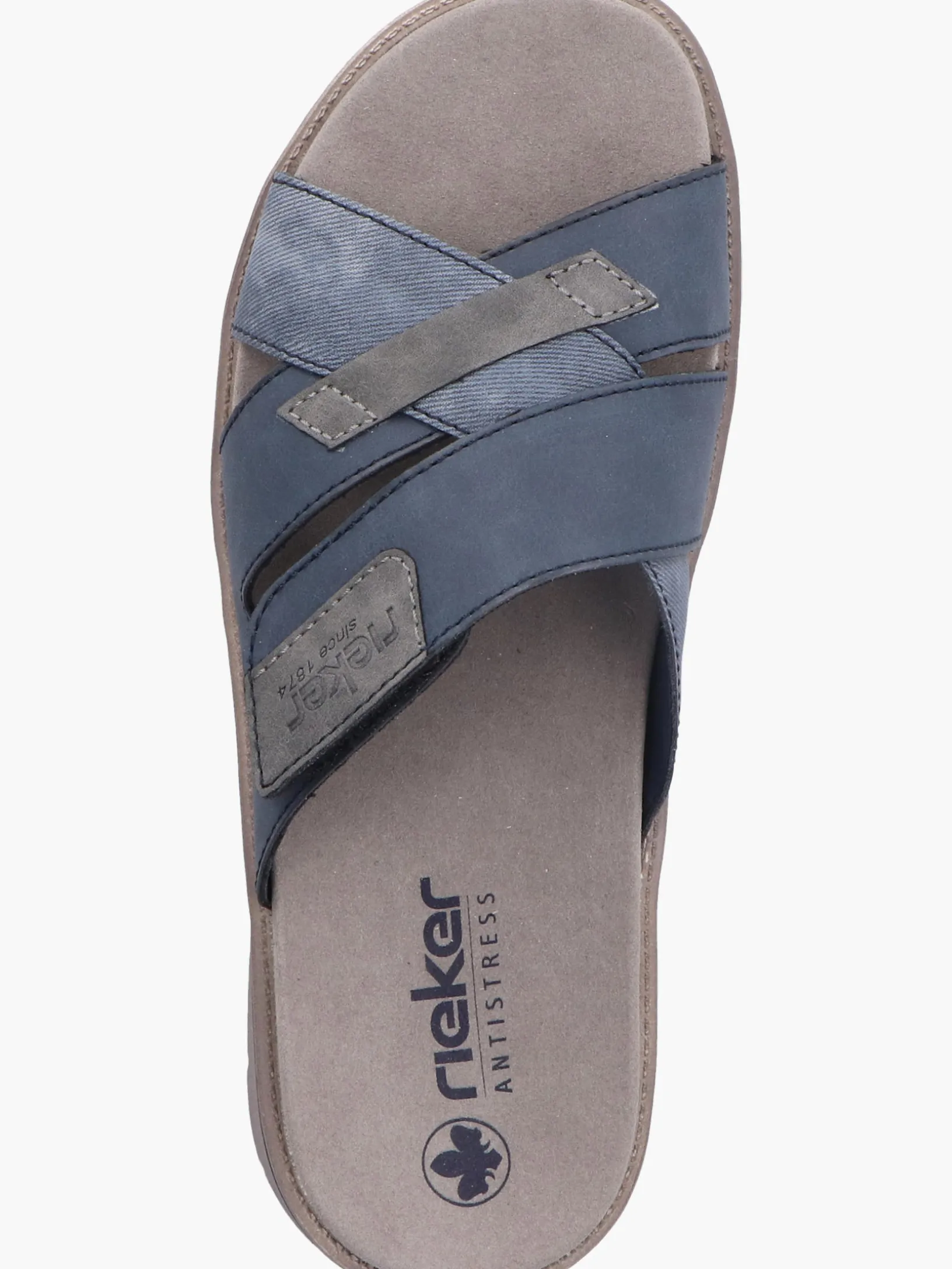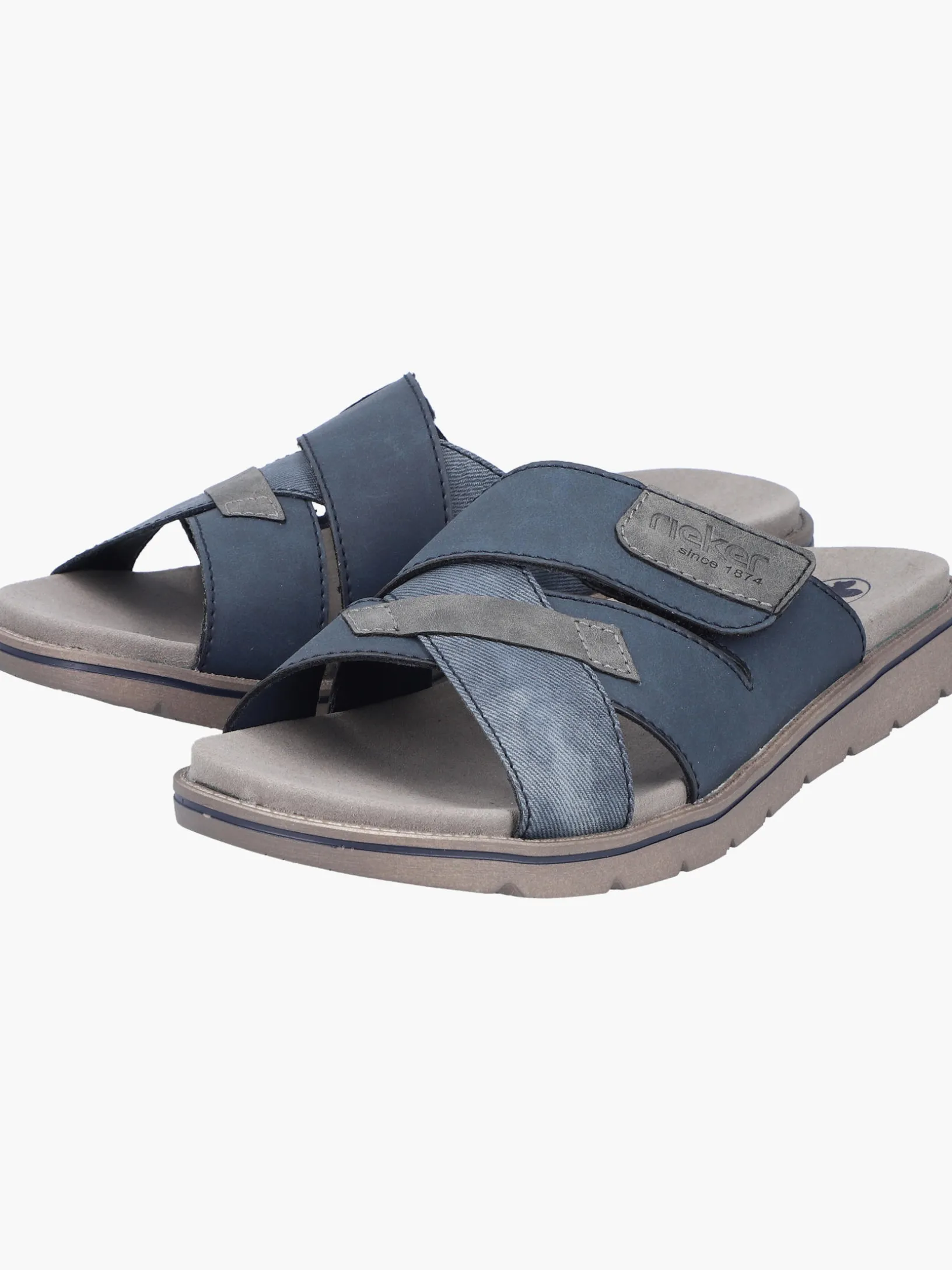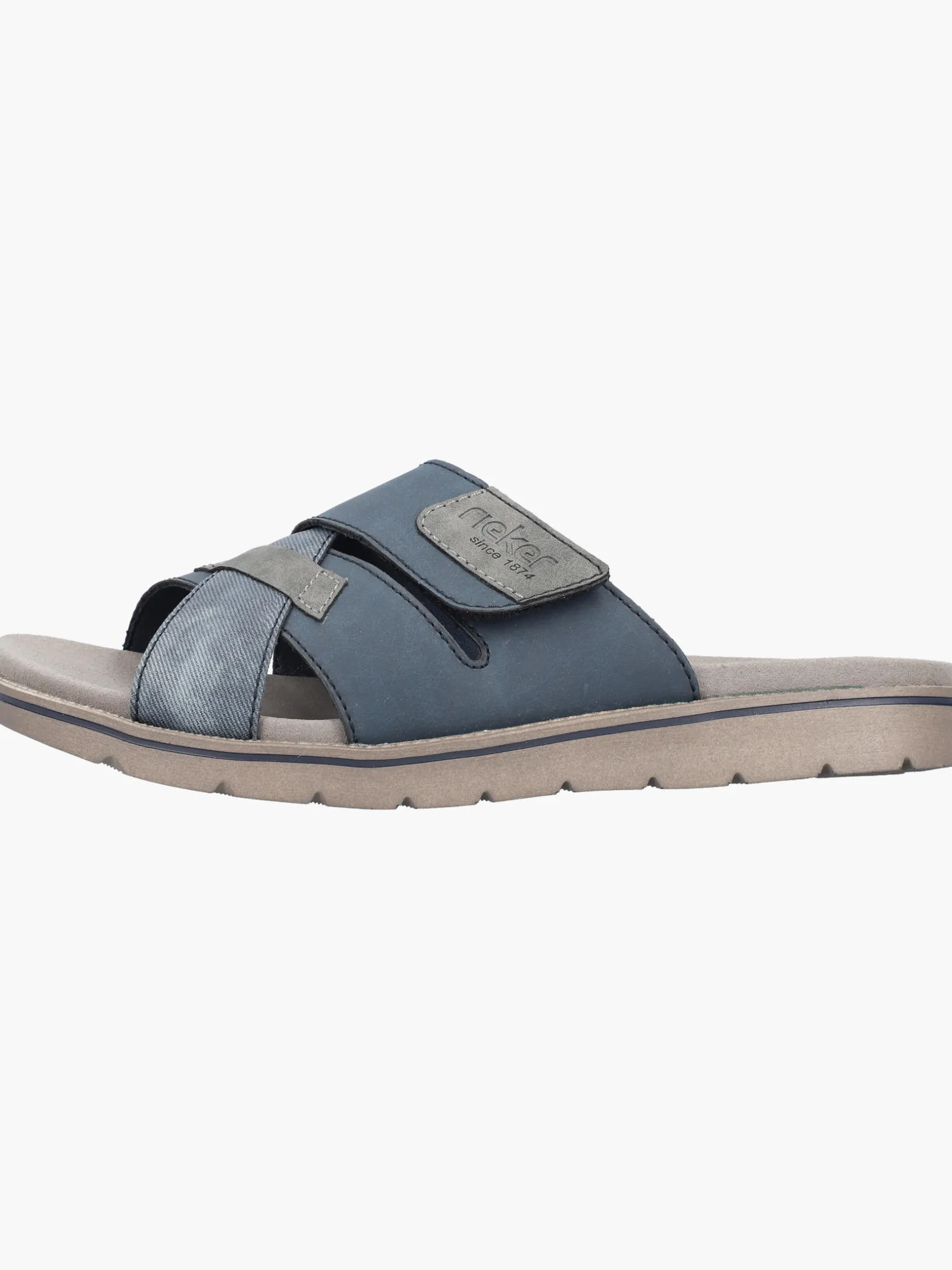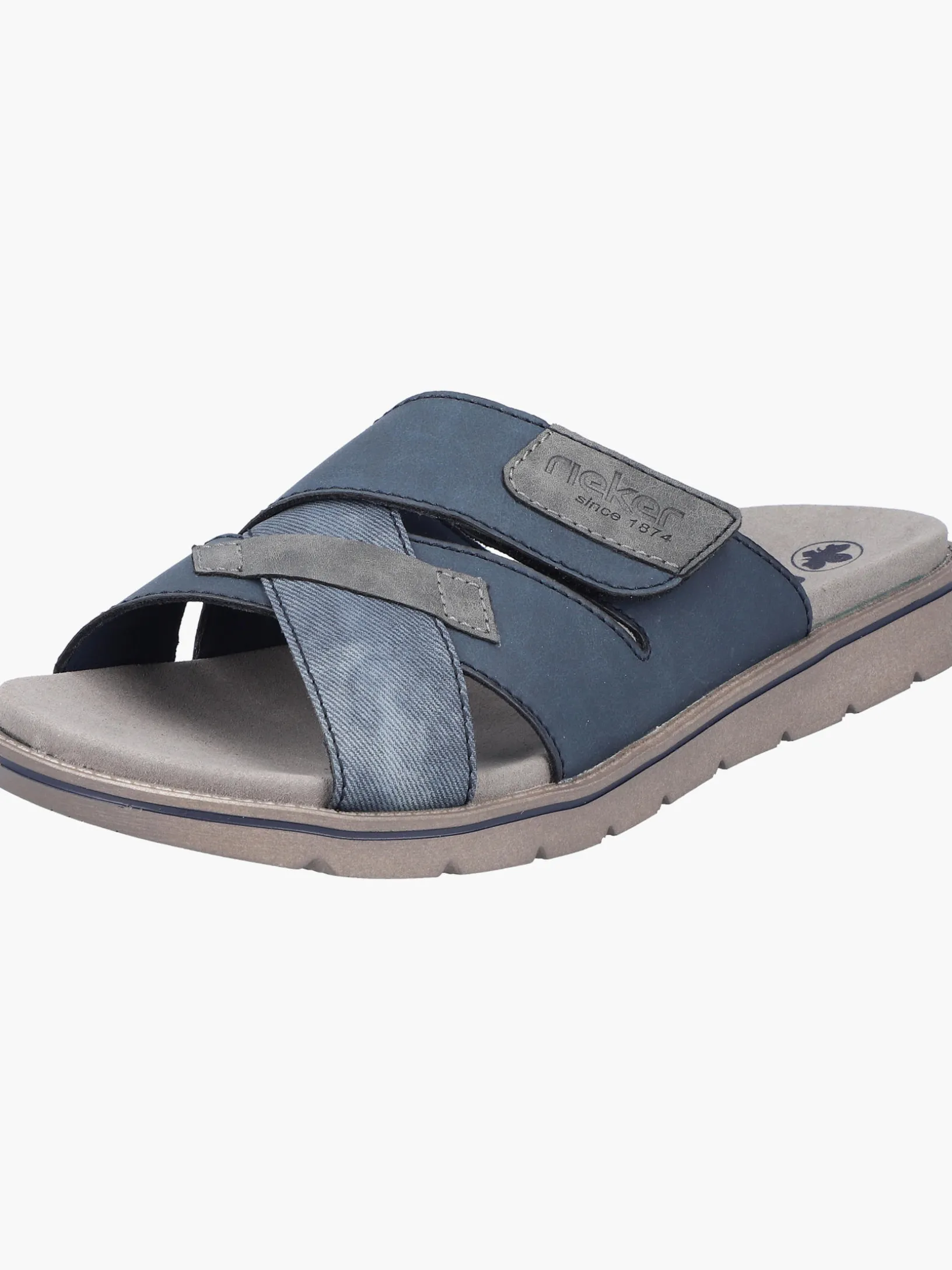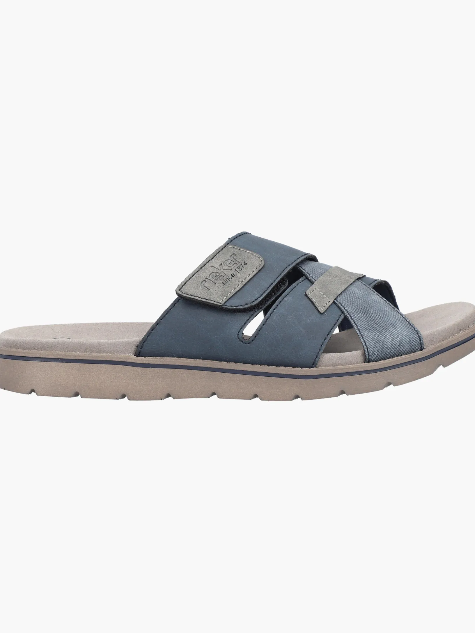 Immer einen Schritt voraus! Diese Rieker Pantoletten für Herren in Schieferblau lassen deine Füße so richtig den Sommer spüren. Die Pantoletten sind dank einem Klettverschluss in Nullkommanichts angezogen. Ein schöner Hingucker ist das verwaschene Muster. Mit der sehr leichten und schockabsorbierenden Sohle wird das Laufen noch angenehmer. Außerdem ist deinen Füßen durch die Komfortweite G 1/2 mehr Bewegungsfreiraum im Vorfußbereich geboten. Der Schuh ist mit einem leichten, atmungsaktiven Futter ausgestattet, das zudem Feuchtigkeit absorbiert und damit schwitzende Füße bestens versorgt. Was will man mehr?