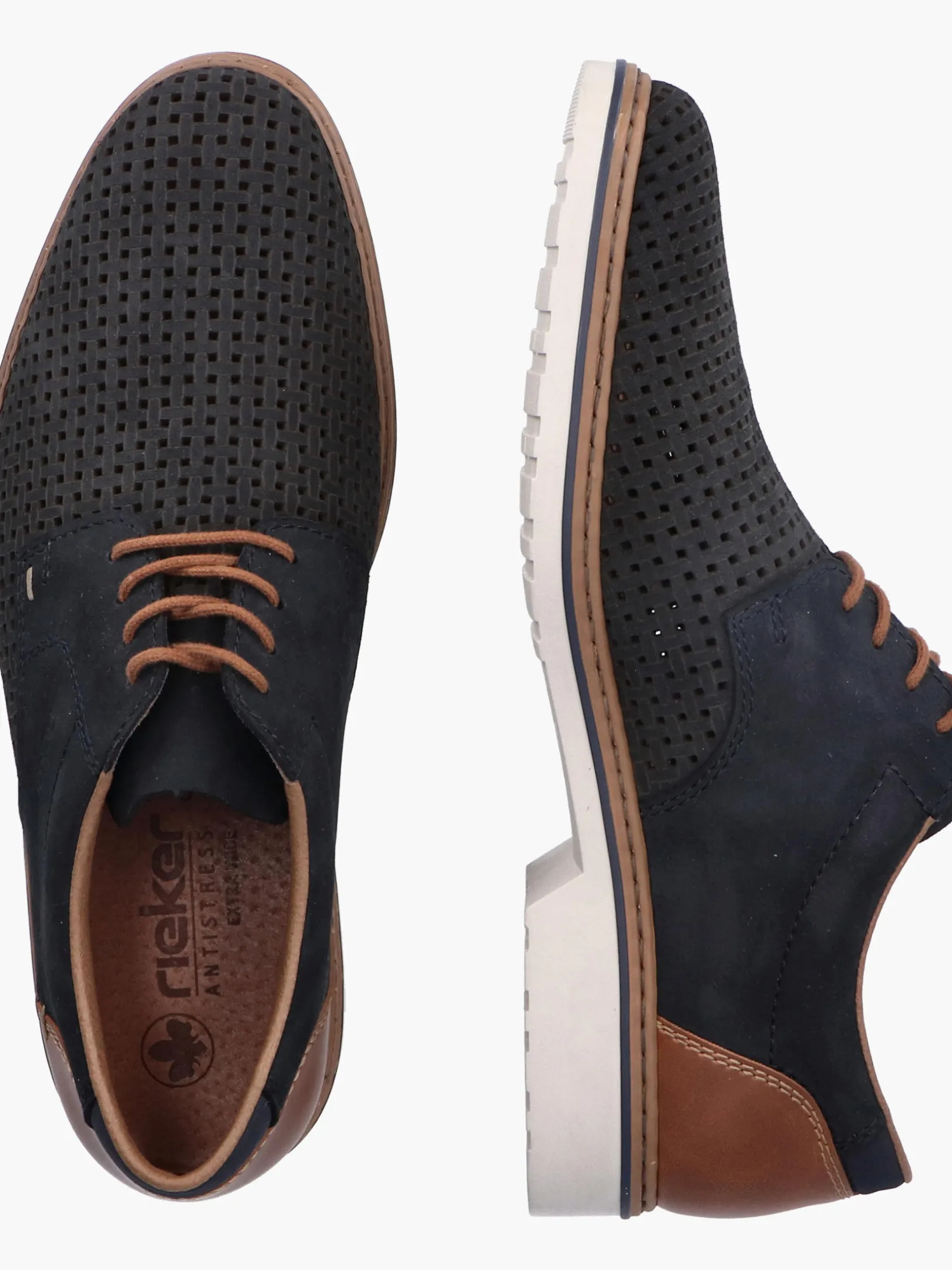 Stilvoll unterwegs! Mit diesen stahlblauen Rieker Schnürschuhen für Herren bist du cool und lässig auf Achse. Außerdem werden guter Halt und eine optimale Passform durch die Schnürung garantiert. Der durchbrochene Stil setzt das Design modisch in Szene. Die schockabsorbierende und leichte Sohle bietet anhaltendes Wohlgefühl ‒ auch an langen Tagen. Darüber hinaus ist die Decksohle extra weich. Durch die Extraweite H haben die Füße mehr Platz im Schuh. Der Schuh ist mit einem leichten, atmungsaktiven Futter ausgestattet, das zudem Feuchtigkeit absorbiert und damit schwitzende Füße bestens versorgt. Modisches Wohlgefühl im Stil von Rieker!
