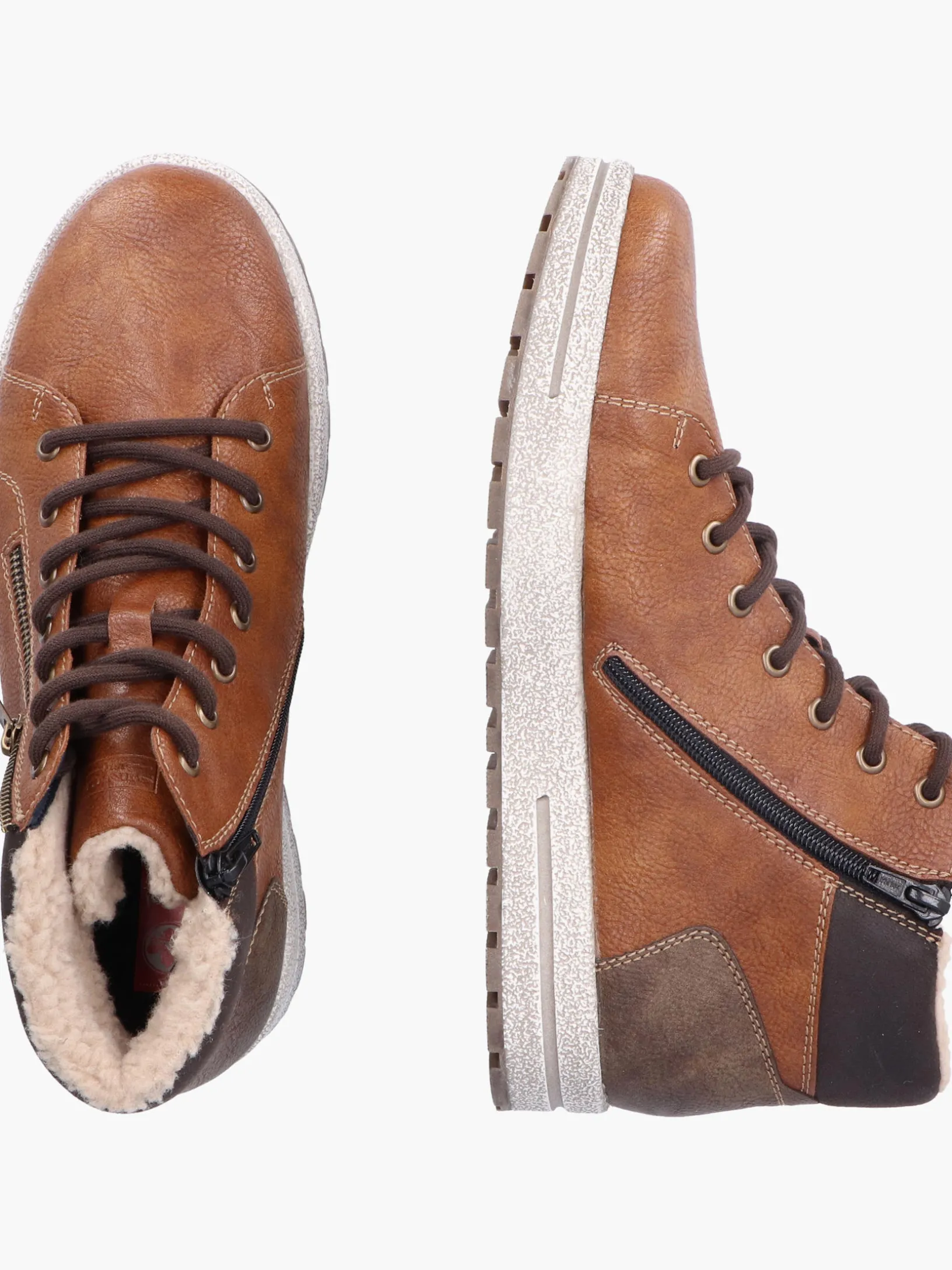 Mehr Bewegungsfreiheit für die Füße! Diese karamellbraunen Schnürstiefel von Rieker überzeugen mit echtem Komfort für die Füße. Die clevere Kombination aus Schnürung und Reißverschluss garantiert eine ideale Passform und optimalen Halt. Der dekorative Reißverschluss an der Seite setzt einen frischen Akzent. Die Profilsohle ist robust und sorgt jederzeit für guten Grip. Ein weiteres Plus ist die extra weiche Decksohle. Durch die Komfortweite G 1/2 ist dir mehr Freiraum im Schuh geboten. Die RiekerTEX-Technologie und das Warmfutter garantieren zudem tollen Tragekomfort bei jedem Wetter. Let´s rock the cold days!