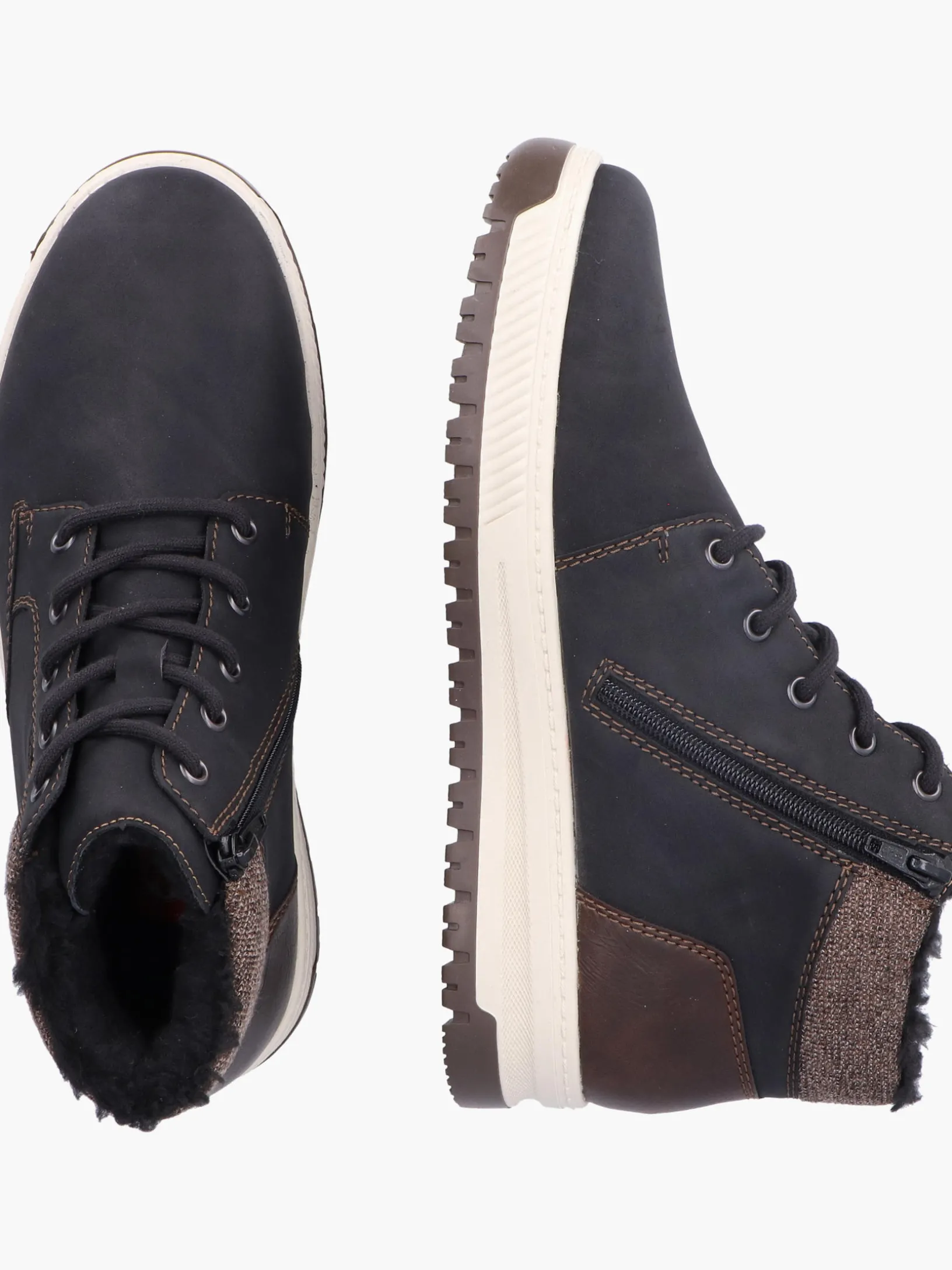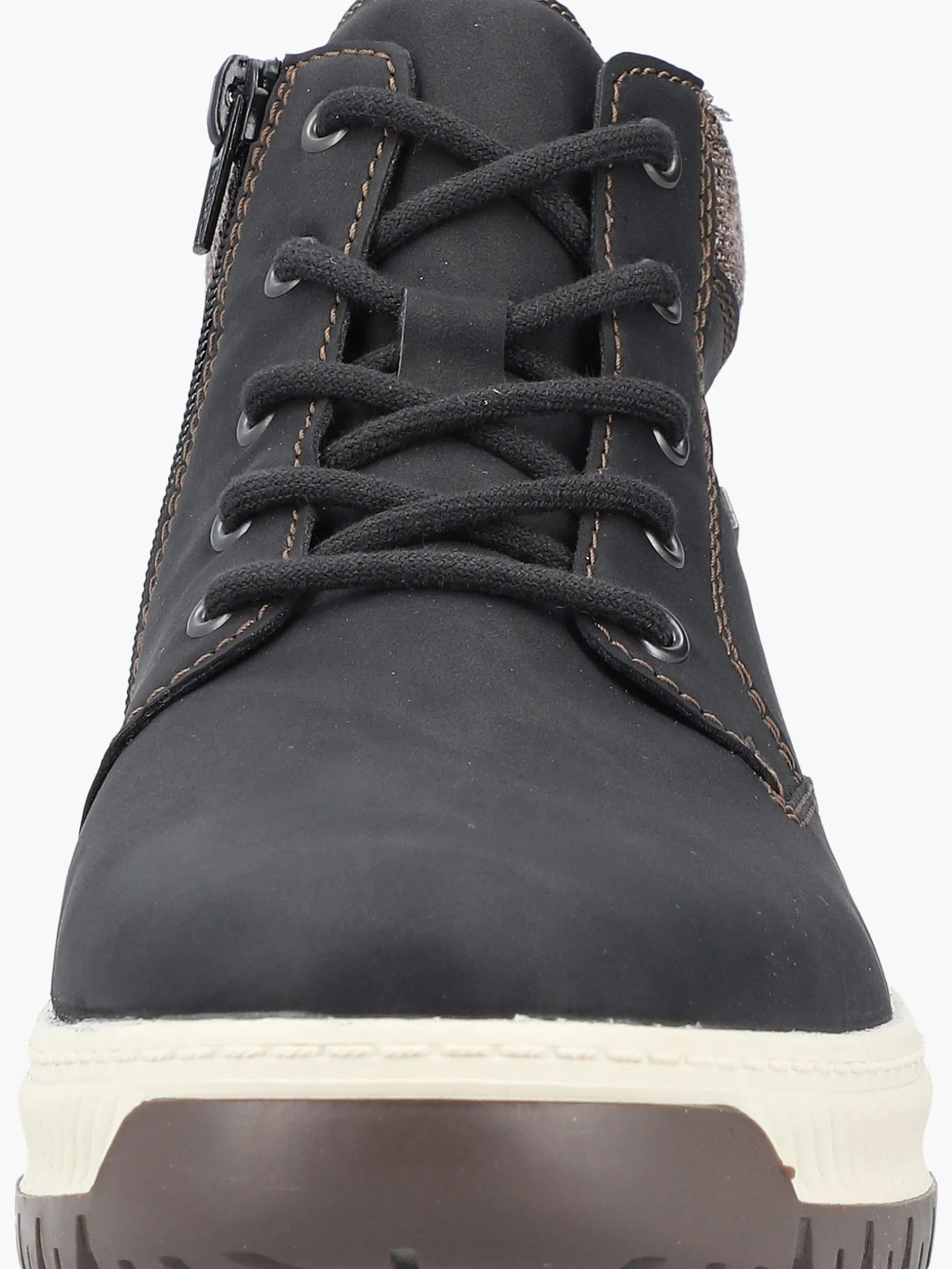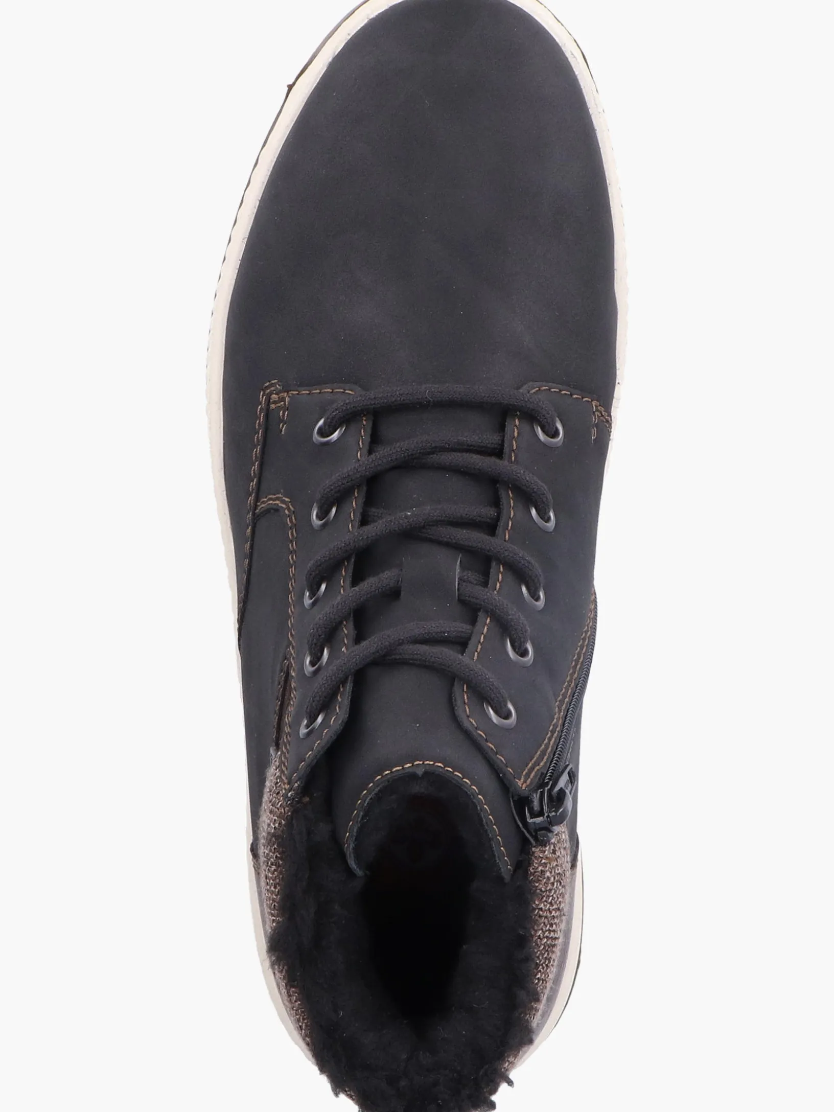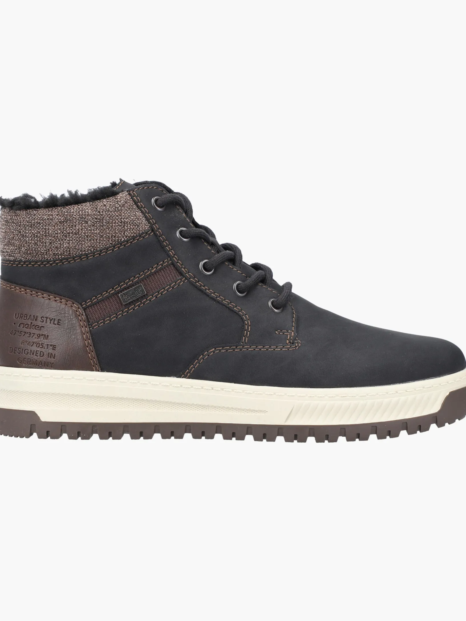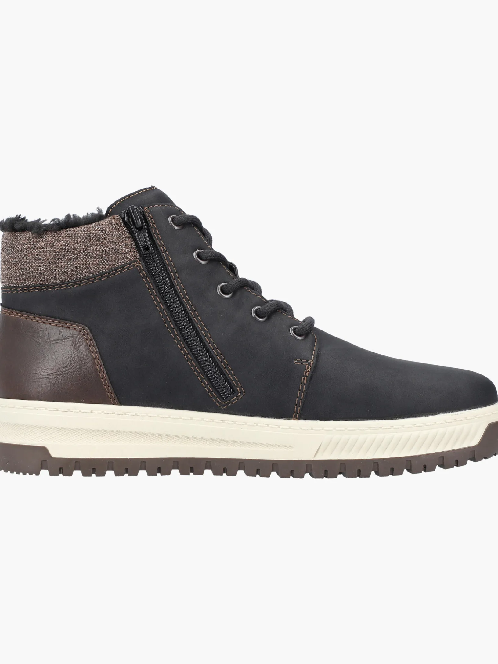 All black everything! Ohne diese stylischen asphaltschwarzen Schnürstiefel von Rieker würde die kalte Saison nur halb so viel Spaß machen. Die Schnürung wird durch einen Reißverschluss ergänzt und garantiert somit optimalen Halt und eine perfekte Passform. Die robuste Profilsohle gibt optimalen Halt auf Schritt und Tritt. Ein weiteres Plus ist die extra weiche Decksohle. Durch die Extraweite H ist den Zehen mehr Bewegungsfreiheit geboten. Das besonders kuschelige Warmfutter hält die Füße den ganzen Tag lang warm und die RiekerTEX-Technologie hält sie trocken! Wohlge(h)fühl inklusive!