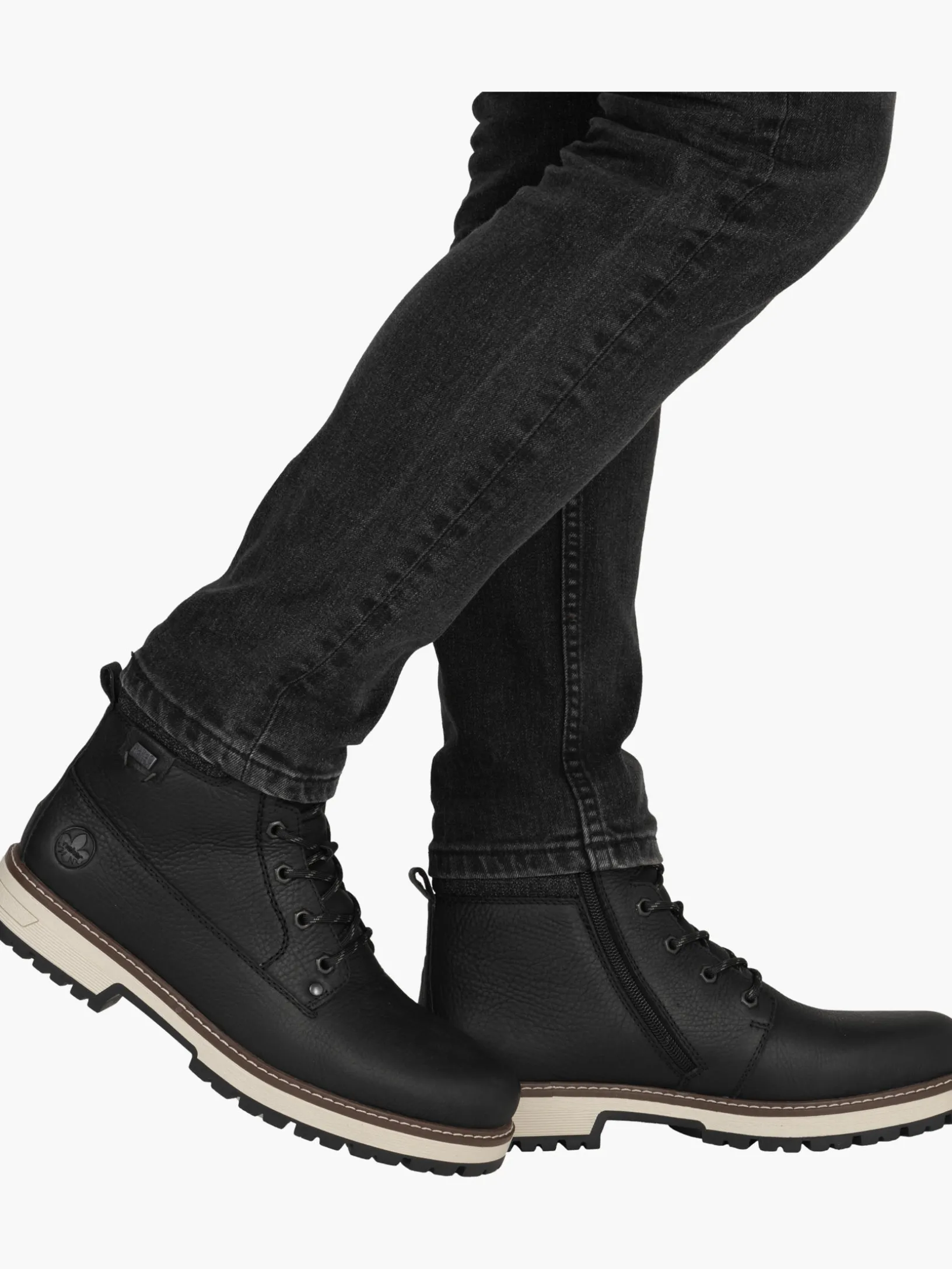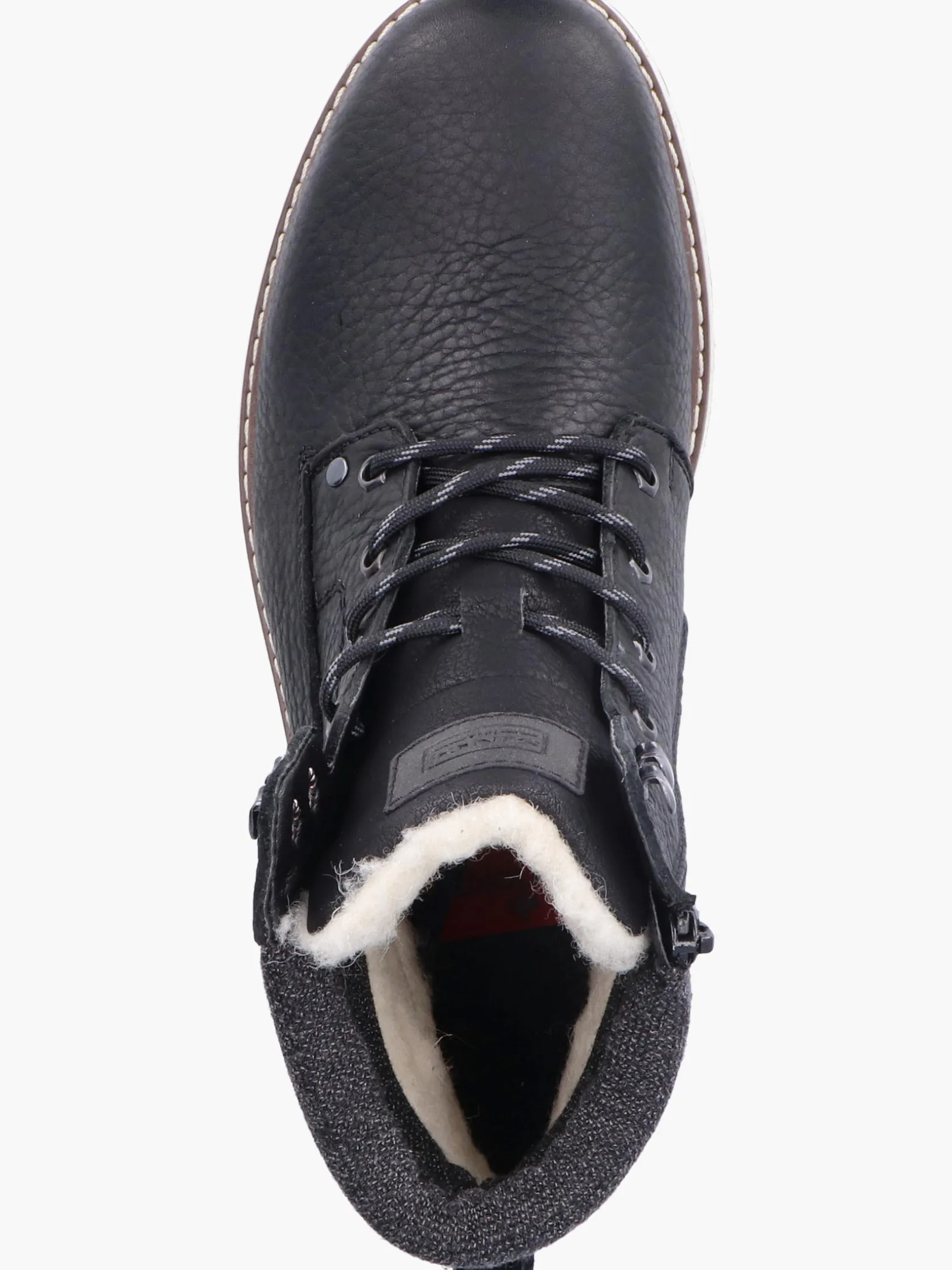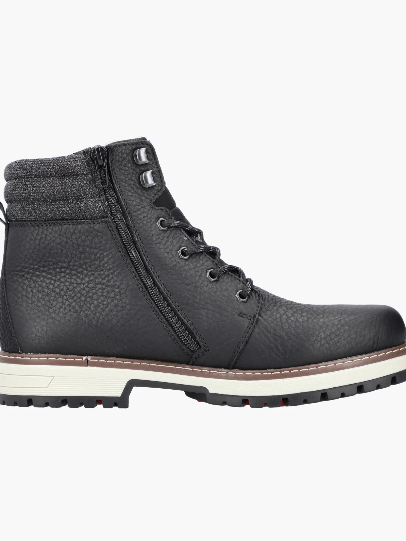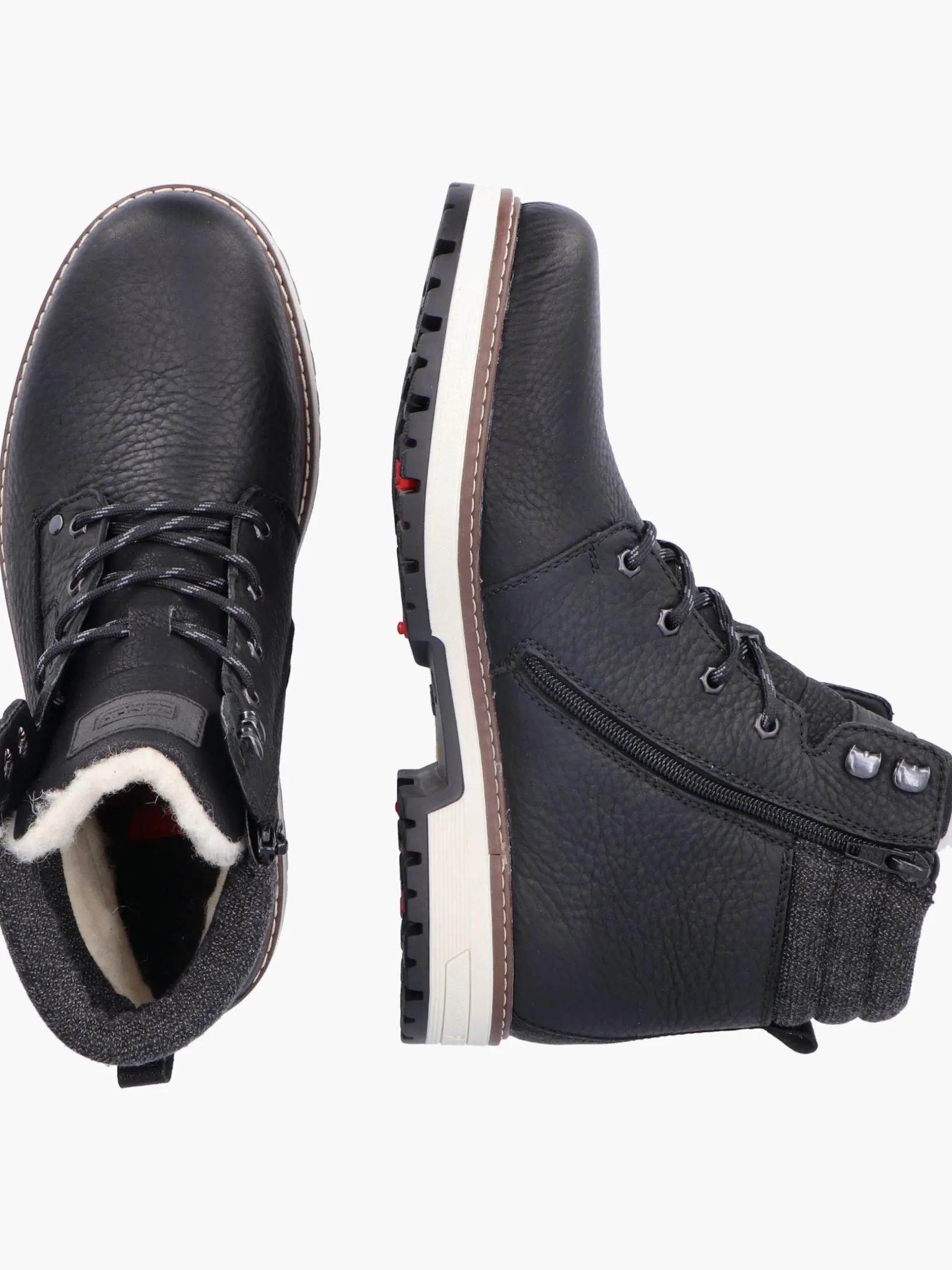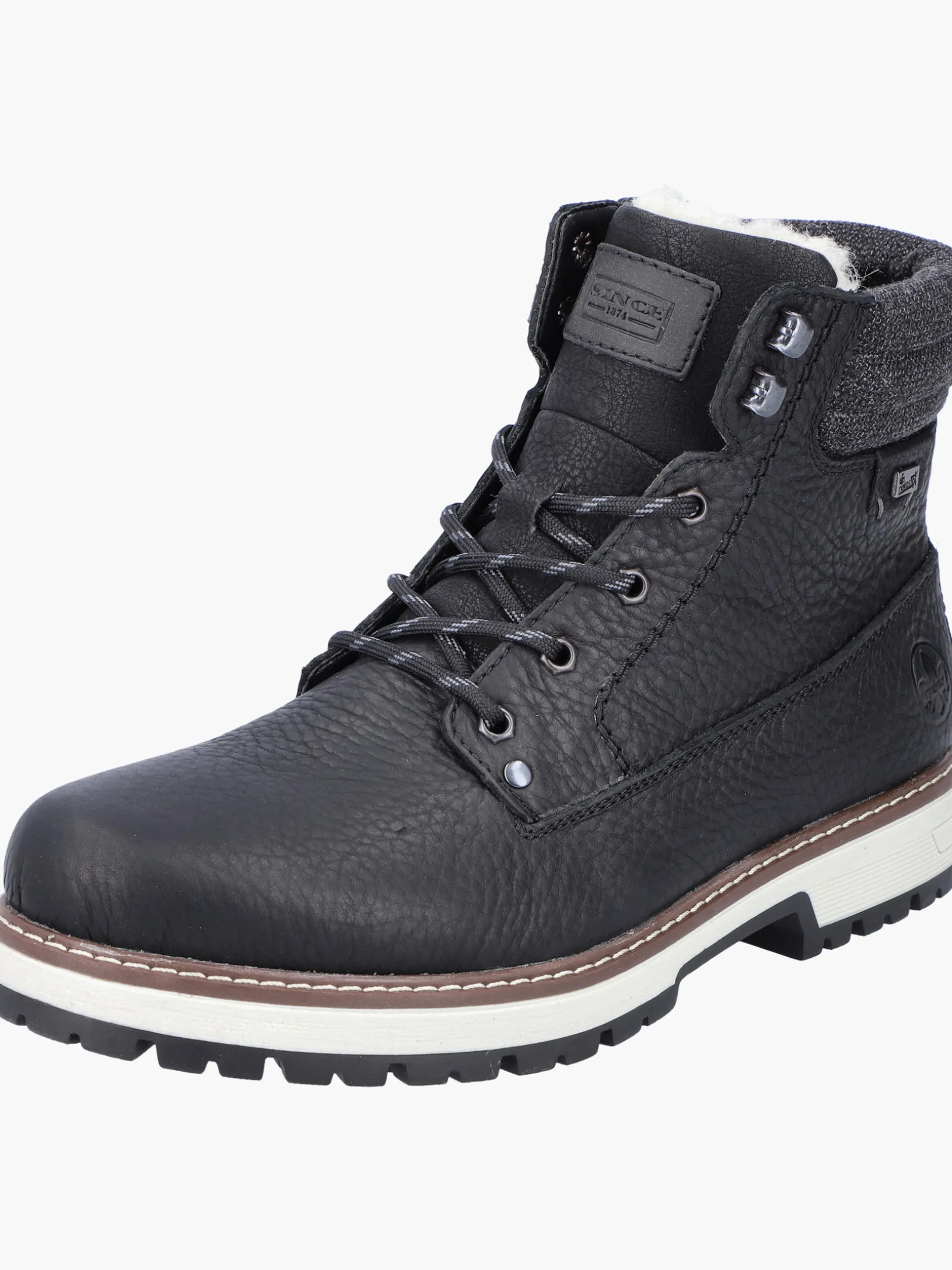 Stilsicher durch die Saison! Diese tiefschwarzen Schnürstiefel aus Glattleder von Rieker vereinen cooles Design mit bestem Komfort und hoher Funktionalität. Neben der Schnürung ist das Modell auch mit einem Reißverschluss versehen und sorgt so für idealen Halt. Der Schuh verfügt über eine robuste Profilsohle, die mit gutem Grip für ein sicheres Auftreten überzeugt. Die Schnürstiefel punkten auch noch mit einer herausnehmbaren Einlegesohle. Dank der Komfortweite G 1/2 ist genügend Platz im Vorfußbereich geboten. Die wasserabweisende RiekerTEX-Membran schützt vor nassen Füßen und die ausklappbaren Spikes sorgen für zusätzlichen Halt bei Eisglätte. Kuschelige und sehr warme Schurwolle sorgt für Kälteschutz. Da haben die Minustemperaturen schlechte Karten!