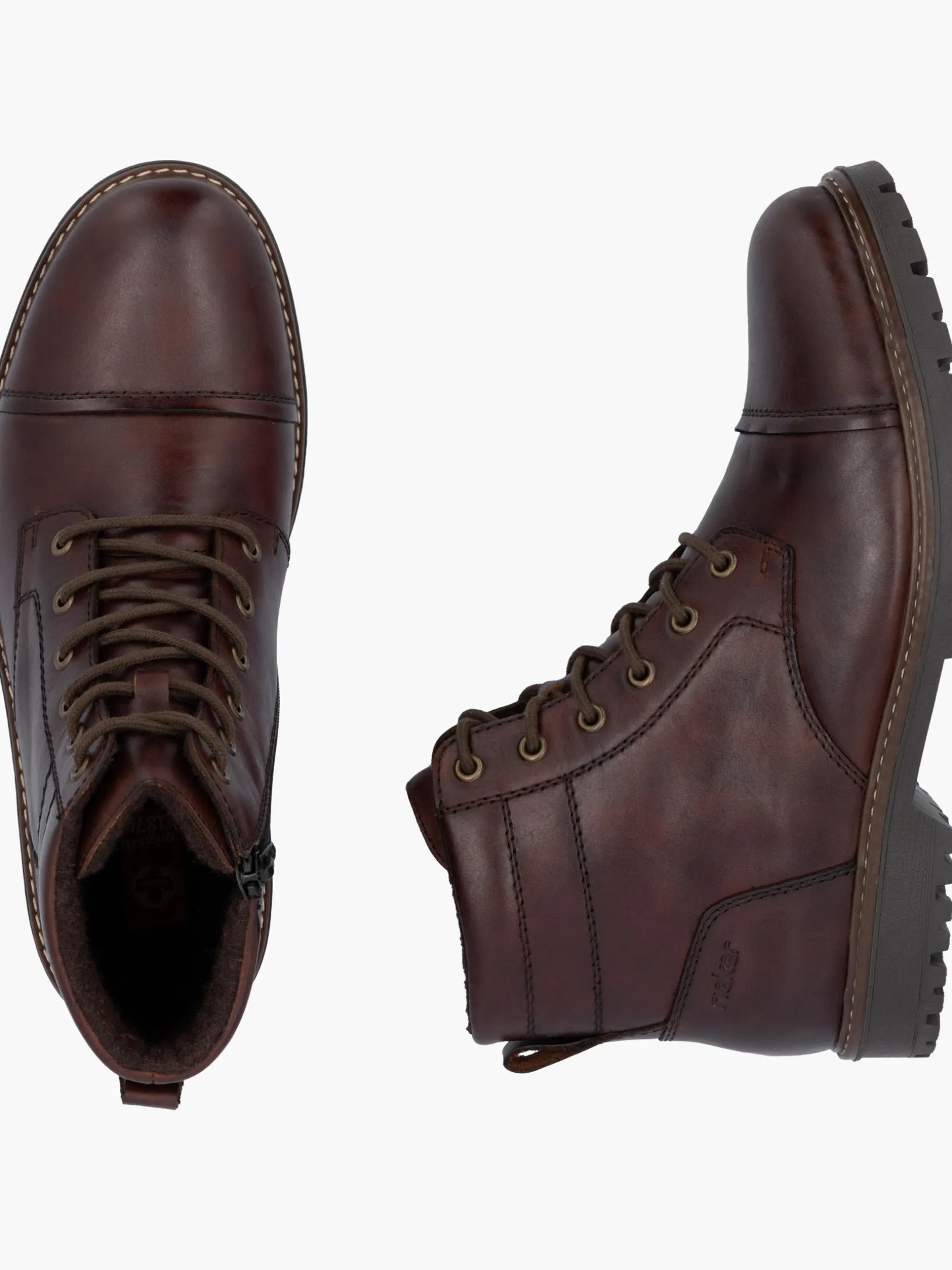 Fashion-Lovers aufgepasst: Die Rieker Must-Haves sind da! Diese nussbraunen Schnürstiefel aus Glattleder überzeugen mit einem klassischen Design und hohem Komfort. Die Schnürung wird durch einen Reißverschluss ergänzt und garantiert somit bestmöglichen Halt und eine perfekte Passform. Durch die robuste Profilsohle ist jeder Schritt eine sichere Angelegenheit und die Decksohle ist extra weich. Das Modell sichert dem Fuß zusätzlichen Bewegungsfreiraum, denn es ist in Komfortweite G 1/2 geschnitten. Diese Schuhe sind die perfekte Symbiose aus Stil und Komfort!