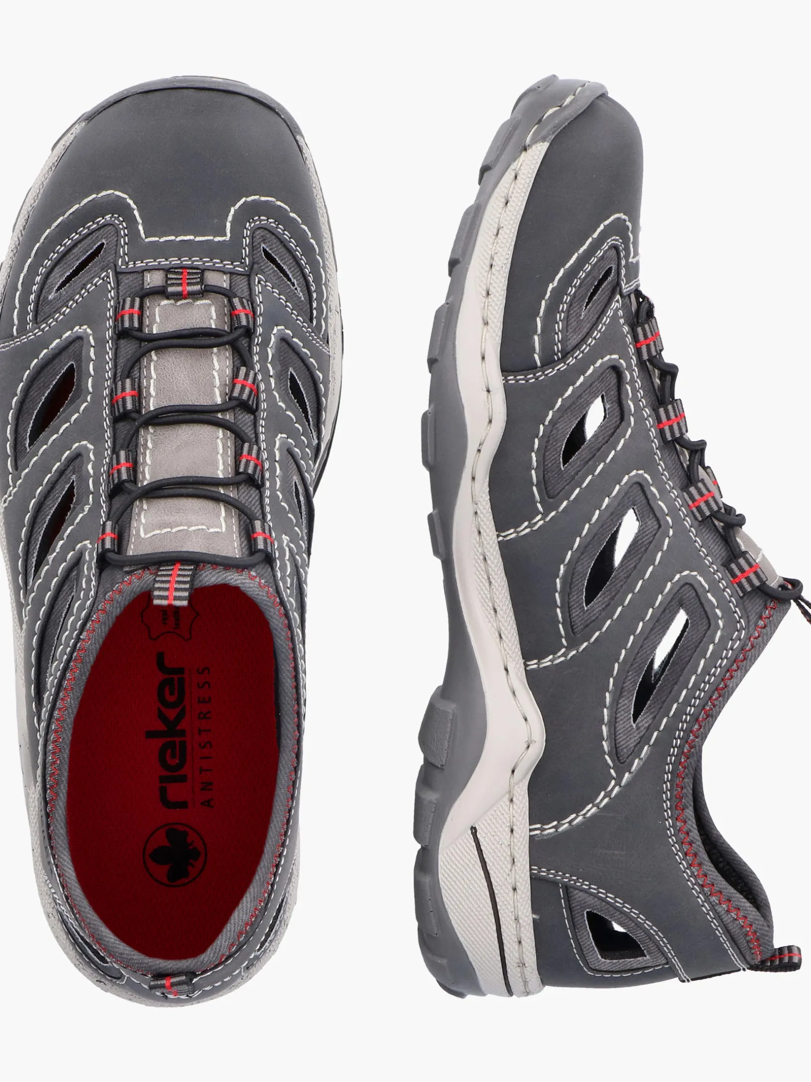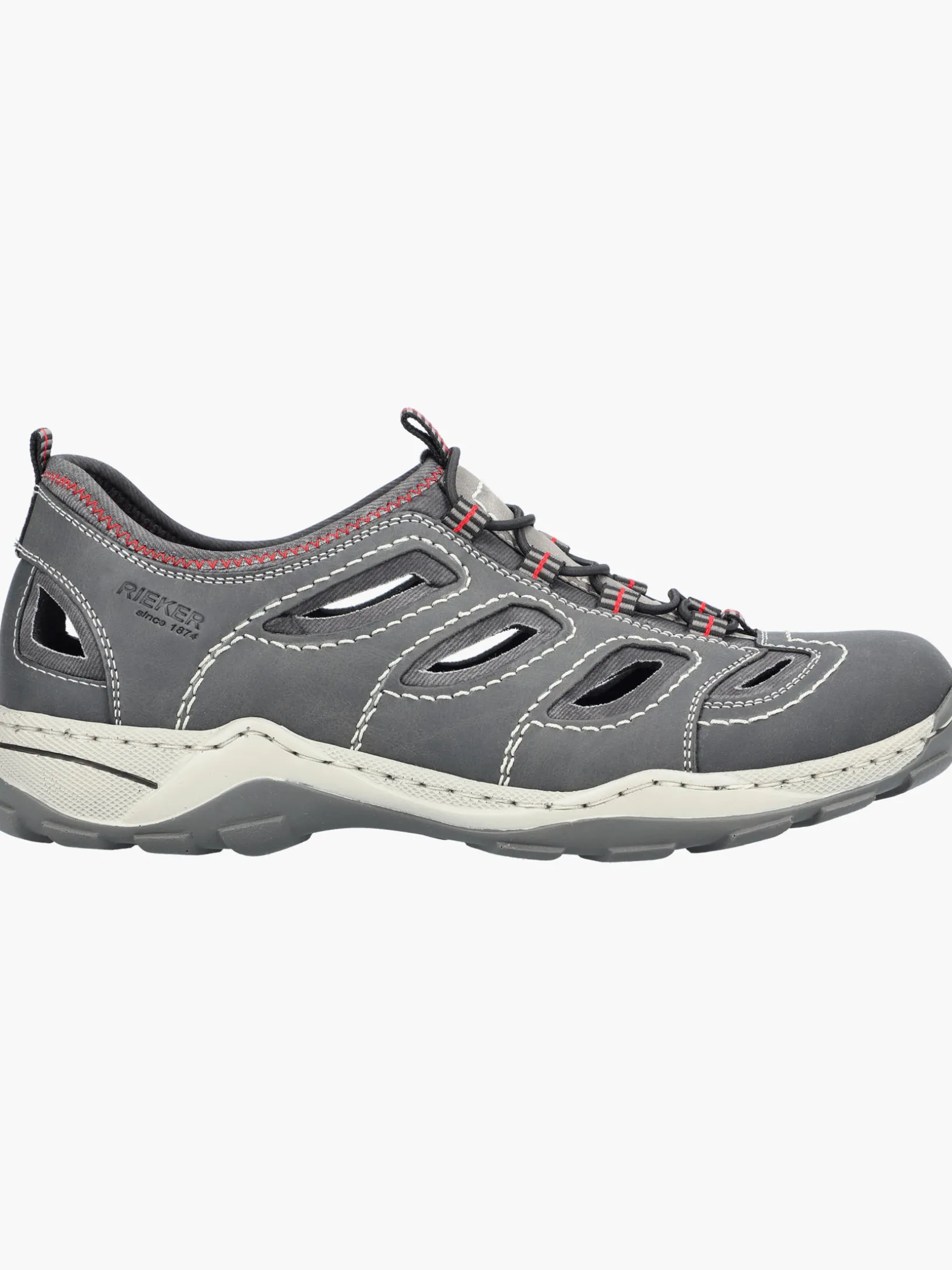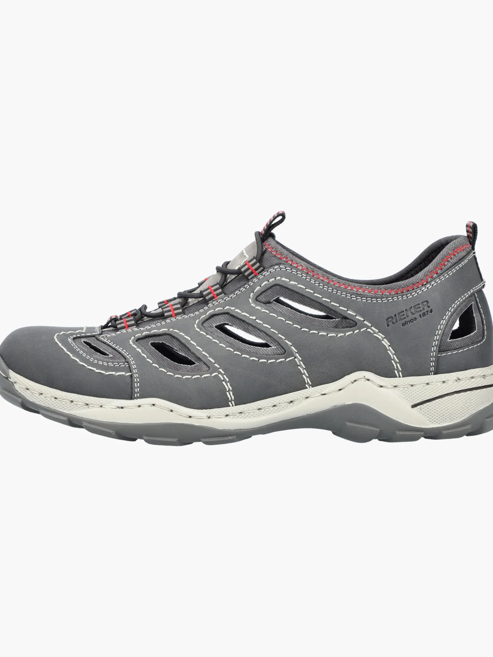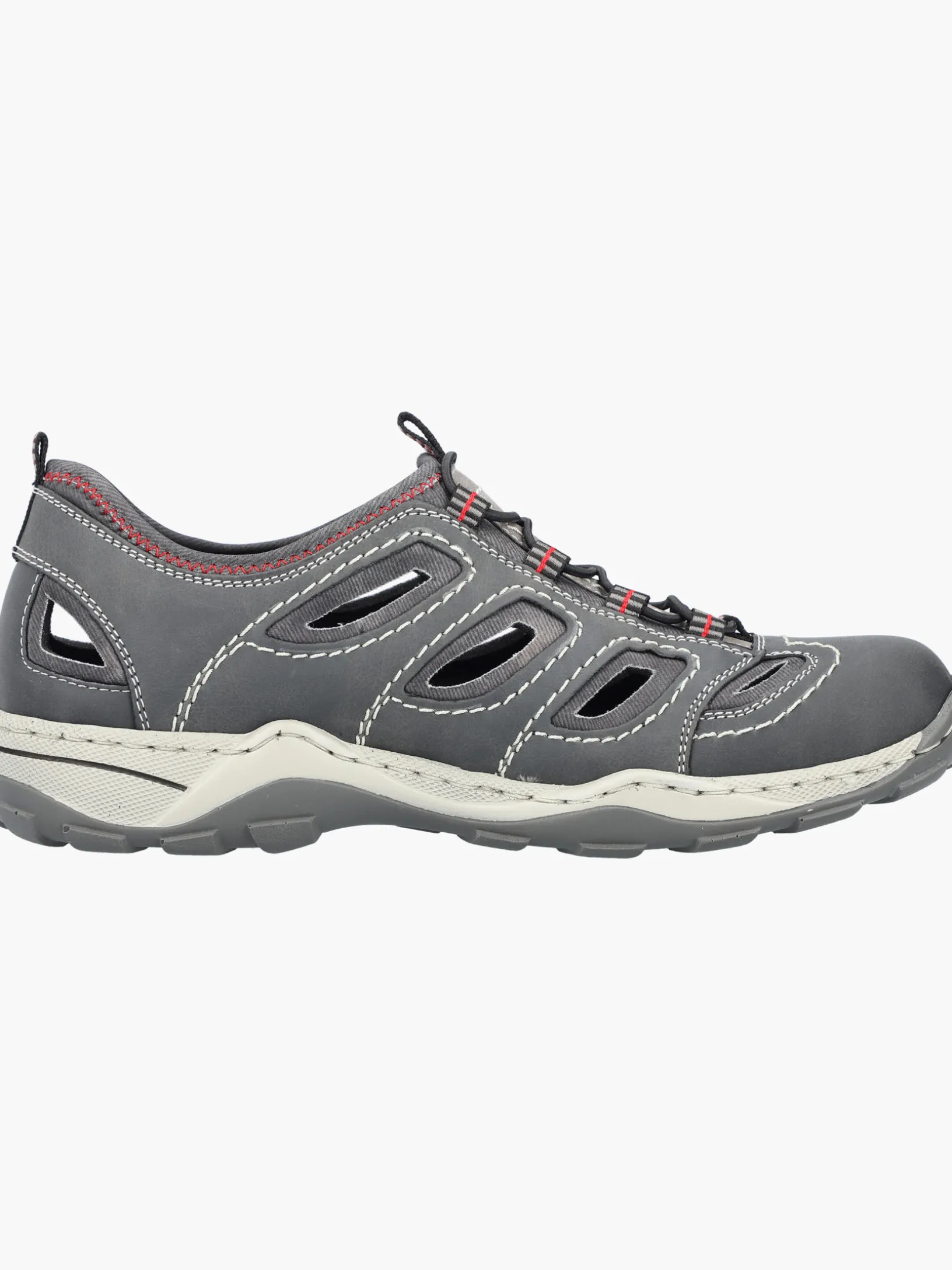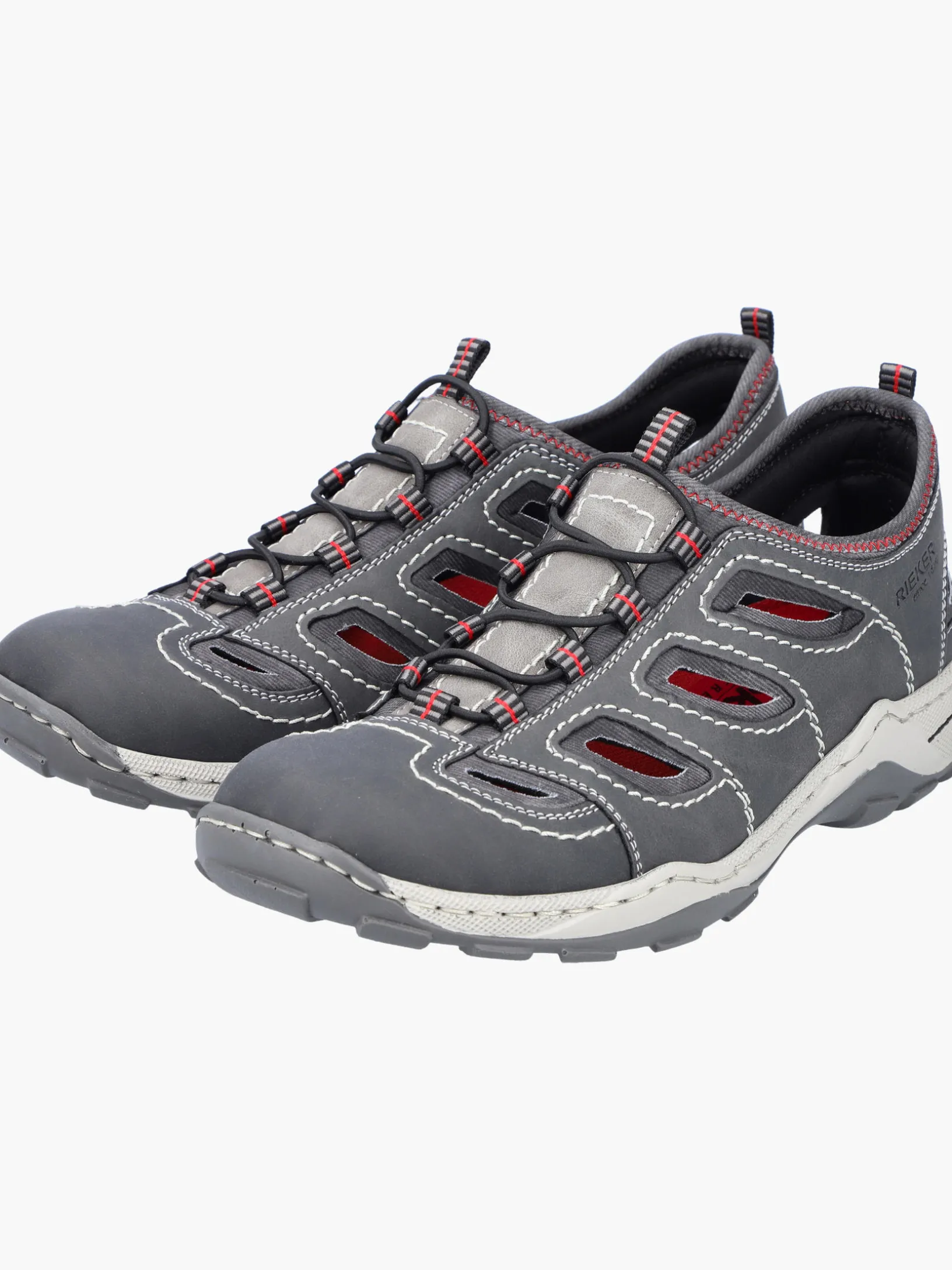 Lieblingsschuh-Potential! Diese mondgrauen Rieker Slipper für Herren überzeugen mit einem klassischen Design und hohem Komfort. Dank der Schnürung aus Gummi hat lästiges Schuhebinden ein Ende und das An- und Ausziehen gestaltet sich besonders leicht. Die Ziernähte runden den Look des Schuhs harmonisch ab. Die schockabsorbierende und leichte Sohle bietet besten Laufkomfort. Der Schuh ist in Komfortweite G geschnitten und sichert dem Fuß genügend Freiraum. Worauf warten?
