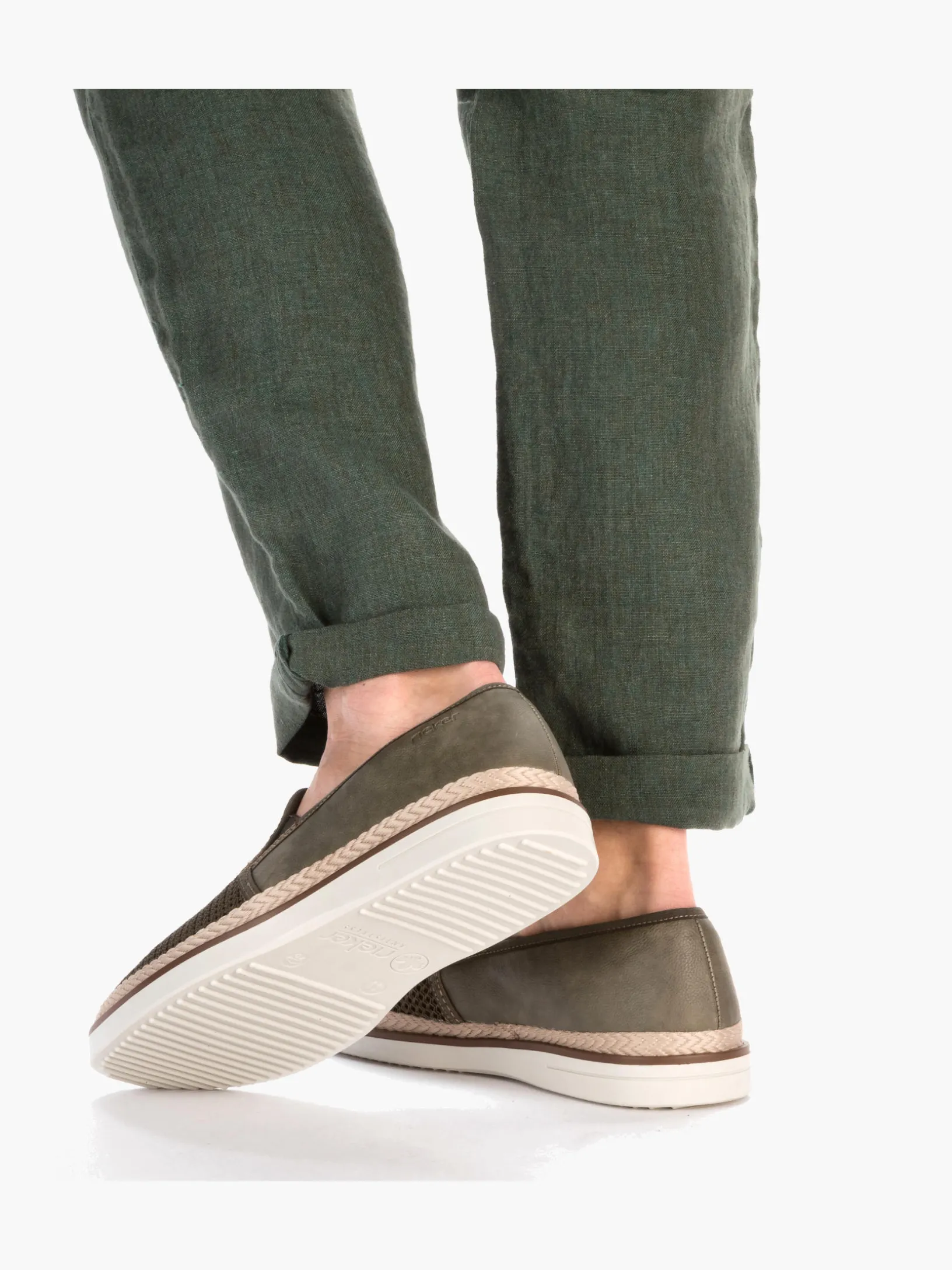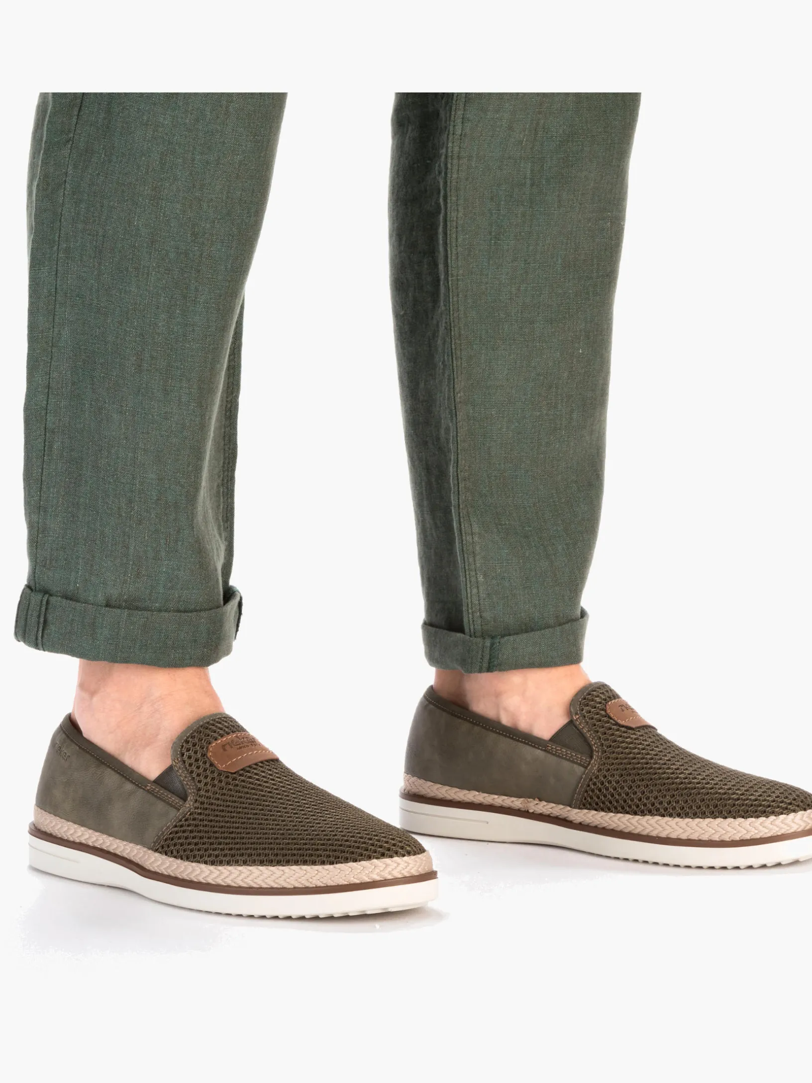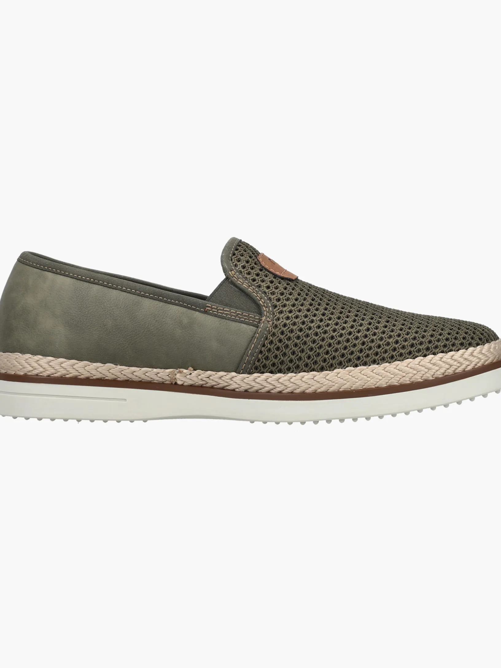 Auf dem Fashion-Radar! Diesen khakifarbenen Rieker Slipper für Herren möchte man gar nicht mehr ausziehen. Zudem passt der Schuh dank des Elastikeinsatzes wie angegossen. Die schockabsorbierende und leichte Sohle sorgt für ein angenehmes Tragegefühl. Ein weiteres Plus ist die extra weiche Decksohle. Das Modell ist in Komfortweite G 1/2 geschnitten und sichert dem Fuß genügend Freiraum. Trageluxus pur!