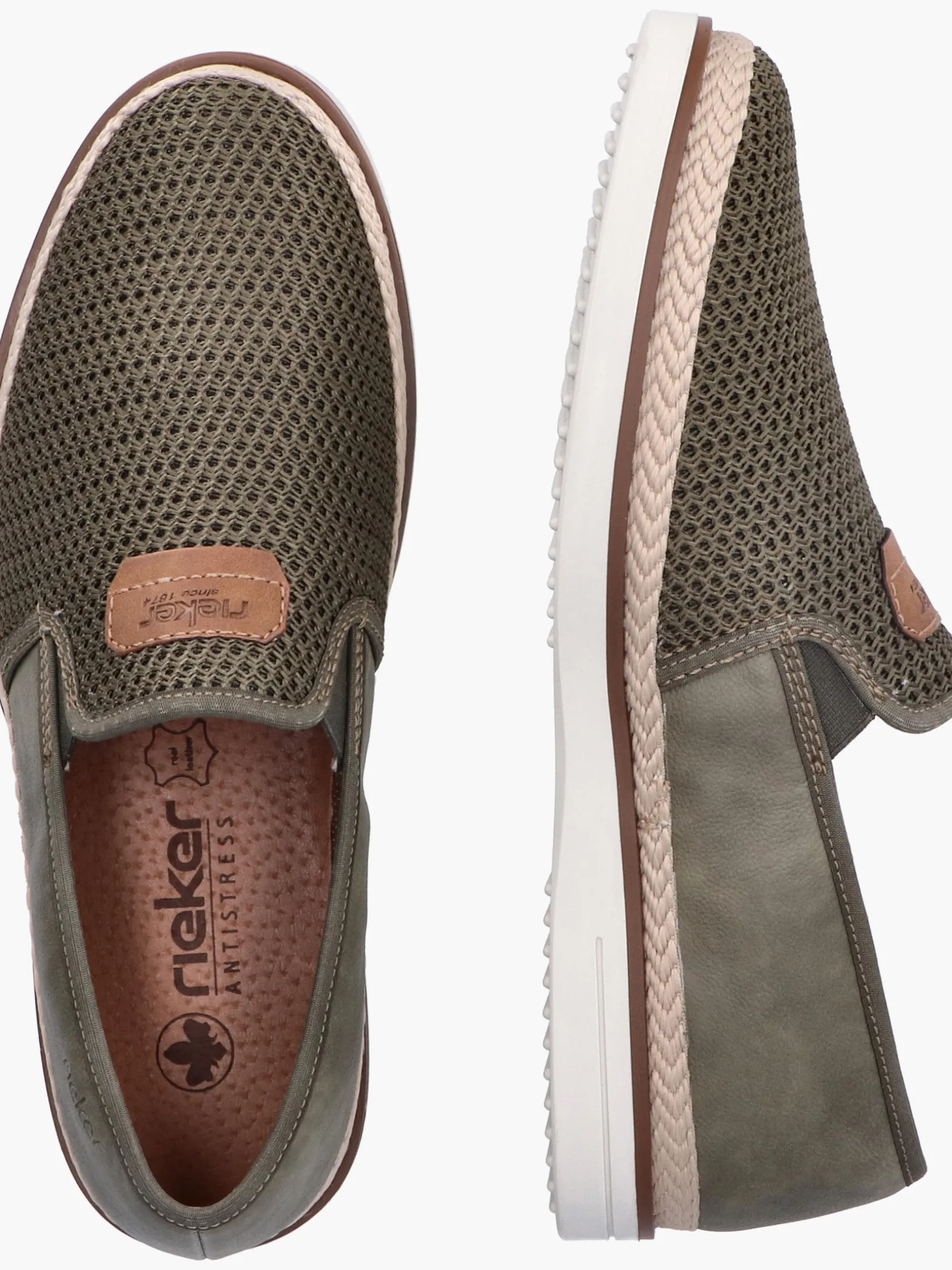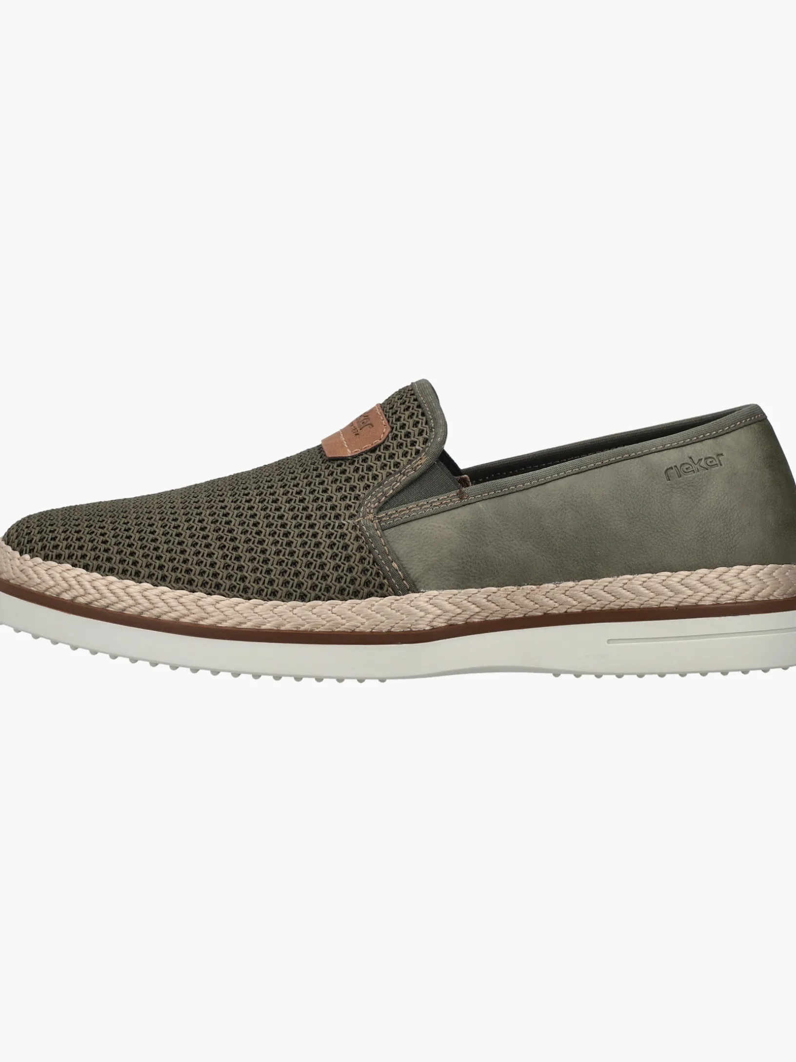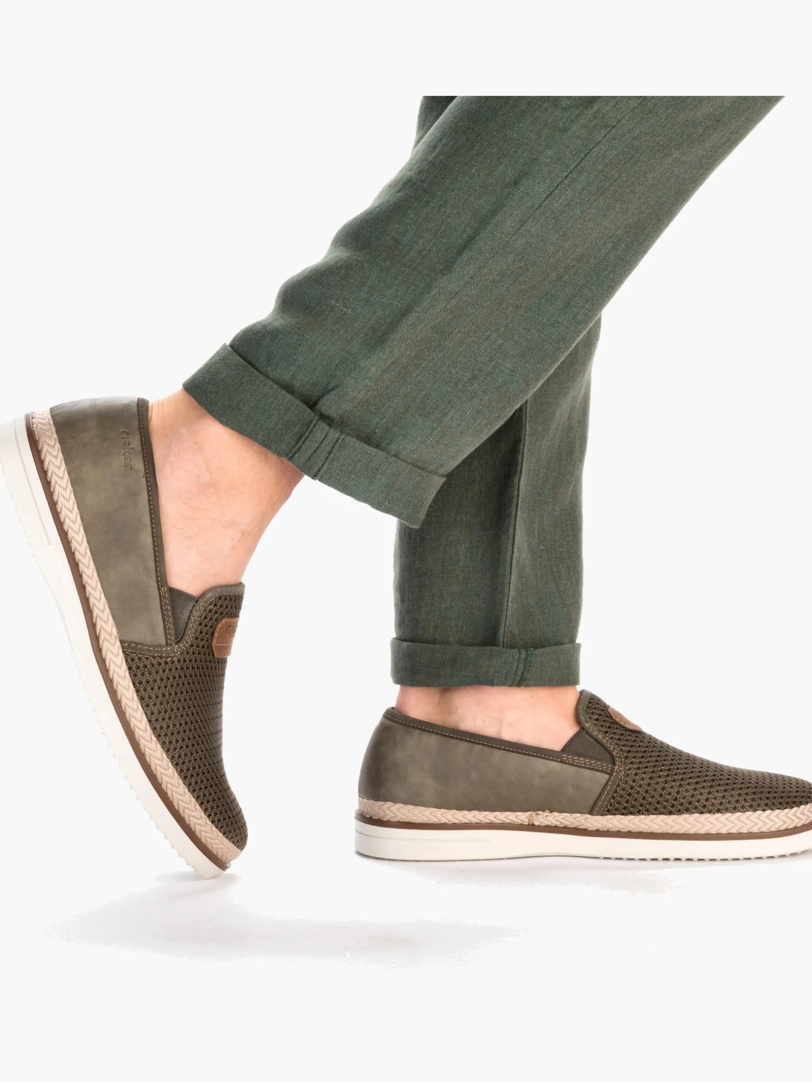 Auf dem Fashion-Radar! Diesen khakifarbenen Rieker Slipper für Herren möchte man gar nicht mehr ausziehen. Zudem passt der Schuh dank des Elastikeinsatzes wie angegossen. Die schockabsorbierende und leichte Sohle sorgt für ein angenehmes Tragegefühl. Ein weiteres Plus ist die extra weiche Decksohle. Das Modell ist in Komfortweite G 1/2 geschnitten und sichert dem Fuß genügend Freiraum. Trageluxus pur!