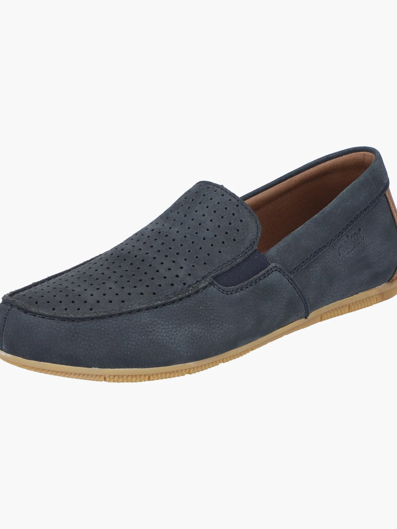 Die folgen dir auf Schritt und Tritt! Mit diesen alltagstauglichen stahlblauen Rieker Slippern für Herren aus Glattleder bist du mit maximalem Komfort und ultimativem Style unterwegs. Der Elastikeinsatz ermöglicht ein leichtes An- und Ausziehen. Der durchbrochene Stil ist ein schöner Eyecatcher. Die super leichte und flexible Sohle bietet anhaltendes Wohlgefühl ‒ auch an langen Tagen. Die Slipper sind super bequem dank der gepolsterten und herausnehmbaren Einlegesohle. Durch die Komfortweite G 1/2 ist dir mehr Freiraum im Schuh geboten. Nicht nur die Fütterung des Schuhs, sondern auch die Decksohle besteht aus offenporigem Material, das besonders atmungsaktiv und on top feuchtigkeitsabsorbierend ist. Achtung, Lieblingsschuh-Potential!