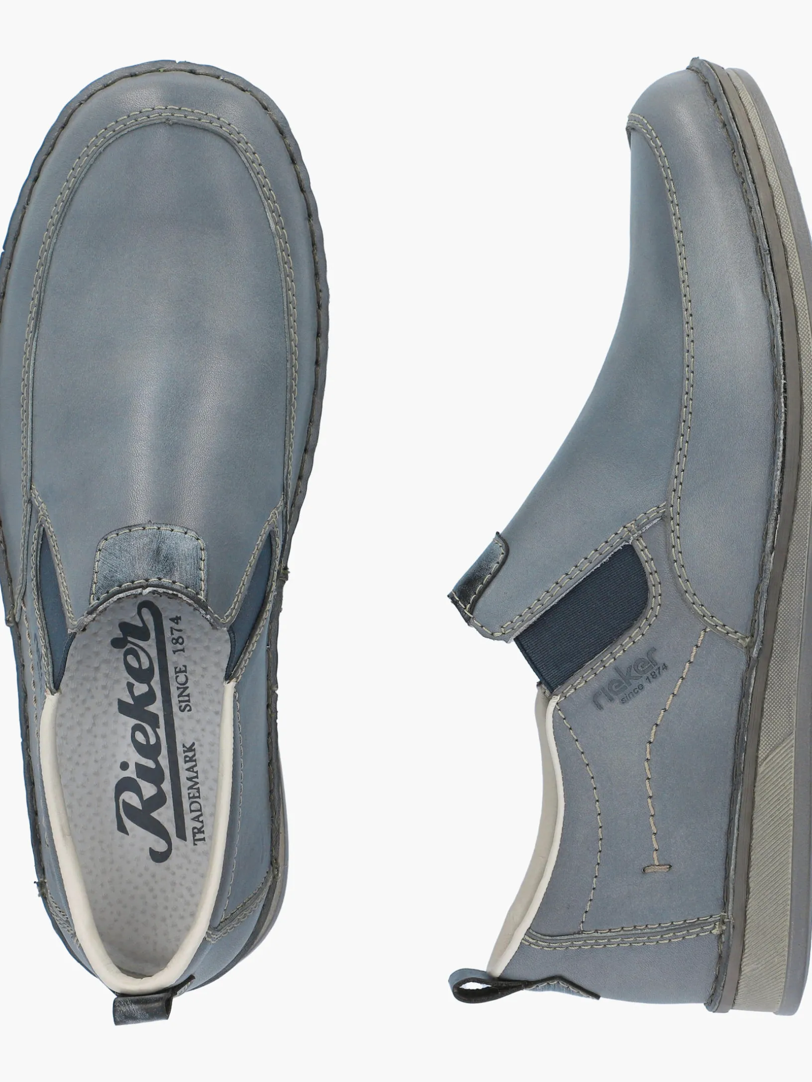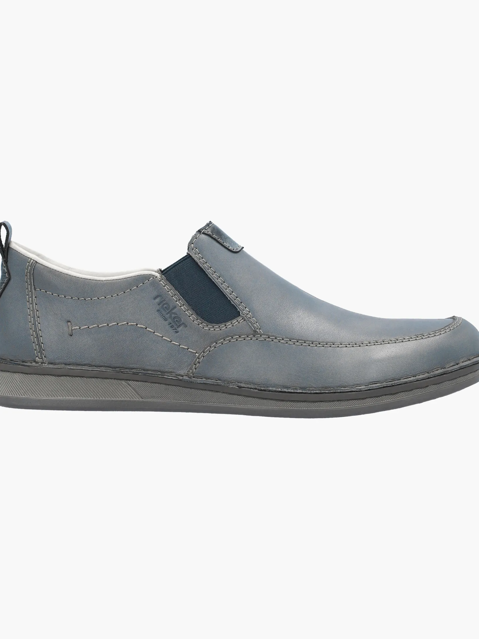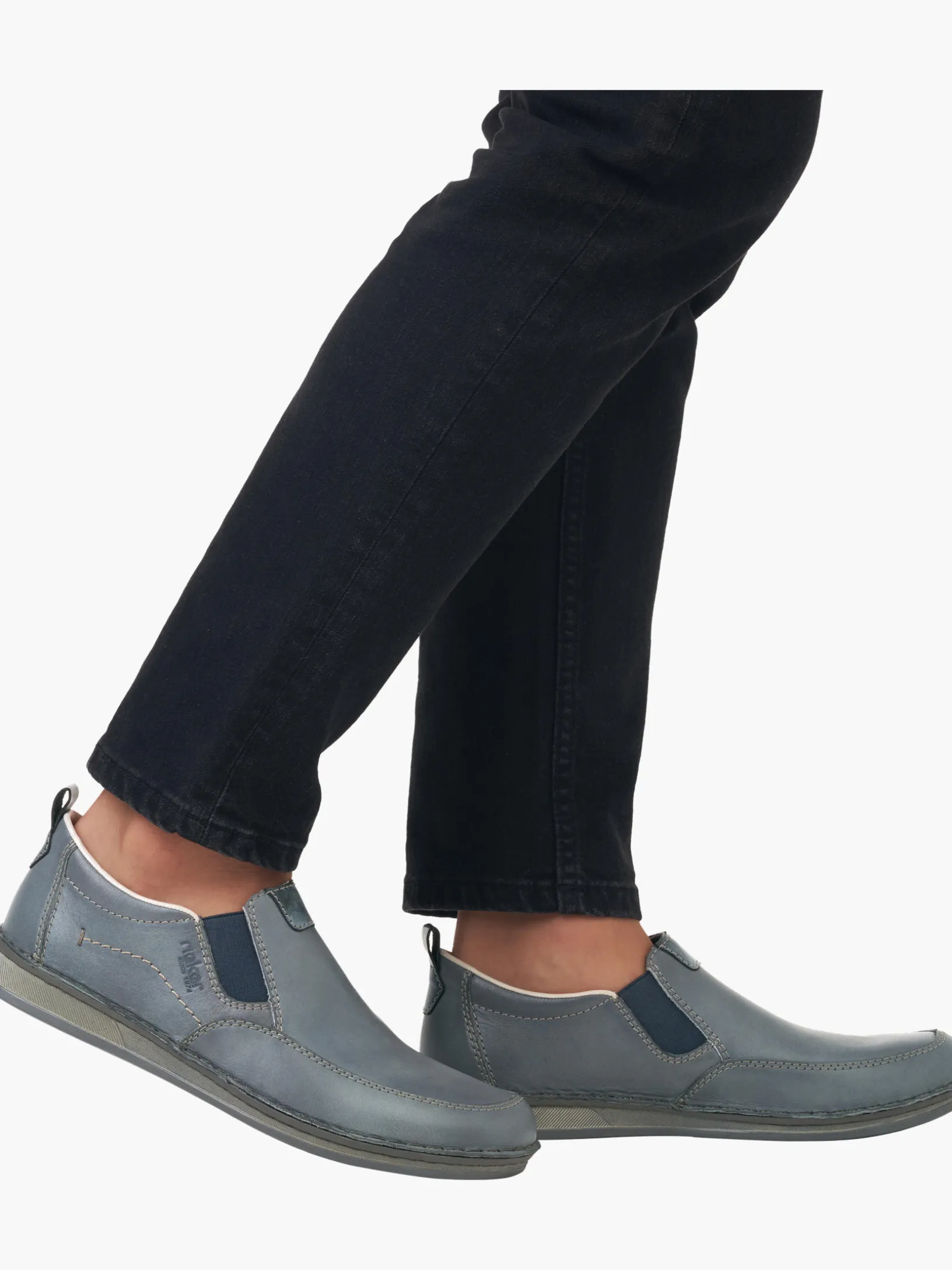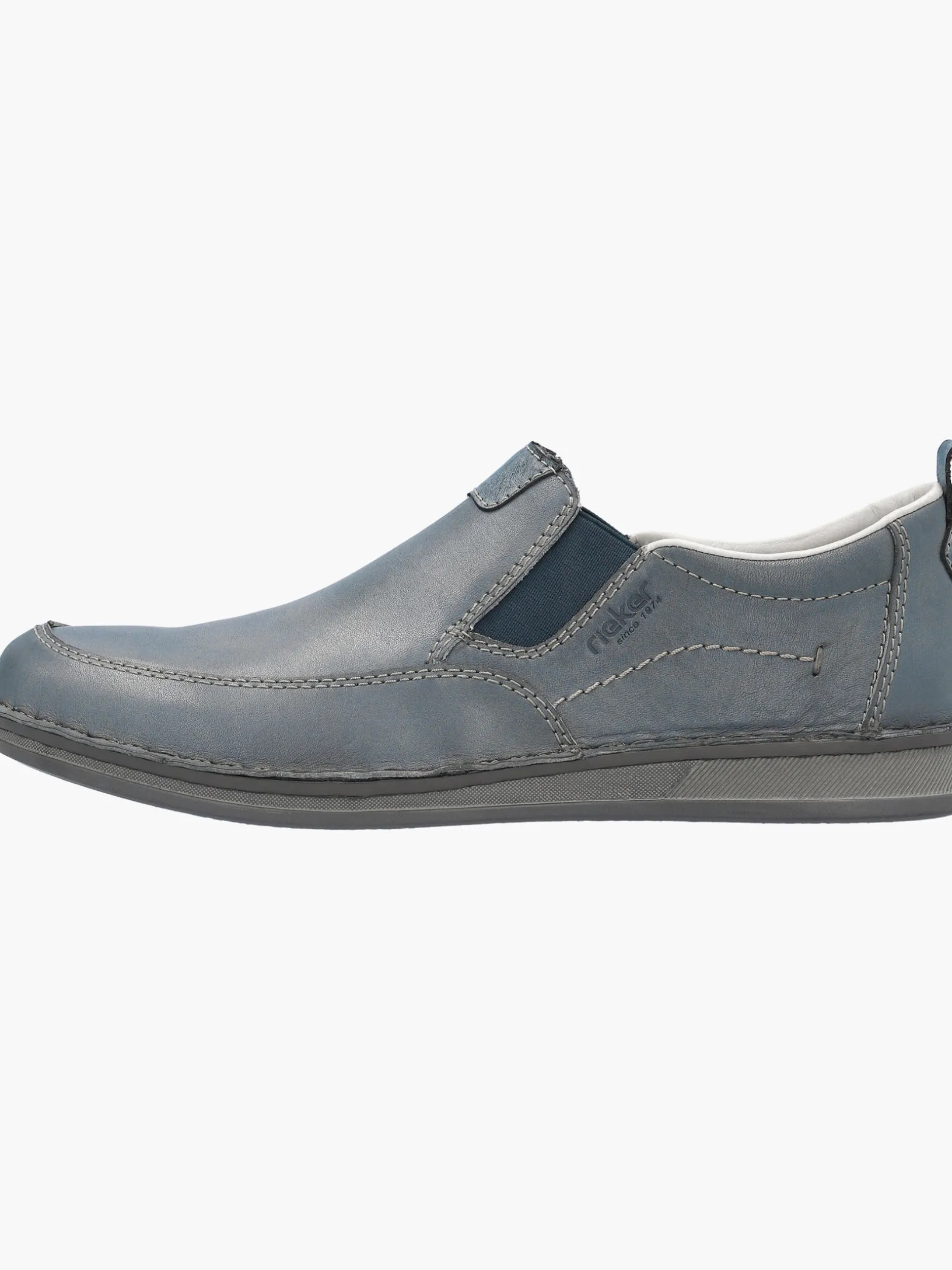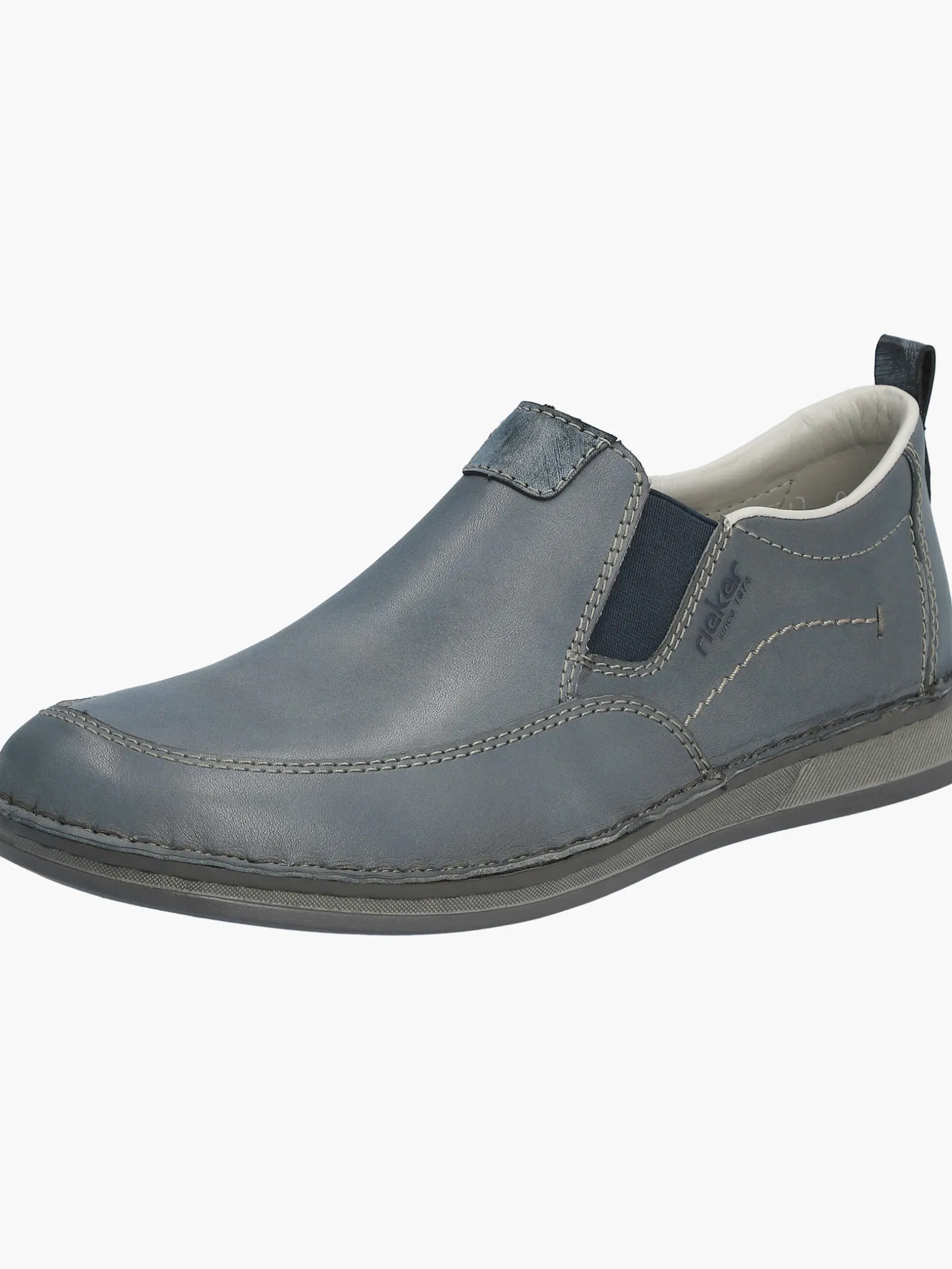 Immer einen Schritt voraus! Diese lässigen schieferblauen Rieker Slipper für Herren aus Glattleder sind gemütliche Begleiter auf all deinen Wegen. Der Elastikeinsatz erleichtert das An- und Ausziehen besonders. Wahre Eyecatcher sind die braunen Ziernähte. Die Sohle ist sowohl schockabsorbierend als auch leicht und bietet damit ein doppeltes Wohlgefühl bei jedem Schritt. Zudem sorgt die extra weiche Decksohle für eine Extraportion Tragekomfort. Durch die Extraweite H haben die Füße mehr Platz im Schuh. Also nichts wie los!