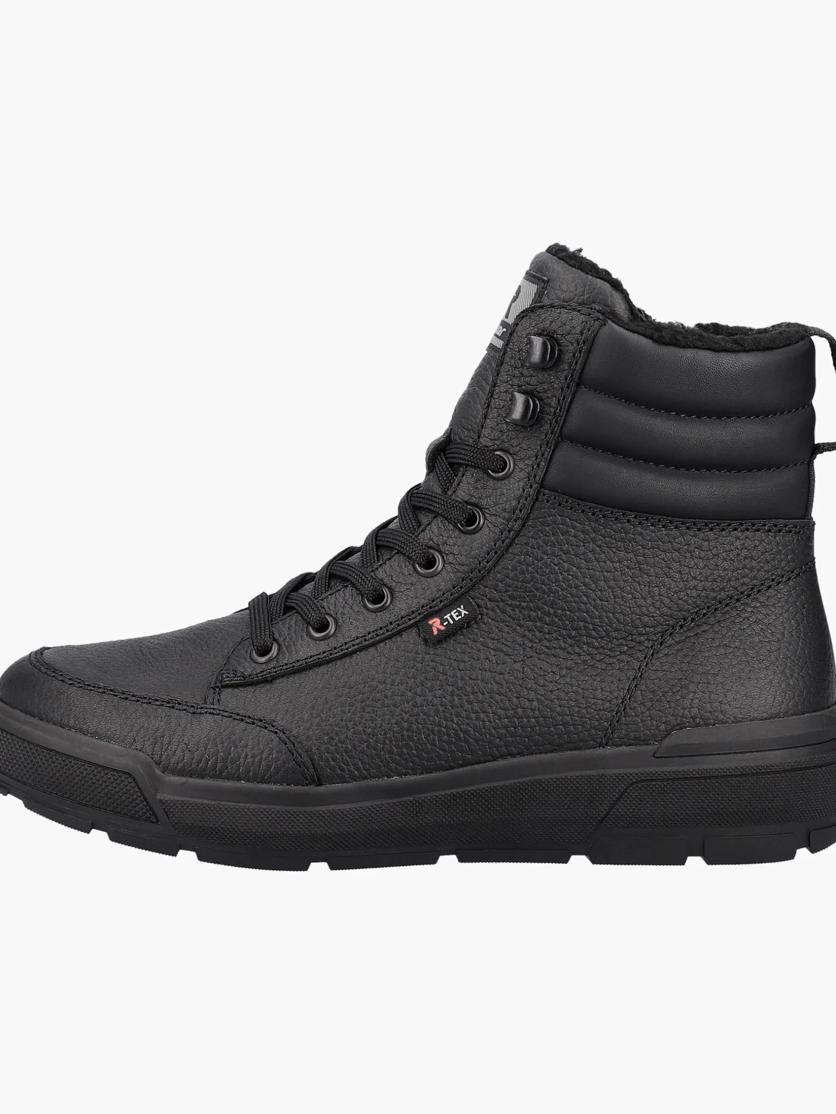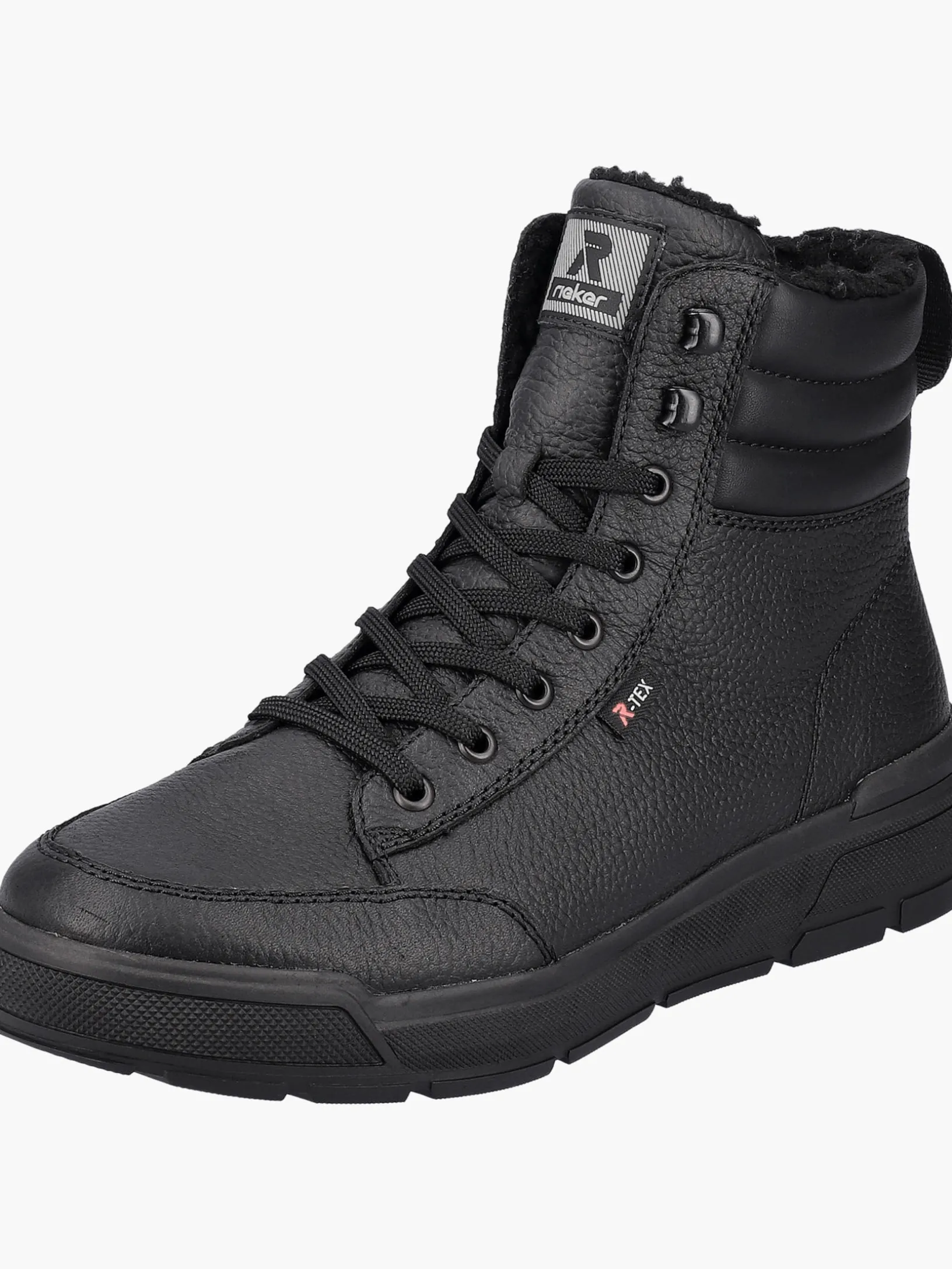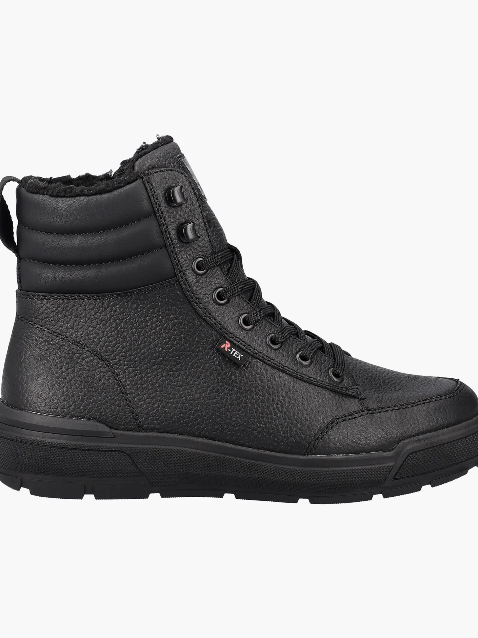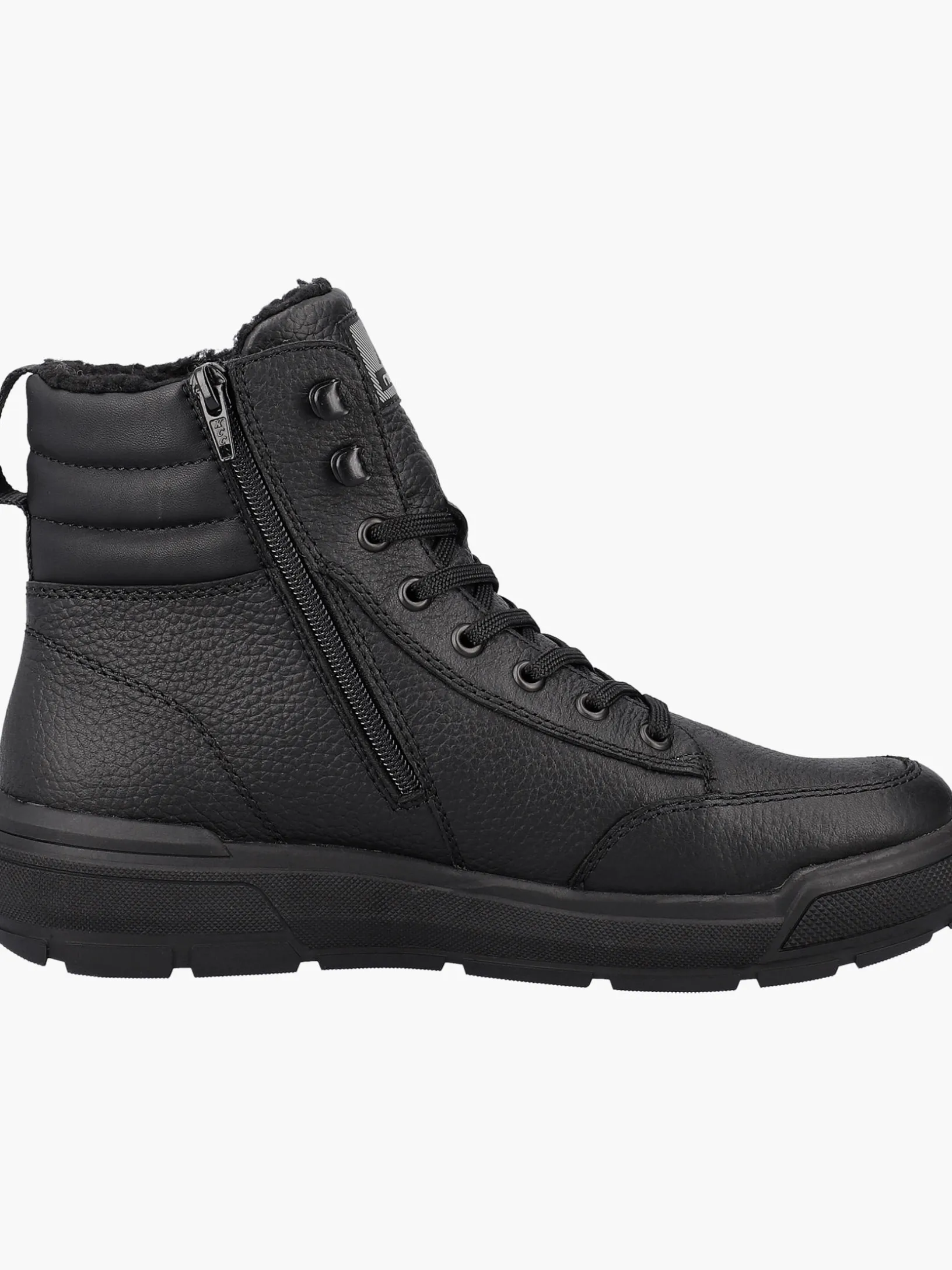 Echter Klassiker – modern interpretiert: Mit diesen schwarzen Stiefeln aus Glattleder von Rieker EVOLUTION musst du dir um die Tücken des Winterwetters keine Sorgen machen. Die geniale Kombination aus Schnürung und Reißverschluss ermöglicht ein einfaches An- und Ausziehen. Die Profilsohle ist leicht und sorgt jederzeit für guten Grip. Ein funktionales und komfortables Plus ist die gepolsterte und herausnehmbare Einlegesohle. Durch die Komfortweite G 1/2 haben die Füße mehr Platz im Schuh. Auch in Sachen Komfort ist man mit der wasserabweisenden RiekerTEX-Membran und dem kuscheligen und sehr warmen Schurwoll-Futter einen Schritt voraus. Mehr geht nicht!
