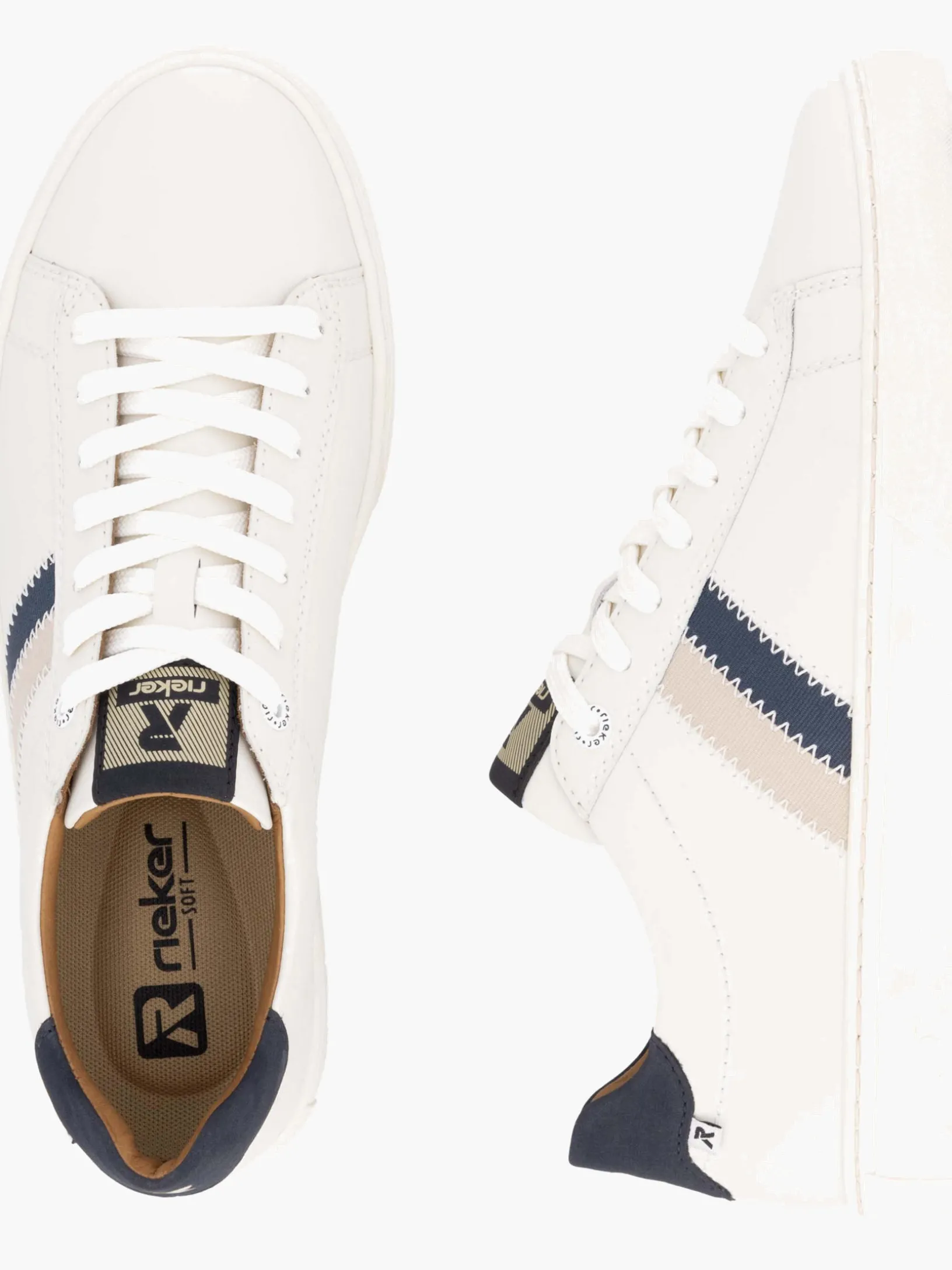 Rieker – kleine Details für den großen Unterschied! Diese weißen Rieker Sneaker für Herren aus Glattleder sind die perfekte Symbiose aus zeitlosem Design und einer großen Portion Komfort. Zudem sorgt die Schnürung dafür, dass der Schuh jederzeit gut sitzt. Die ultra-leichte, super weiche EVA-Zwischensohle ist das Herzstück der robusten Laufsohle, durch die du noch leichtere Schritte tust. Gepolsterte und herausnehmbare Einlegesohle? Check! Das Modell ist in Komfortweite G 1/2 geschnitten. Dank der anschmiegsamen Innenfütterung aus Leder ist idealer Tragekomfort garantiert. Da steht langen Spaziergängen nichts mehr im Weg!