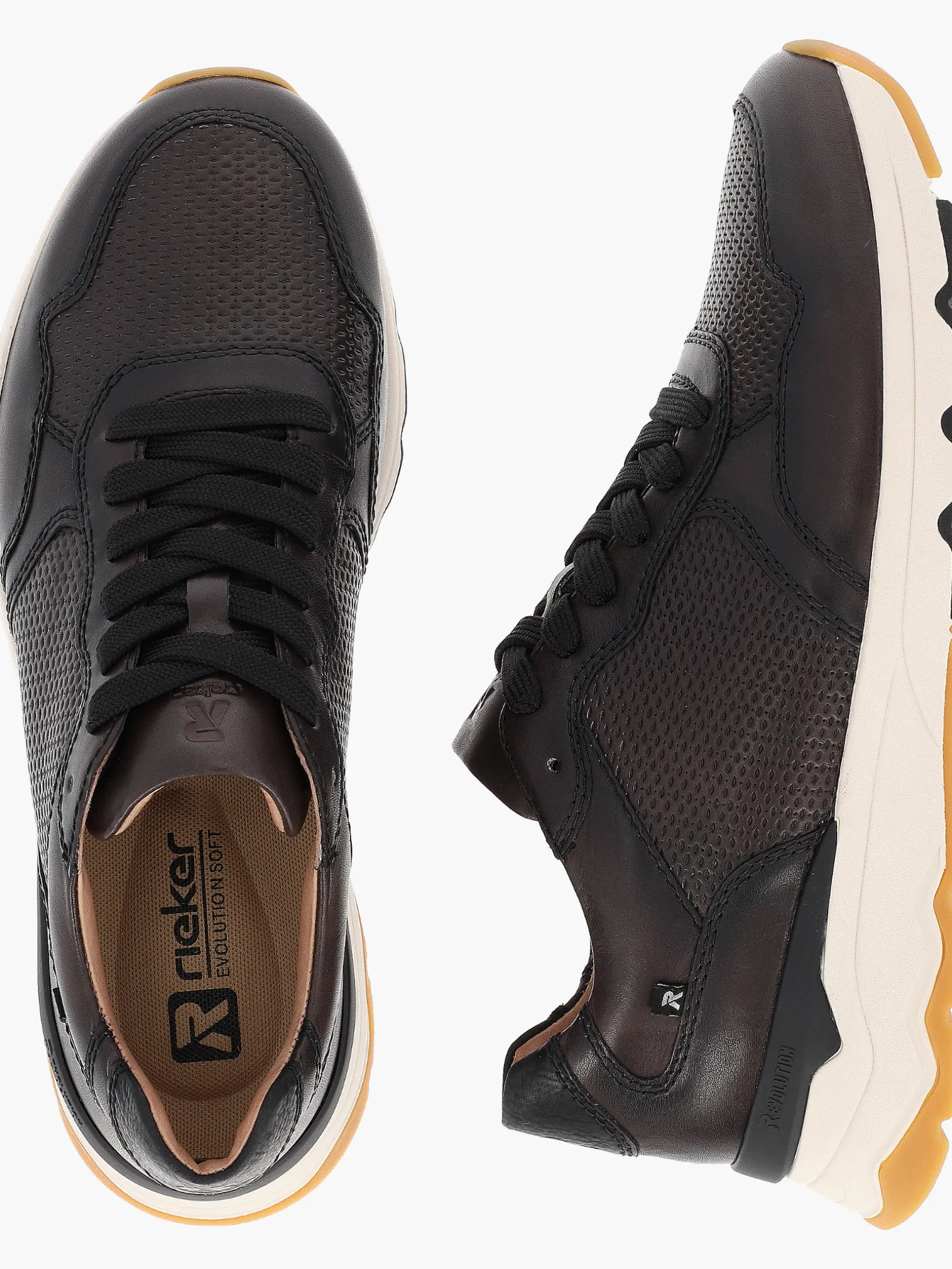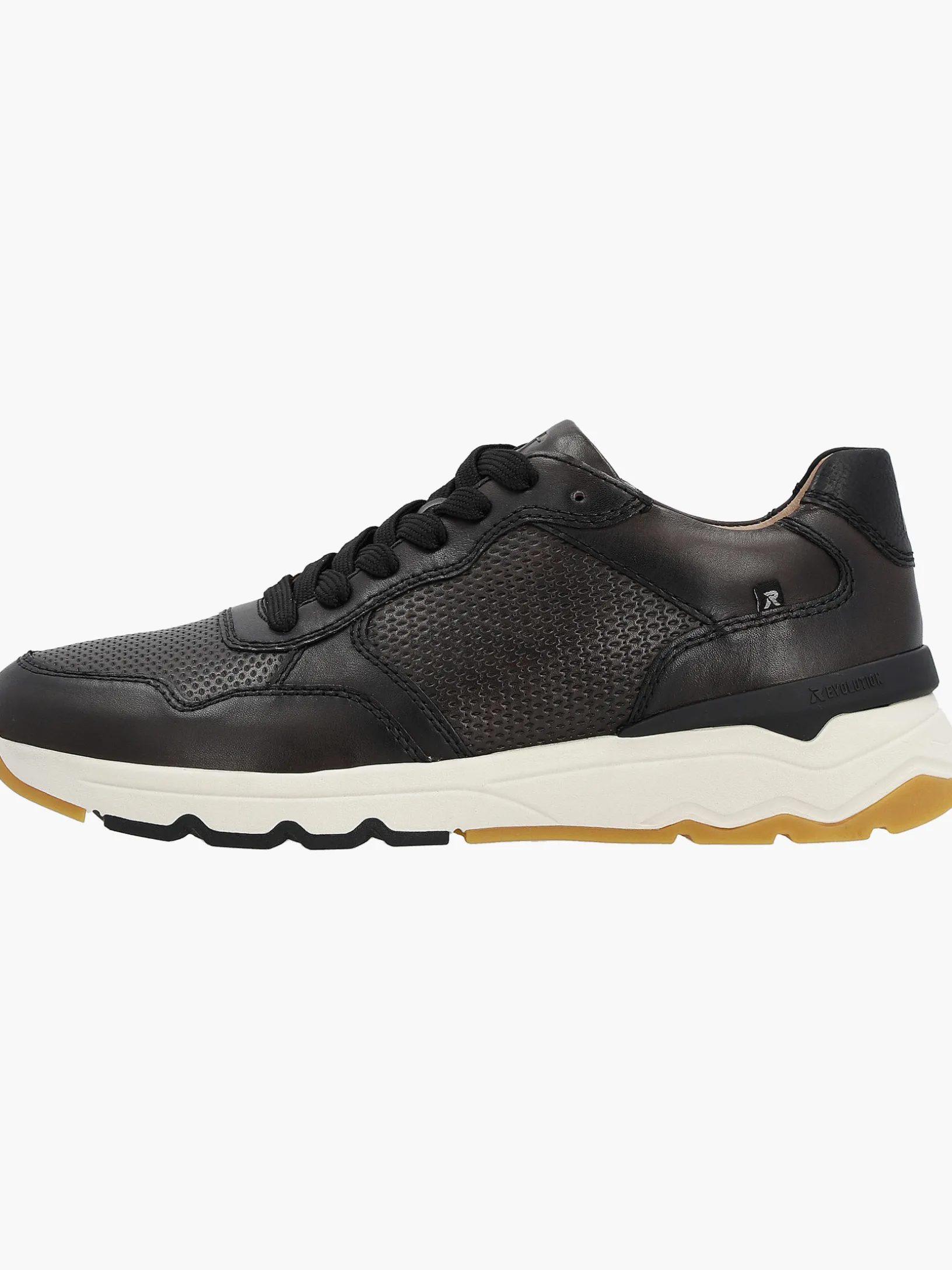 DAS Dreiergespann der Saison: Design, Komfort und Funktion! In diesem schwarzen Rieker Sneaker für Herren aus Glattleder lässt es sich aushalten. Durch die Schnürung erhält der Schuh den optimalen Sitz am Fuß. Die Sohle ist sowohl flexibel als auch super leicht und bietet damit ein doppeltes Wohlgefühl bei jedem Schritt. Die gepolsterte und herausnehmbare Einlegesohle ist das praktische Komfort-Feature schlechthin. Außerdem ist deinen Füßen durch die Komfortweite G 1/2 mehr Bewegungsfreiraum im Vorfußbereich geboten. Die Innenfütterung aus atmungsaktivem Leder garantiert ein natürliches Fußklima. It´s a match!