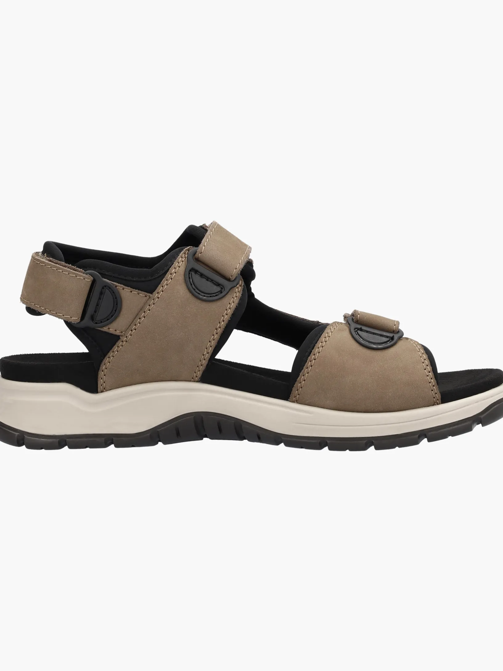 Alleskönner! Diese hellbraunen Rieker Trekkingsandalen für Herren aus Glattleder wurden aufwendig verarbeitet. Idealer Halt und gute Passform sind durch Riemen, einen verstellbaren Klettverschluss und einen breiten Fersenriemen garantiert. Die schockabsorbierende und leichte Sohle bietet anhaltendes Wohlgefühl ‒ auch an langen Tagen. Das Modell sichert dem Fuß zusätzlichen Bewegungsfreiraum, denn es ist in Komfortweite G geschnitten. Gesucht, gefunden!