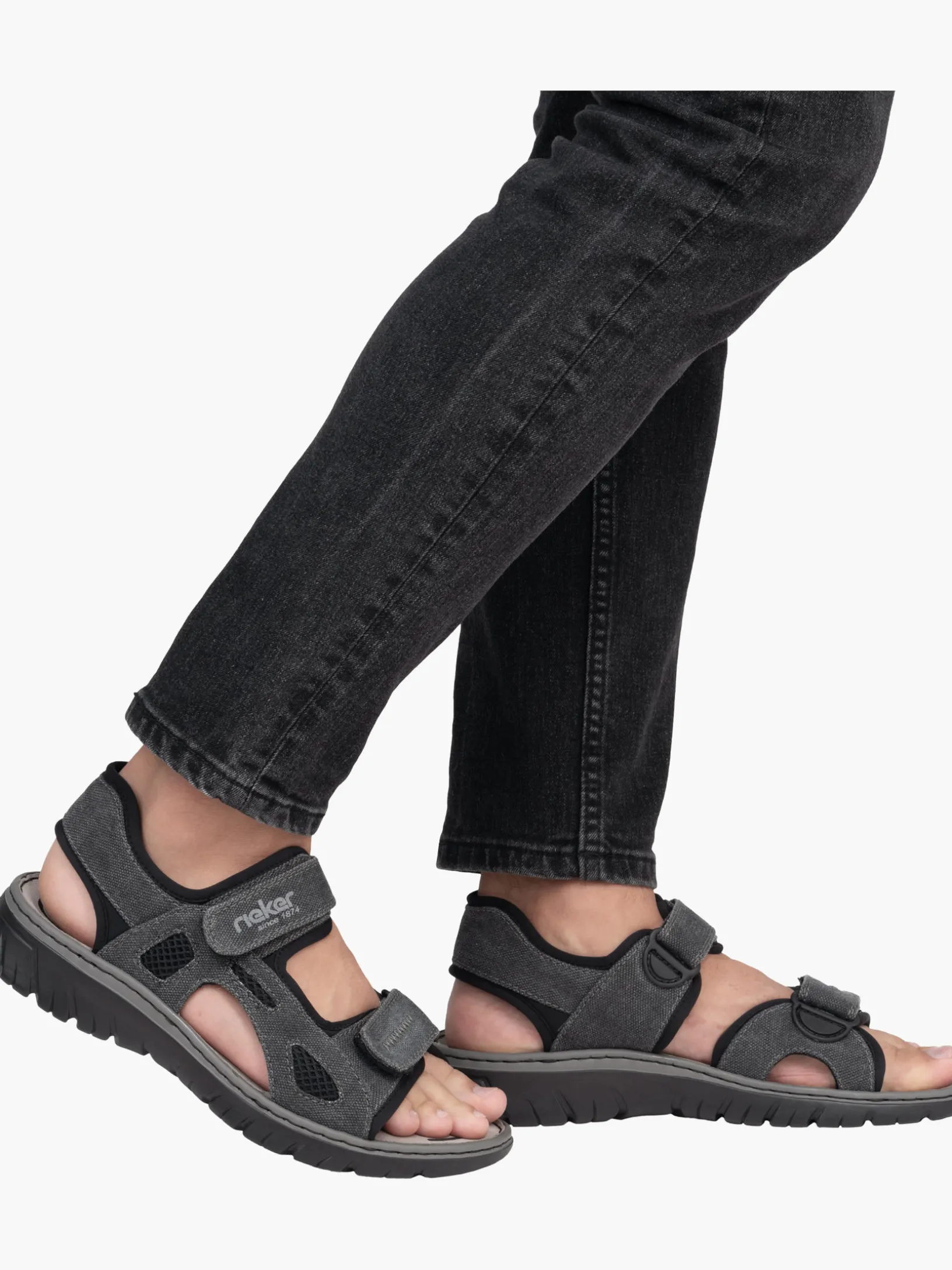 Style oder Komfort? Wieso oder? Diese steingrauen Rieker Trekkingsandalen für Herren sind ein komfortabler Begleiter. Perfekter Halt und gute Passform sind durch Riemen, einen verstellbaren Klettverschluss und einen breiten Fersenriemen garantiert. Die sehr leichte und schockabsorbierende Sohle bietet besten Laufkomfort. Der Schuh ist in Komfortweite G geschnitten. Alles in einem – top!