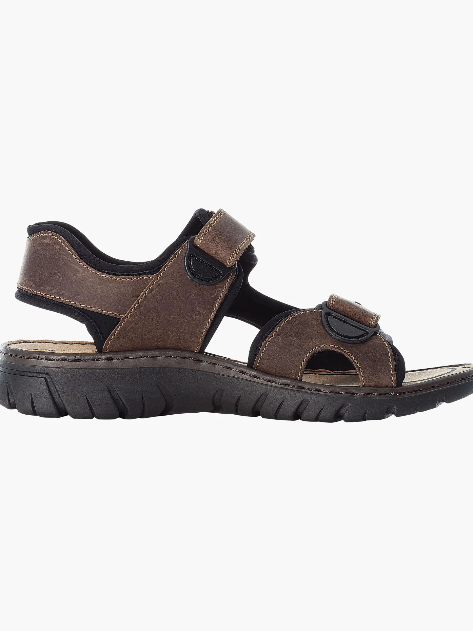 Wir lieben Braun! Diese dunkelbraunen Rieker Trekkingsandalen für Herren aus Rauleder bringen alles unter einen Hut: Komfort, Funktion und natürlich Design. Optimaler Halt und perfekte Passform sind durch Riemen, einen verstellbaren Klettverschluss und einen breiten Fersenriemen garantiert. Die Ziernähte sorgen für das gewisse Etwas. Die sehr leichte und schockabsorbierende Sohle bietet besten Laufkomfort. Darüber hinaus ist deinen Füßen durch die Komfortweite G mehr Bewegungsfreiraum im Vorfußbereich geboten. Was will man mehr?