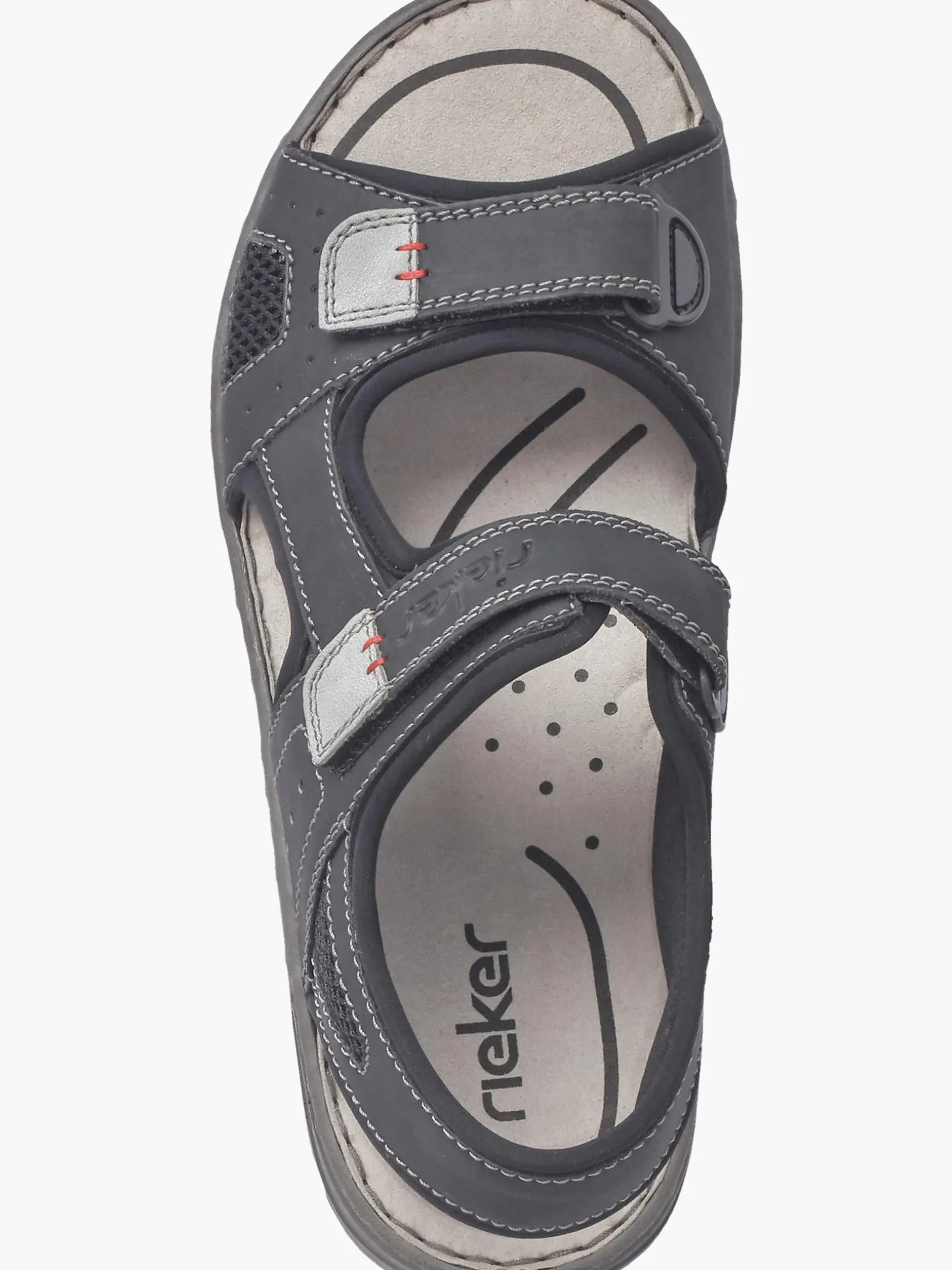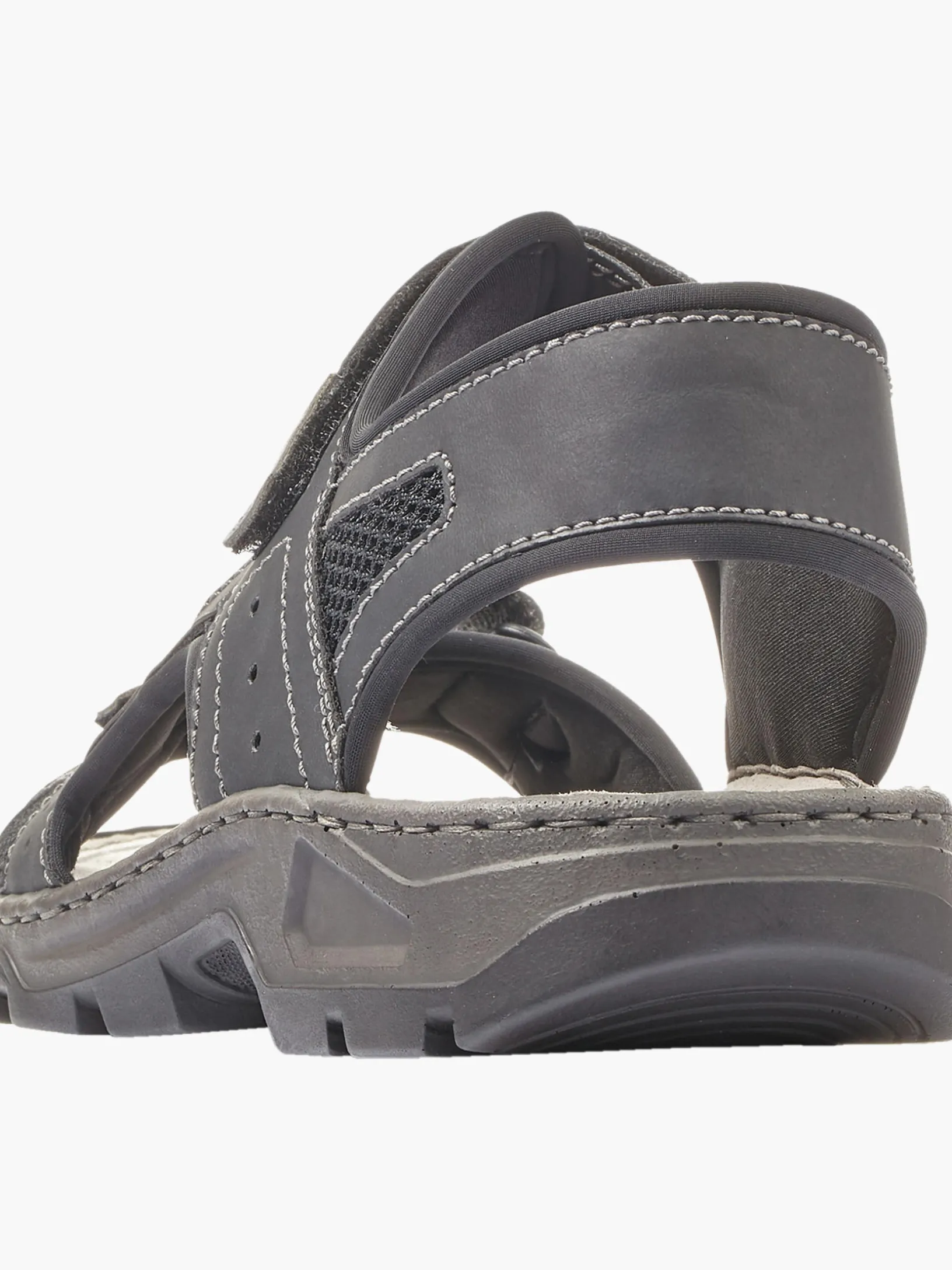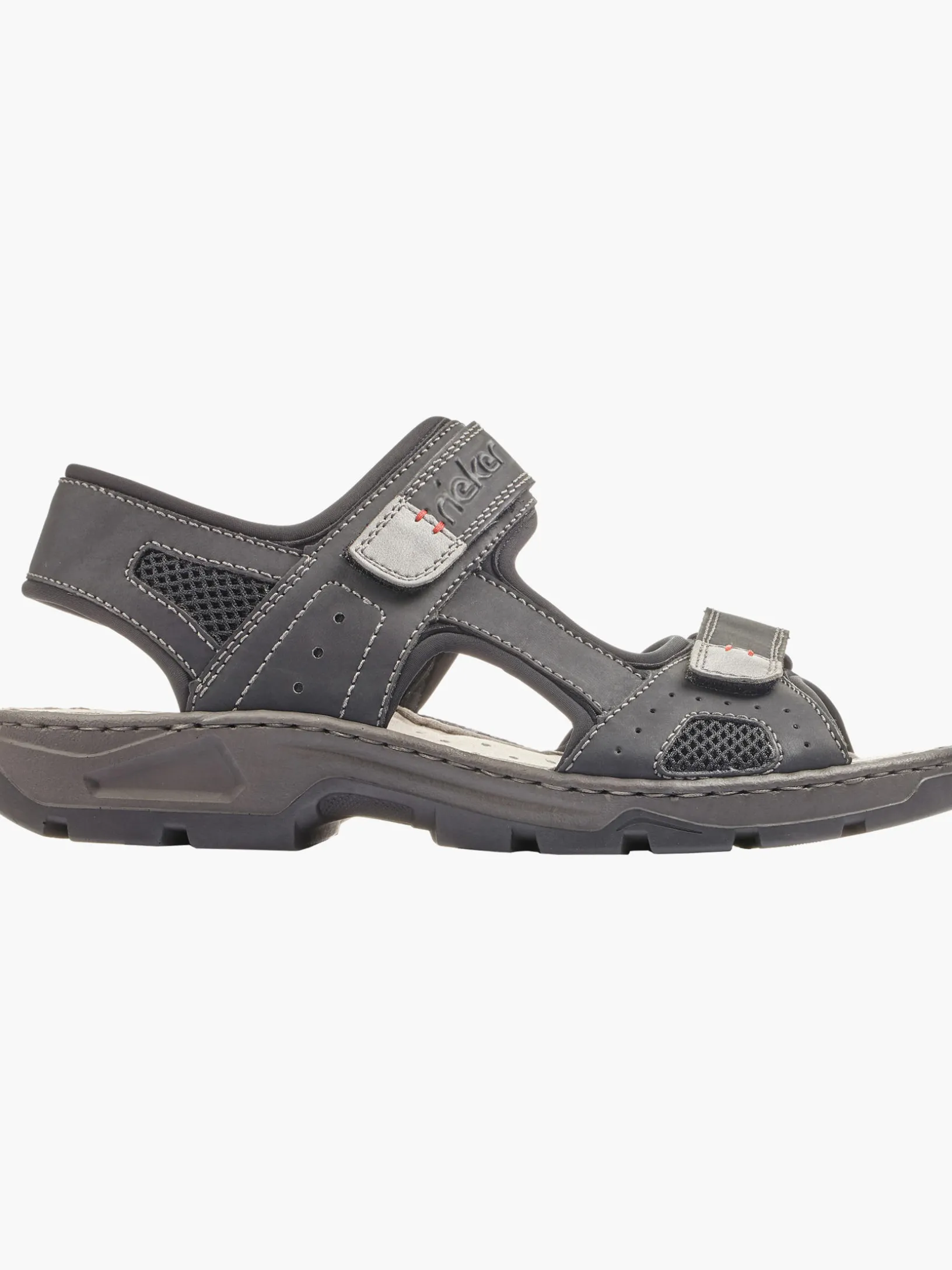 Wir lieben Schwarz! Mit diesen graphitschwarzen Rieker Trekkingsandalen für Herren bist du cool und lässig auf Achse. Optimaler Halt und gute Passform sind durch Riemen, einen verstellbaren Klettverschluss und einen breiten Fersenriemen garantiert. Die Ziernähte verleihen dem Schuh das gewisse Etwas. Die leichte und schockabsorbierende Sohle sorgt für ein angenehmes Tragegefühl. Ein weiteres Plus ist die extra weiche Decksohle. Außerdem ist deinen Füßen durch die Komfortweite G mehr Bewegungsfreiraum im Vorfußbereich geboten. Deine Best-Buddies für die neue Saison!