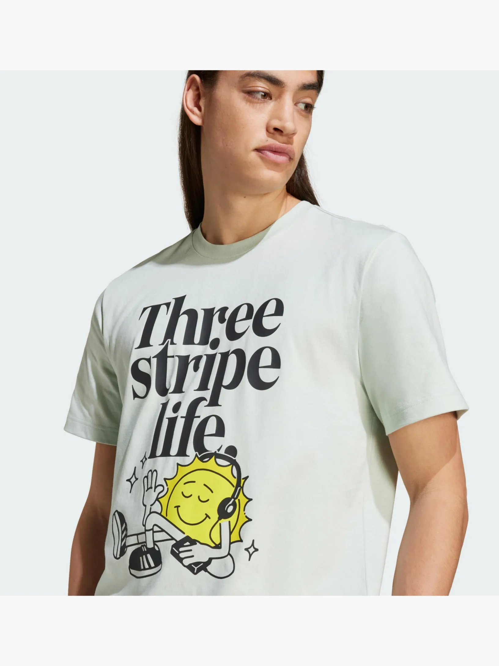 Versprüh jede Menge positive Vibes, ohne ein Wort zu sagen. Dieses weiche adidas T-Shirt sorgt mit seiner sonnigen Grafik auf der Vorderseite für jede Menge gute Laune. Egal, ob du die City erkundest oder mit deinen Buddys chillst, dieses lässige Oberteil gibt dir ein bequemes Tragegefühl. Kombiniert mit deiner Lieblingsjogginghose, Sneakern und einer leichten Jacke wird ein lässiger Look daraus.Die Baumwolle für dieses Produkt stammt aus der Better Cotton Initiative. Better Cotton wird durch das Chain-of-Custody-Modell der Massenbilanz bezogen. Dadurch ist bei Better Cotton keine physische Rückverfolgung bis zum Endprodukt möglich.Hier erfährst du mehr: https://bettercotton.org/who-we-are/our-logo/