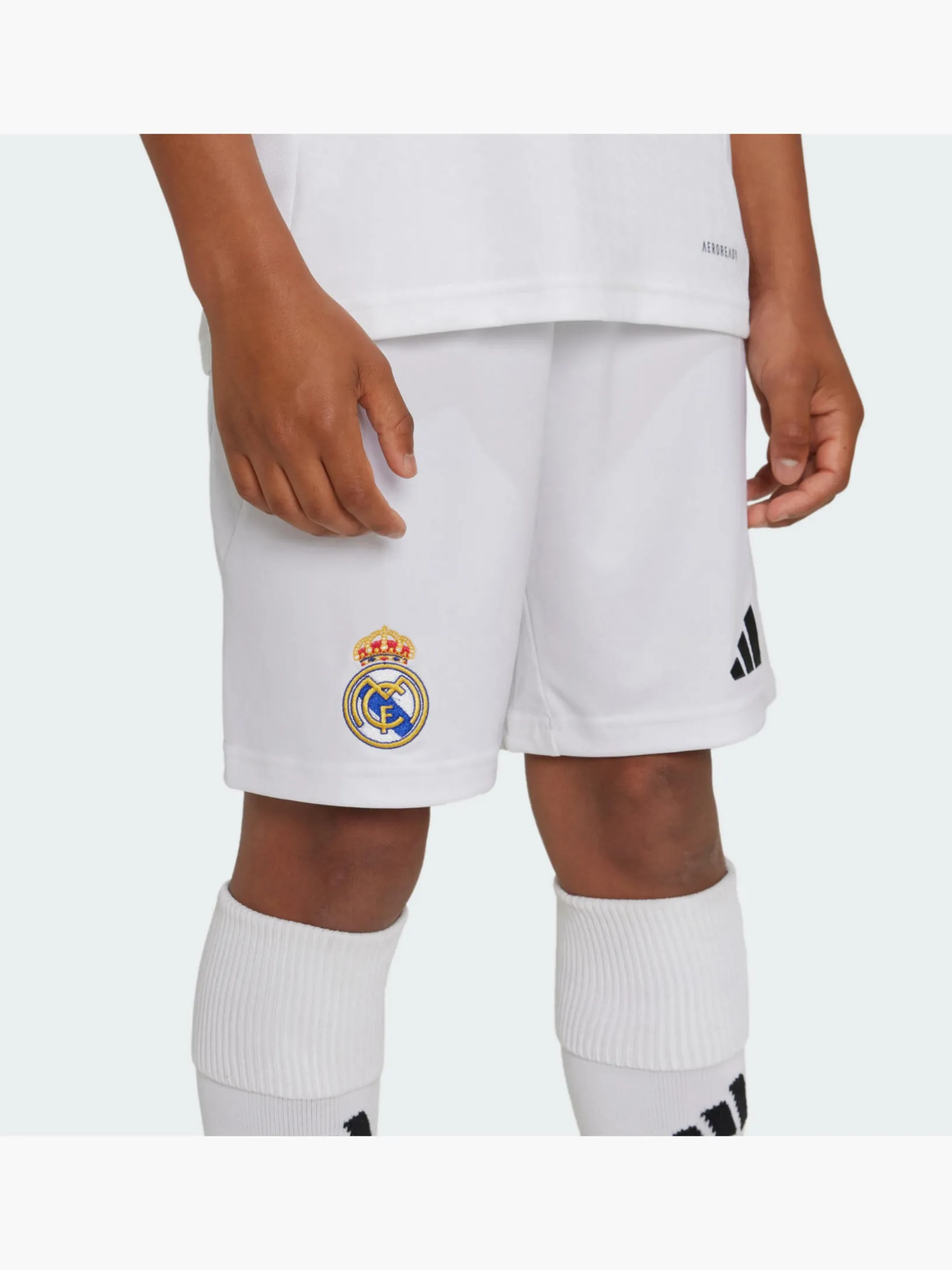 Mit diesen adidas Real Madrid Heimshorts für Kinder und Teens hast du fast das Gefühl, wie die Profis beim Heimspiel im Bernabéu Stadion mit auf dem Platz zu stehen. Sie sind Teil der Fußballausrüstung, die von einer Madrider Tradition inspiriert ist, und kommen mit einem aufgestickten Vereinslogo. Außerdem sorgt die feuchtigkeitsabsorbierende AEROREADY Technologie für ein angenehm trockenes Tragegefühl beim Kicken oder Anfeuern. Dieses Produkt ist mit 100 % recycelten Materialien hergestellt. Die Wiederverwendung bereits vorhandener Materialien hilft uns dabei, Müll zu reduzieren, unsere Abhängigkeit von nicht erneuerbaren Ressourcen einzuschränken und den CO2-Fußabdruck unserer Produkte zu verringern.