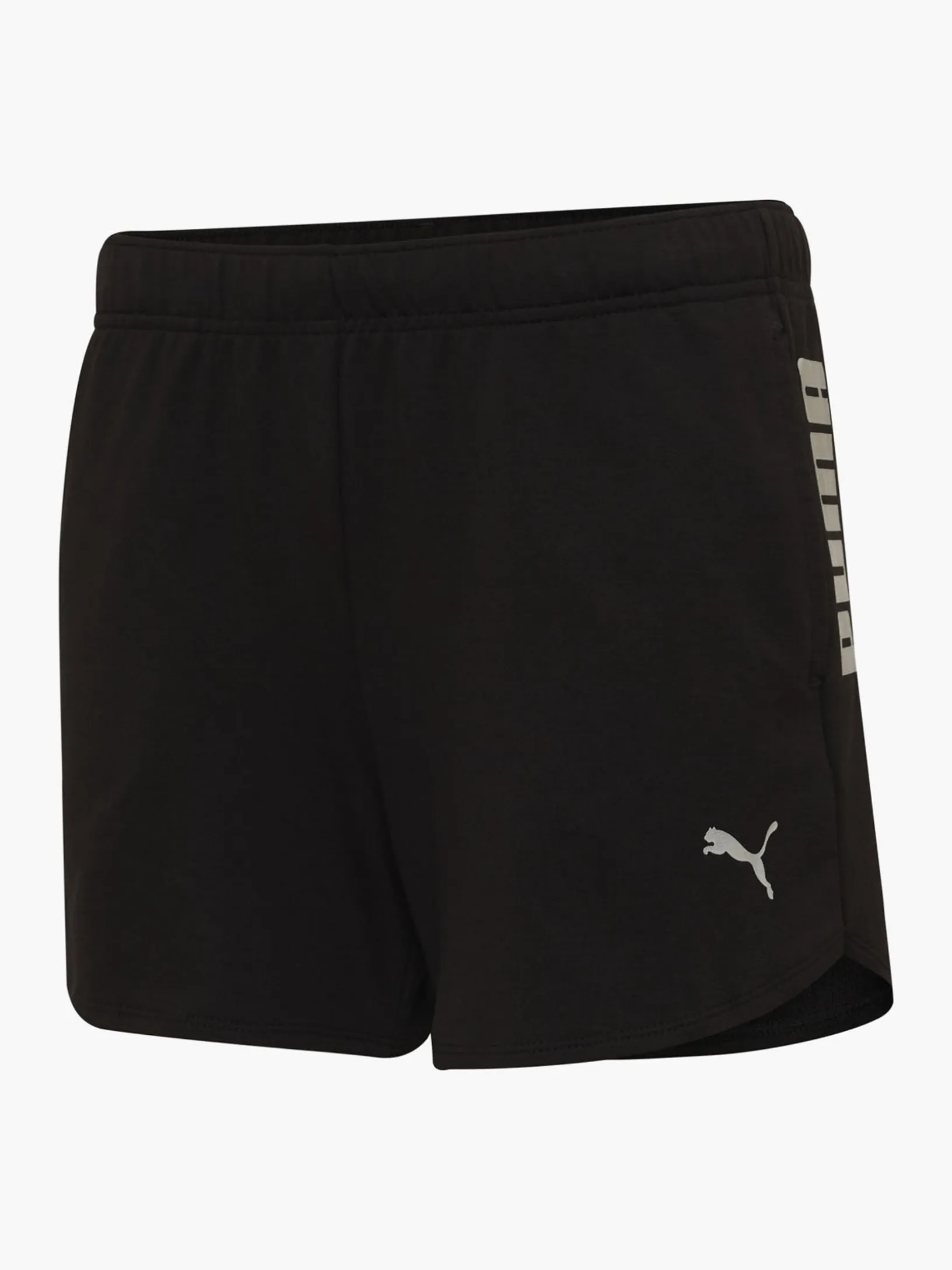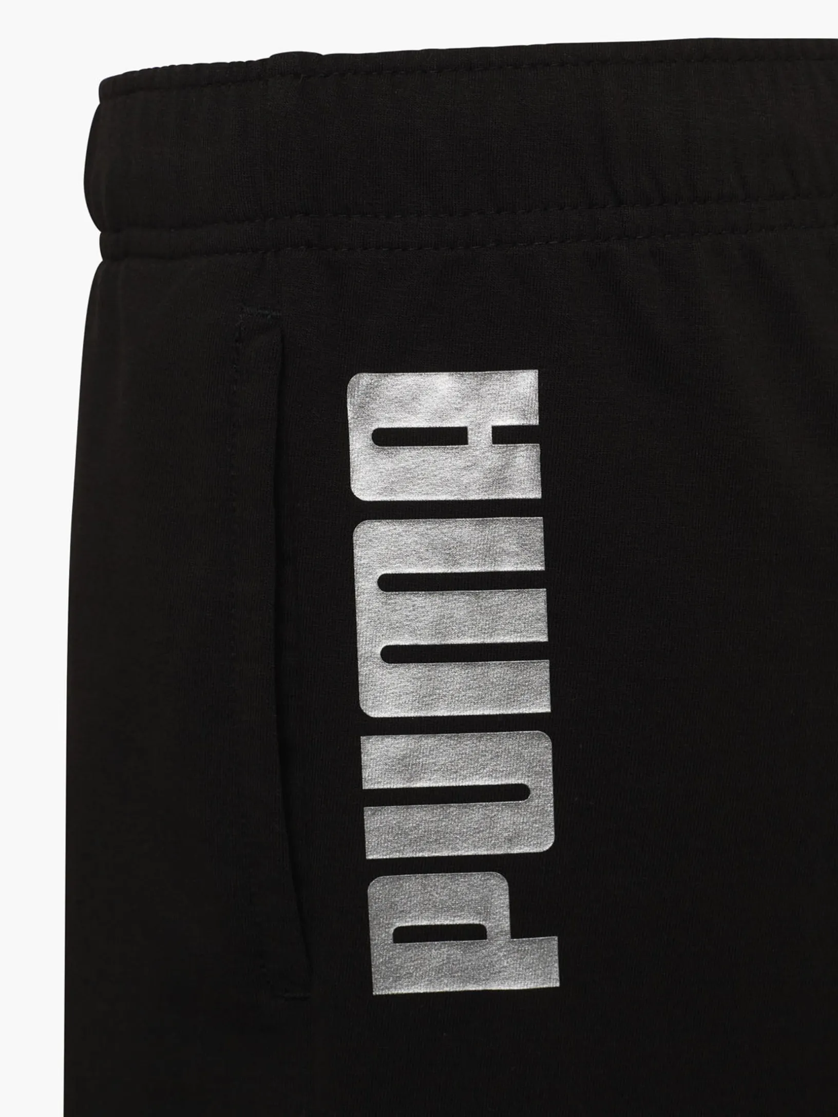 - Silberfarbene PUMA Wortmarke als Thermodruck auf dem Oberschenkel
