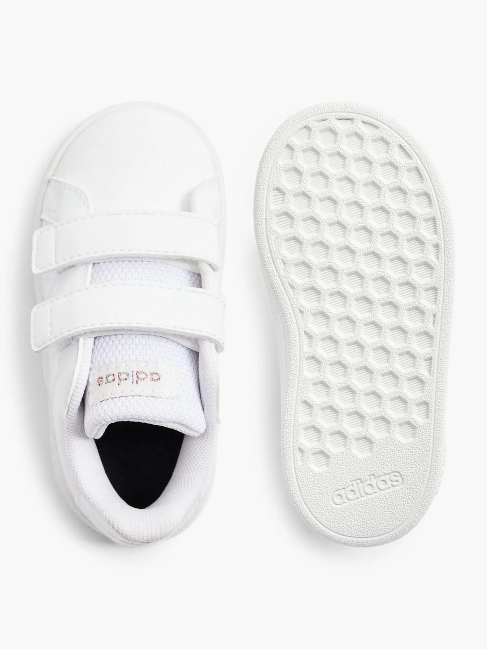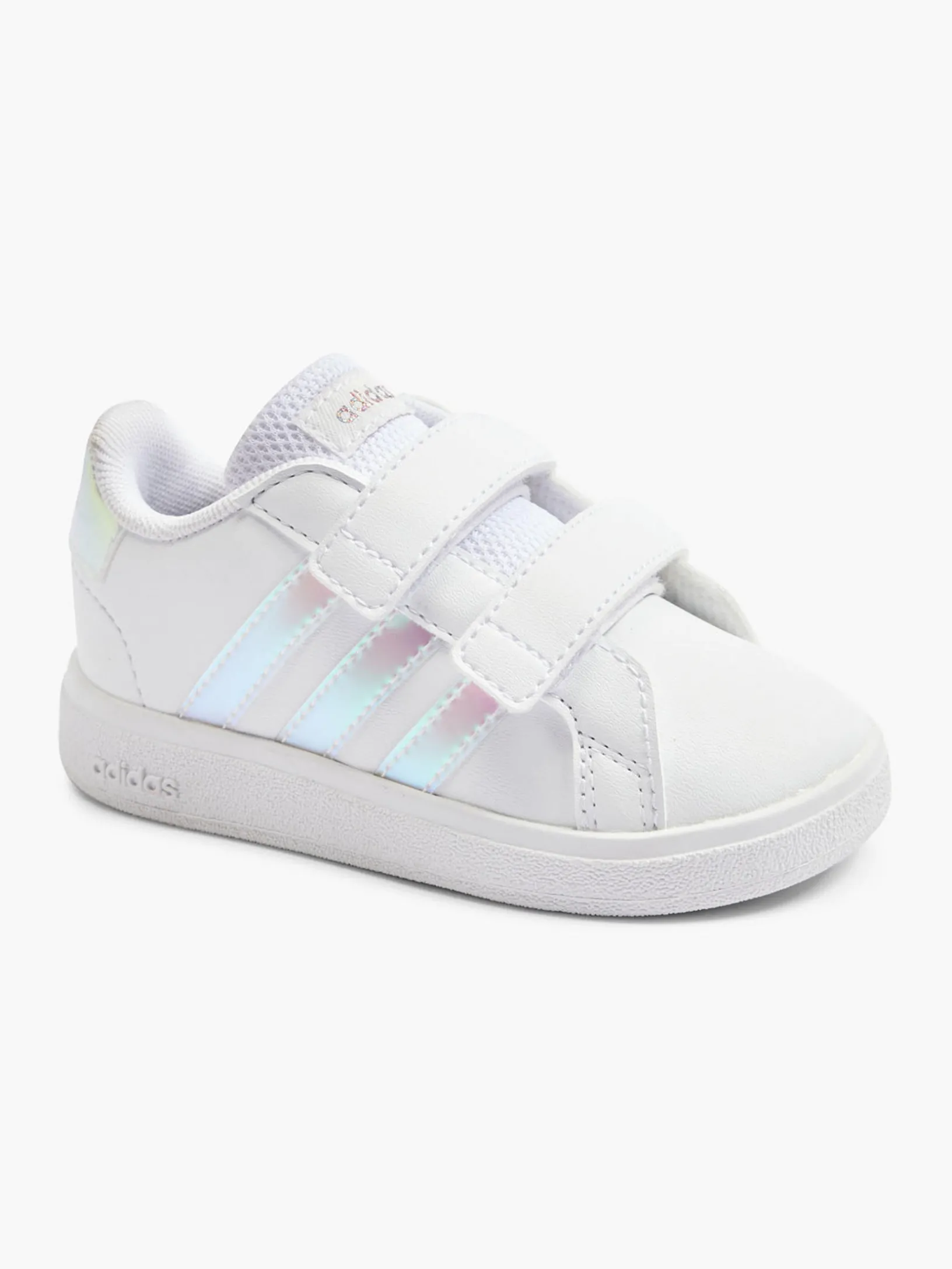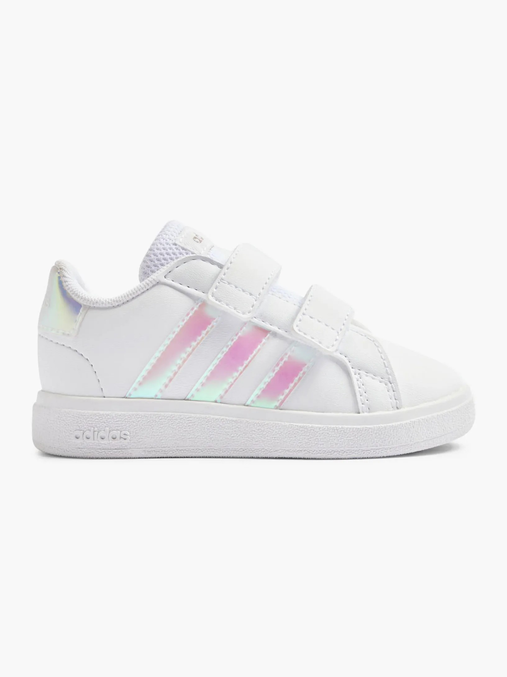 Der adidas Grand Court ist ein echter Klassiker. Diese niedliche Version für Babys und Kleinkinder ist perfekt für den Partnerlook mit deinem Mini Me. Mit seinem praktischen Slip-On-Design ermöglicht er einfaches An- und Ausziehen, damit dein kleiner Schatz nach Herzenslust spielen und herumlaufen kann. Die leicht zu schließenden Klettverschlussriemen machen das Design perfekt. Das Obermaterial hat einen Recycling-Anteil von mindestens 50 %. Dieses Produkt ist nur eine unserer Lösungen im Kampf gegen Plastikmüll.